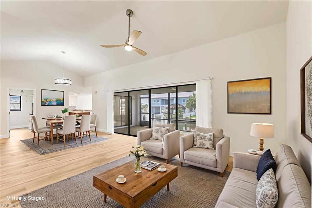 This renovated 3-bedroom, 2-bathroom home offers the ultimate Florida lifestyle with direct gulf access and room for a pool right on the water! Professionally remediated and remodeled after Hurricane Ian, the property sits high and dry, and remained undamaged through both storms Milton and Helene. Recent Updates Include: New roof- All-new kitchen with modern appliances- Updated bathrooms with contemporary finishes- Wood-look tile flooring throughout- New water heater- High-impact front and garage doors.Fresh interior and exterior paint New interior doors- Painted garage floor- New ceiling fans and light fixtures throughout. This spacious, move-in-ready home offers peace of mind with all major systems updated, and stunning water views just steps from your backyard. Furniture in photos has been virtually staged to help visualize the layout and potential. Don’t miss this rare opportunity for waterfront living just moments from the open water!