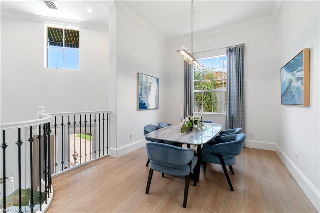 INCREDIBLE VALUE! MOVE IN READY BEAUTIFULLY RENOVATED AND FURNISHED MEDITERRA HOME! This recently fully renovated and furnished second-floor coach home in Mediterra showcases a fresh modern coastal design with soothing tones of blue, white, and tan. The light-filled interior features an open floor plan, elevated finishes, and stylish furnishings that create a relaxed yet sophisticated atmosphere. Enjoy long lake views from the spacious screened lanai, and the added convenience of a private driveway—rarely offered in coach homes. Located in the heart of Mediterra, one of Naples’ most prestigious gated communities, residents enjoy access to the exclusive Mediterra Golf & Beach Club, featuring two Tom Fazio championship golf courses, a private newly renovated beach club along the Gulf of Mexico, state-of-the-art fitness, tennis, pickle-ball, and exceptional dining. New 38 million dollar sports club facility just approved!