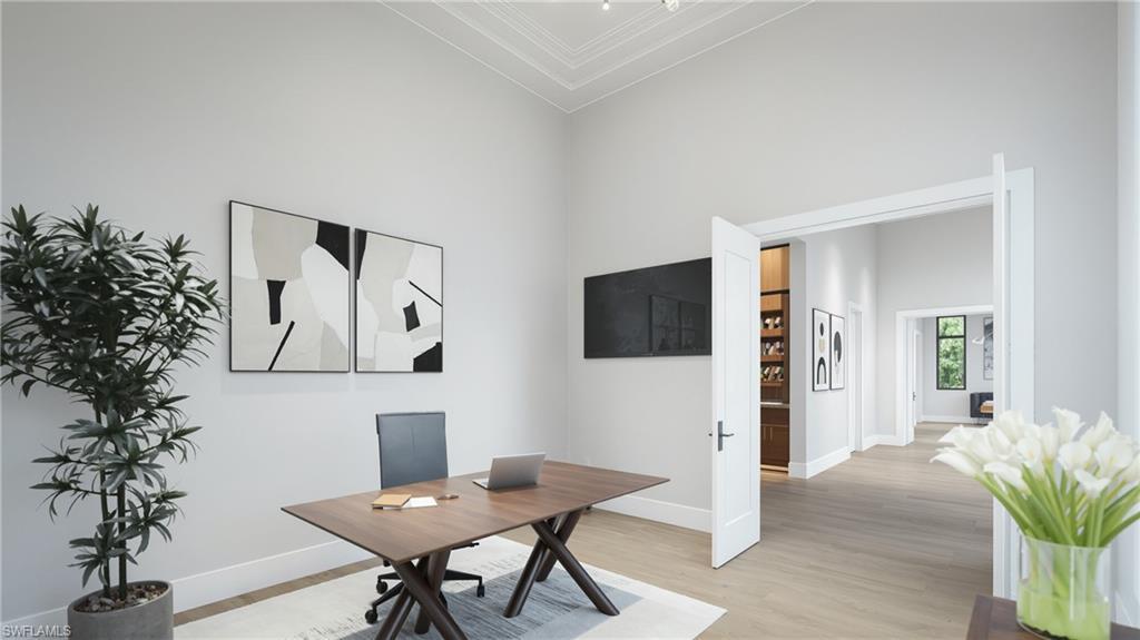 On an oversized half-acre homesite in the coveted Coquina Sands neighborhood, this single-story estate offers over 5,300 square feet of sophisticated living. Crafted by Falcon Design, built by Blue Horizon Construction, and brought to life by the vision of W Design, the home embodies timeless luxury with modern livability. The floorplan features 5 bedrooms plus a den, seamlessly blending open living with private retreats. A showcase designer kitchen anchors the interior, complemented by a full service kitchen for effortless entertaining. Expansive gathering spaces open to a large outdoor living area, designed for hosting friends and family year-round. A massive side yard provides unmatched flexibility—whether envisioned as a resort-style lush garden sanctuary or a putting green. All just a short stroll from the upcoming Four Seasons Resort, placing world-class amenities at your doorstep. This residence offers not only impeccable design and craftsmanship but also a rare lifestyle opportunity in one of Naples’ most sought-after neighborhoods.