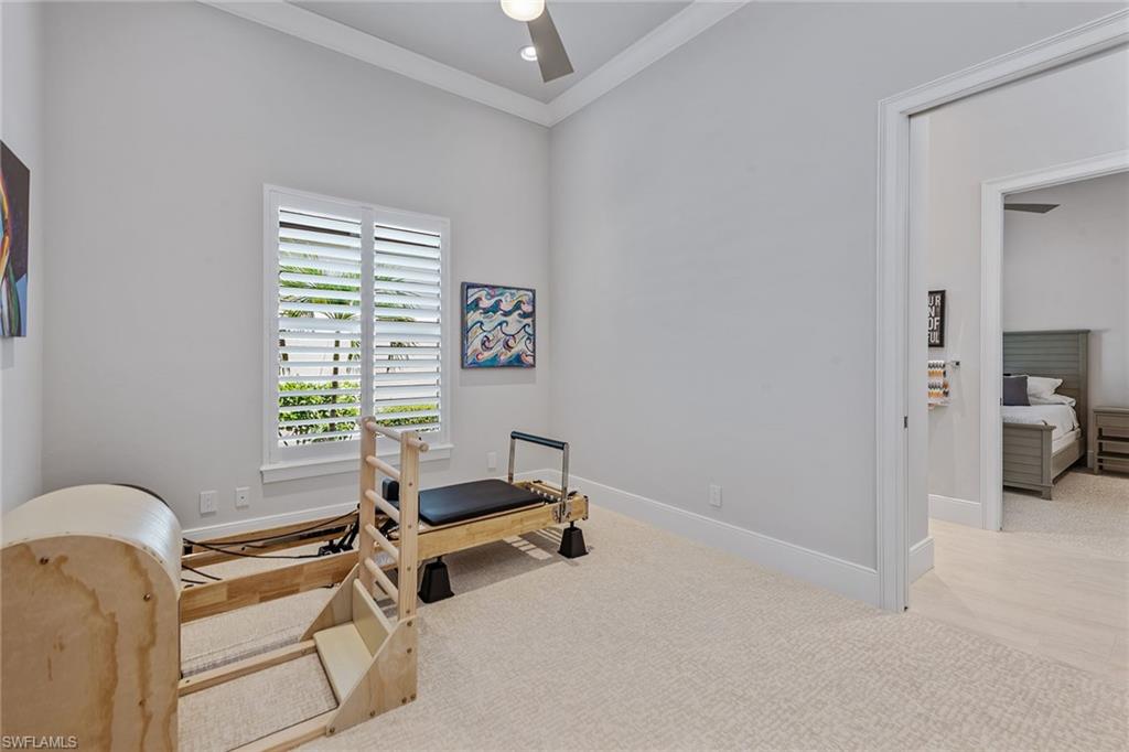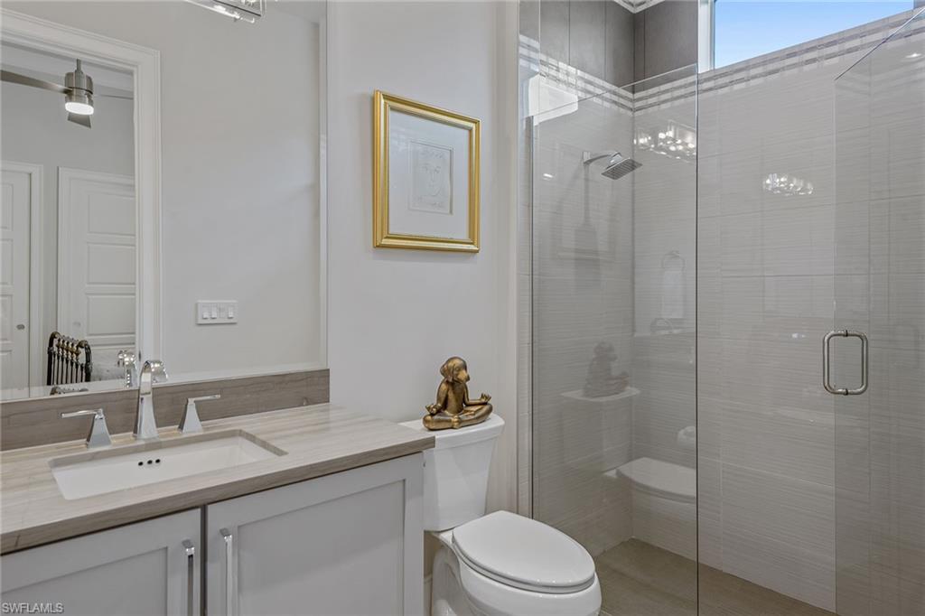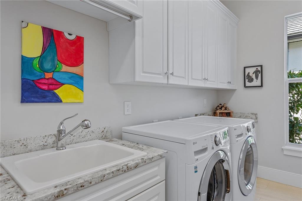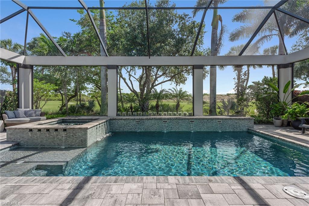 Overlooking the scenic first fairway of the newly renovated Arthur Hills-designed Creek Course, this quality-built residence by regarded Harbourside Custom Homes in the sought-after Marsh Cove neighborhood, blends luxury with serene golf views and indoor-outdoor living. This modern residence offers an impressive double-door entrance, four bedrooms plus a study, 3.5 baths and a spacious two-car garage. The outdoor area is a private retreat featuring a picture-frame screen enclosure, sparkling pool and spa with waterfalls and sun shelf, electric rolldown hurricane screen and a pool bath. The covered lanai boasts a gas fireplace, LED lighting, dual ceiling fans, in-ceiling speakers, wood ceiling, outdoor shower, and a fully equipped outdoor kitchen with Sedona grill, granite surfaces, custom cabinetry, sink and mini refrigerator, ideal for entertaining. Impact-resistant doors and windows, along with a whole-house Generac generator, provide added peace of mind and reliable protection in any weather. Inside, elegant finishes and extensive upgrades include dramatic volume and tray ceilings, crown molding, porcelain tile floors, exquisite lighting, recessed LED lights, Kinetico reverse osmosis system and plantation shutters in a fantastic split-bedroom floor plan. The chef’s kitchen shines with quartzite countertops and backsplash, Mouser cabinetry, Thermador appliances, a built-in side-by-side refrigerator, convection wall oven, five-burner natural gas cooktop with hood and second convection oven beneath, and under-cabinet lighting. A walk-in pantry adds storage. The dry bar includes a wine refrigerator, beverage refrigerator with icemaker and quartzite counters. The dining area features a chandelier and a mitered glass window. The great room offers wall accents, coffered ceiling, sconce lighting and ceiling speakers, flowing seamlessly to the lanai. The owner’s suite has lanai access, ceiling speakers and fan, two large walk-in closets (one custom-designed), and a spa-like bath with ceiling speakers, soaking tub, dual sinks, full-width mirror and walk-in shower with bench. One guest room includes a private en suite and two share a Jack and Jill bath with quartzite vanities. The den offers a quiet space for a home office, enhanced by in-ceiling speakers. The laundry room includes overhead cabinetry and LG washer/dryer with steam. The garage has a painted floor, windows, overhead storage, 220-volt service, and a mini split air-conditioning system for climate control, ideal for a workshop or EV. Close to the new golf clubhouse and all additional Fiddler’s Creek amenities. Residents enjoy lush landscaping, resort-style dining, fitness with trainers and classes, spa services, an active tennis and pickleball program, pools and an extensive activity calendar, with clubhouse renovations underway in 2025. Optional golf, beach and marina memberships available. Great location close to Naples and Marco Island. CDD bond paid in full!