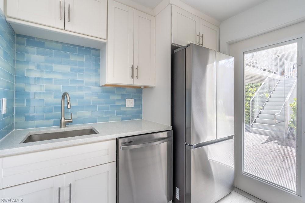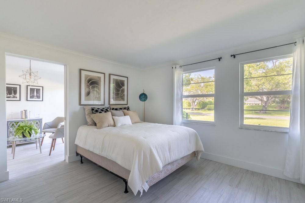 In the heart of Old Naples, 845'sq, two bedrooms and one baths at UNDER $450k! This is a great unit, don't miss out! Completely renovated with new kitchen with quartz countertops, bath with walk in shower, new trim and doors and a private patio. New tile flooring throughout. All new impact windows throughout and new exterior doors! Beautiful courtyard building, well landscaped and welcoming! Fairfax Club has common laundry but owners are approved to install in-unit if desired. One block to Crayton Cove and Naples City Docks, 3 blocks to Third Street stores and restaurants, and only 5 direct blocks to the gulfs white sandy beaches! Comfort and convenience at the Fairfax, part of the Village Green. Community pool, clubhouse, grill, shuffleboard and bocci for your entertainment. This is an over 55 community. Enjoy living here or lease to a tenant but don't miss this opportunity to own in Olde Naples. This building is a great value! Storage unit and assigned parking spot.