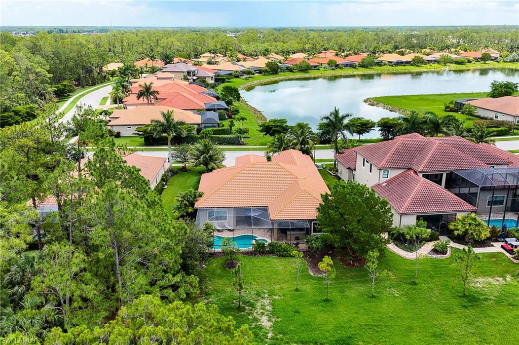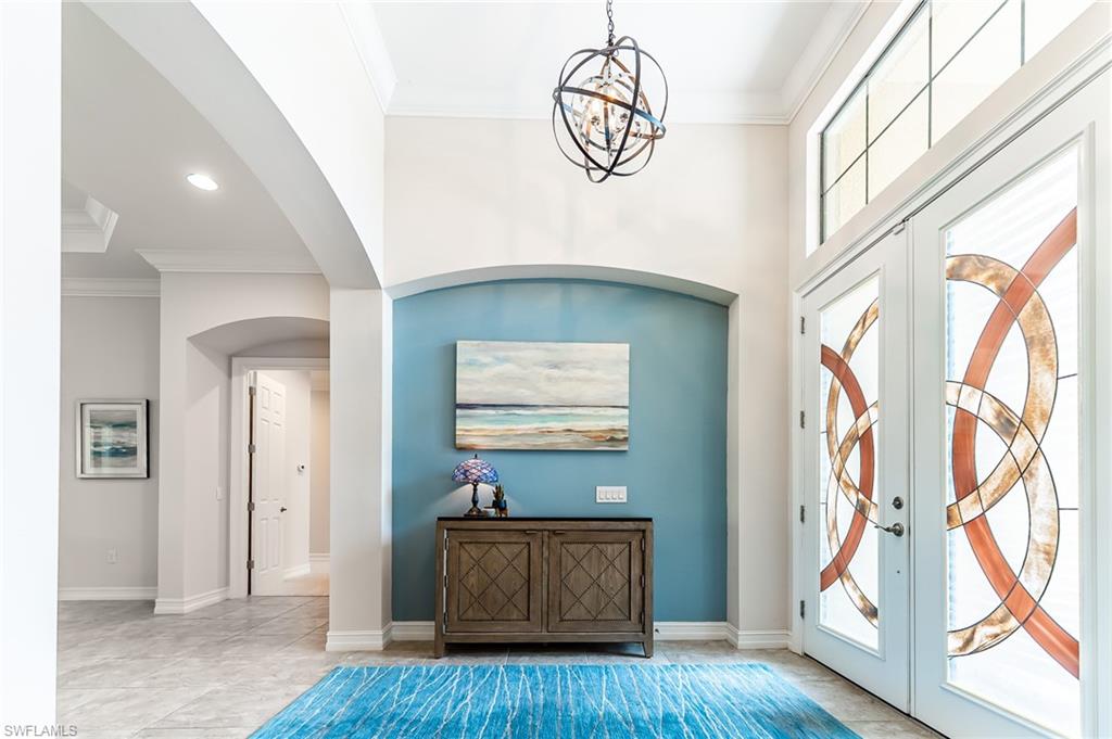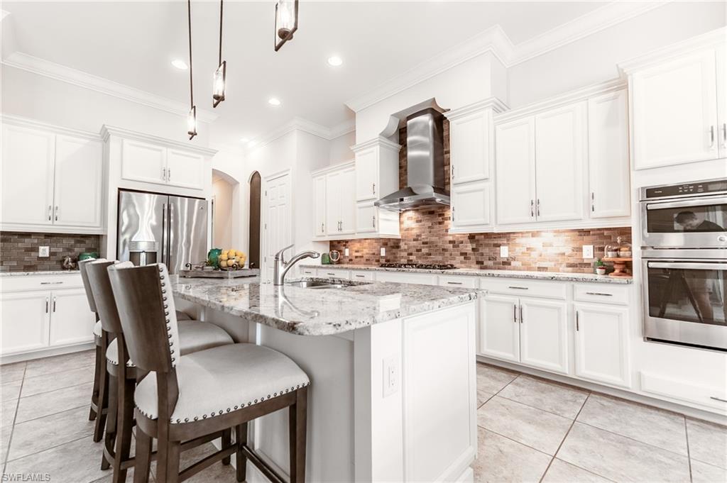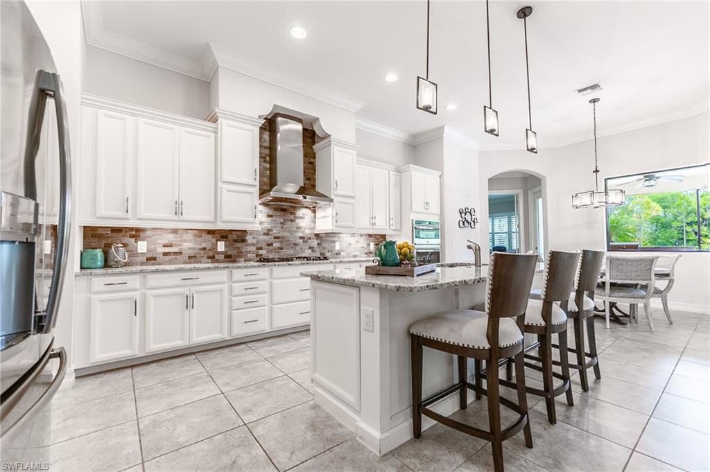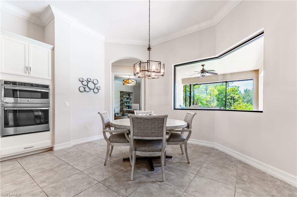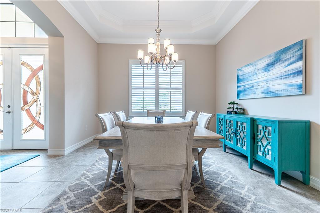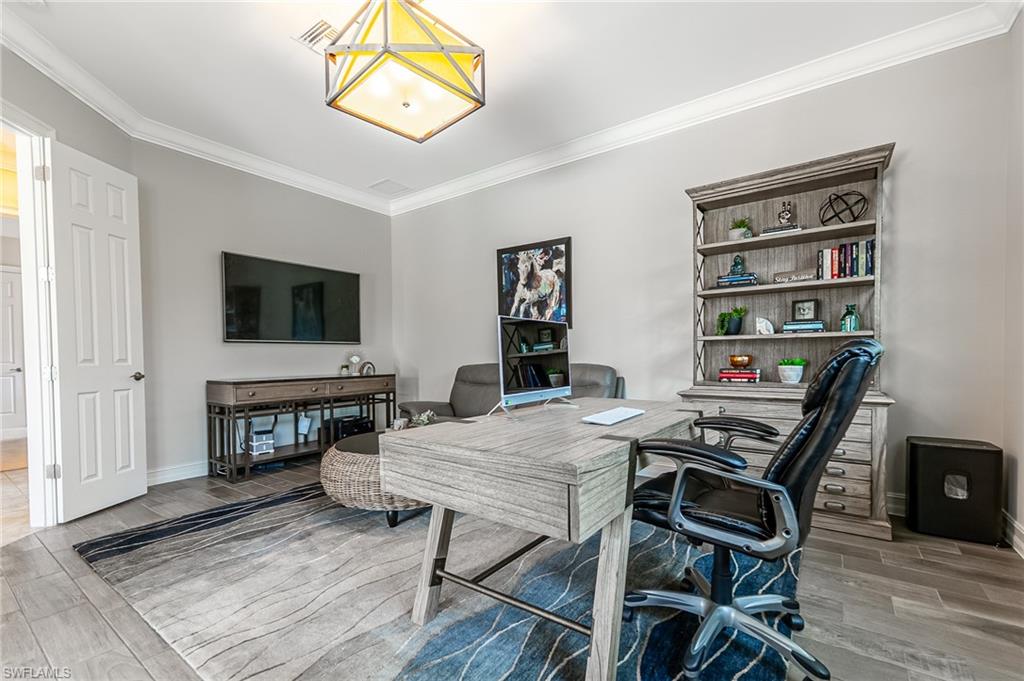 HUGE PRICE IMPROVEMENT!! This beautifully furnished 3-bedroom home with a spacious office/flex room is a true retreat, nestled in a peaceful gated neighborhood surrounded by natural woods for privacy and tranquility. Thoughtfully designed for both everyday comfort and elegant entertaining, the home features soaring 12-foot coffered ceilings and high-end finishes throughout, including rich granite countertops, quality cabinetry, crown molding and plantation shutters. The chef’s kitchen is a showstopper with a massive island, gas cooktop, and large walk-in pantry, flowing seamlessly into the living area and out through a wall of large sliding glass doors that fully retract for true indoor-outdoor living. Step onto the screened lanai where a serene view of a wide lawn and wooded backdrop creates a hidden oasis, complete with a heated pool, spa, and fully equipped outdoor kitchen. The luxurious primary suite offers double-door entry, two walk-in closets, a spa-like bath with a soaking tub and oversized walk-in shower, and private lanai access. This homes offers tons of storage, walk-in closets in every bedroom, large laundry room and high tech accessories like Sonos speaker system and smart home security system. TWO NEW AC UNITS HAVE JUST BEEN INSTALLED IN AUGUST (Huge expense that the new owners will not have to worry about)!!A side-entry 3-car garage enhances the home’s curb appeal, and the community’s location offers convenient access to Immokalee Rd, Collier Blvd, and Vanderbilt Beach Rd, while being zoned for top-rated schools and just minutes from Naples’ best shopping, dining, and beaches. This home truly delivers the Florida lifestyle—peaceful, private, and effortlessly refined.