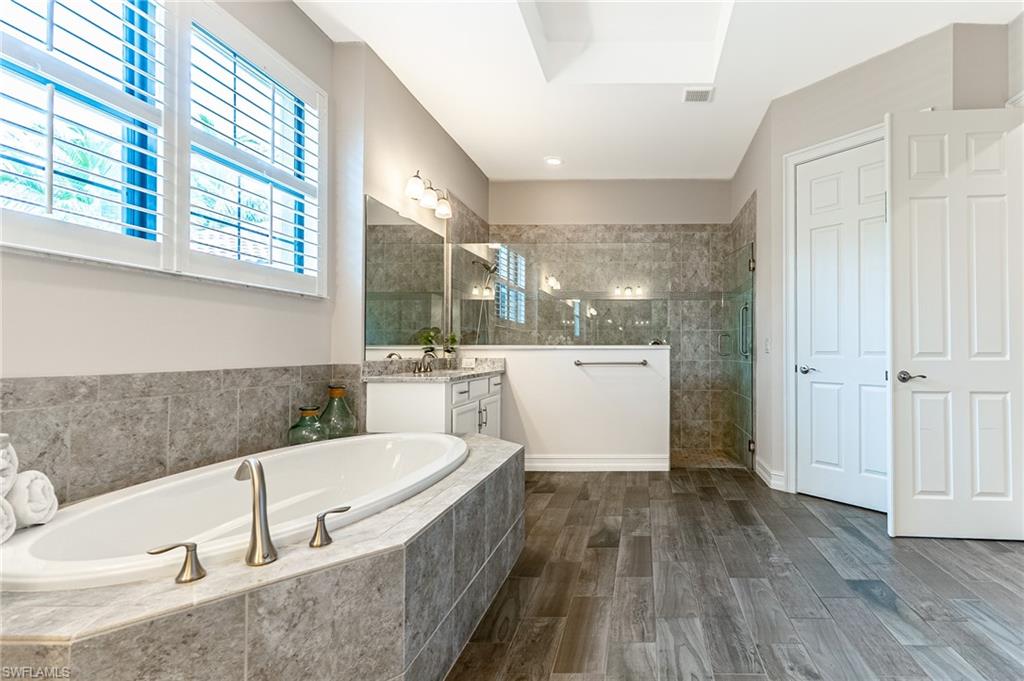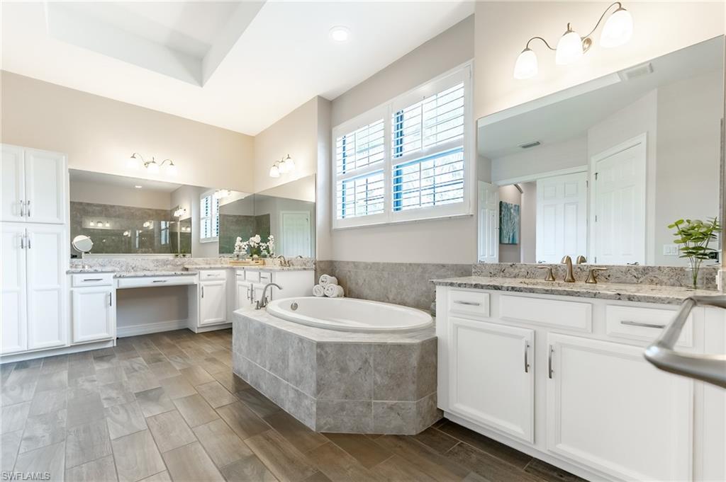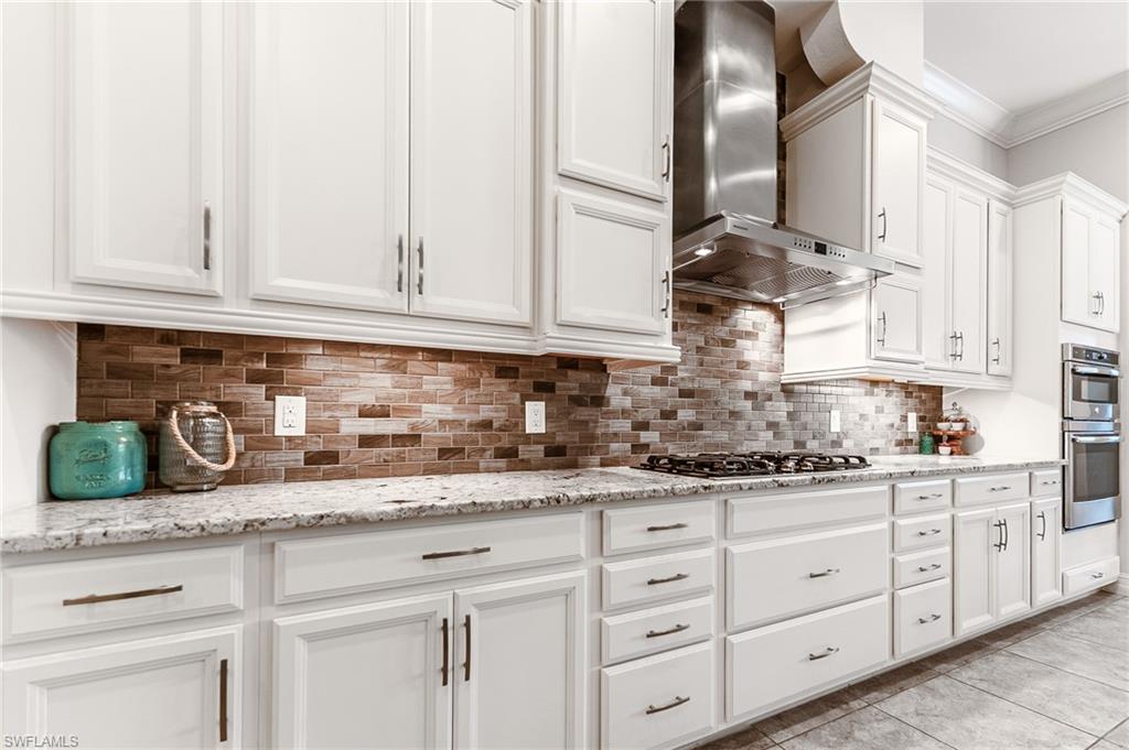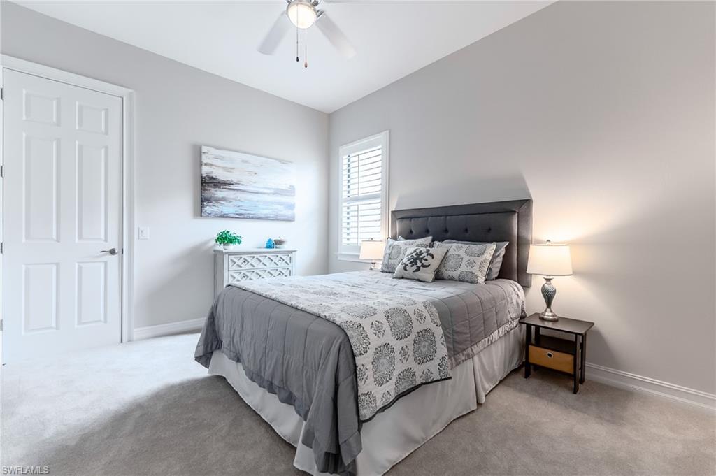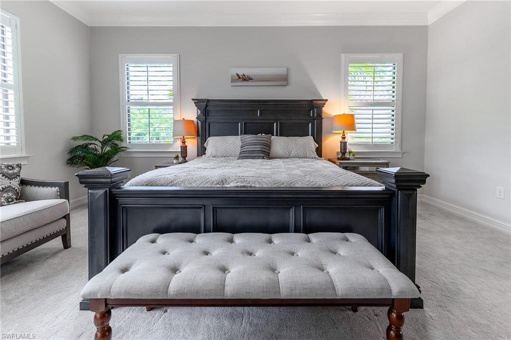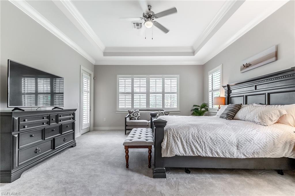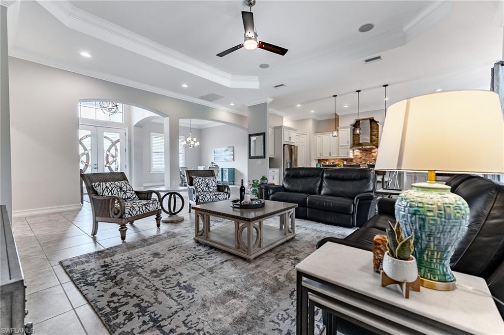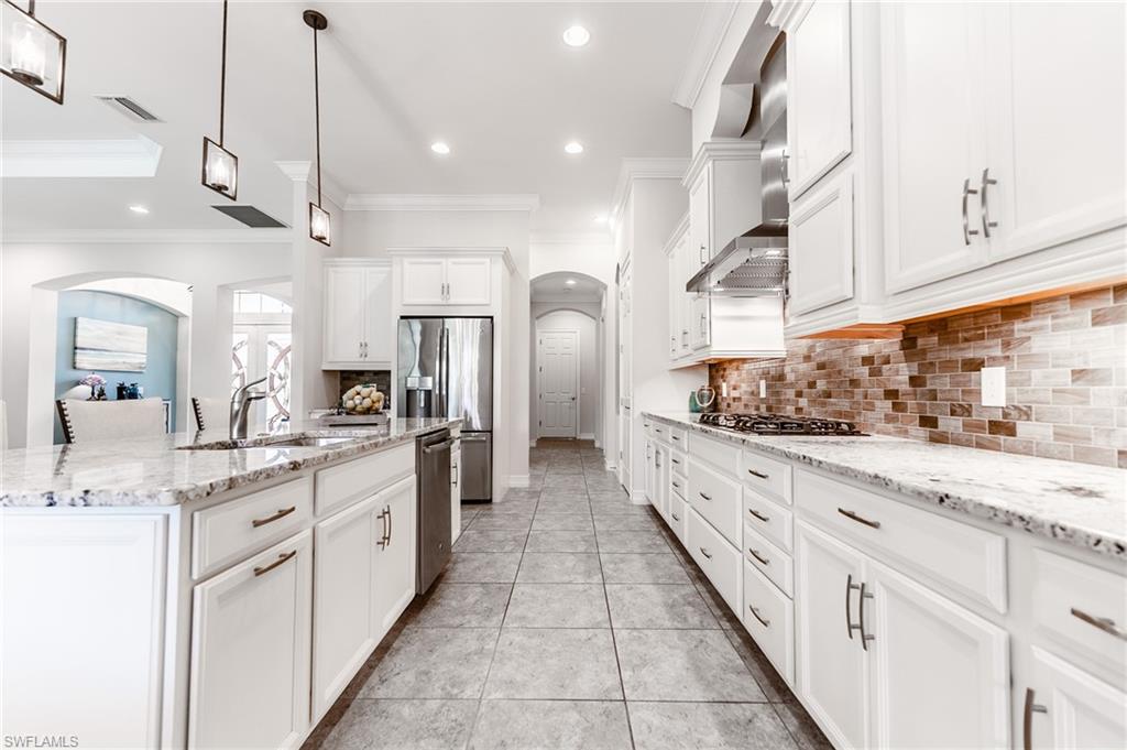 HUGE PRICE IMPROVEMENT!! This beautifully furnished 3-bedroom home with a spacious office/flex room is a true retreat, nestled in a peaceful gated neighborhood surrounded by natural woods for privacy and tranquility. Thoughtfully designed for both everyday comfort and elegant entertaining, the home features soaring 12-foot coffered ceilings and high-end finishes throughout, including rich granite countertops, quality cabinetry, crown molding and plantation shutters. The chef’s kitchen is a showstopper with a massive island, gas cooktop, and large walk-in pantry, flowing seamlessly into the living area and out through a wall of large sliding glass doors that fully retract for true indoor-outdoor living. Step onto the screened lanai where a serene view of a wide lawn and wooded backdrop creates a hidden oasis, complete with a heated pool, spa, and fully equipped outdoor kitchen. The luxurious primary suite offers double-door entry, two walk-in closets, a spa-like bath with a soaking tub and oversized walk-in shower, and private lanai access. This homes offers tons of storage, walk-in closets in every bedroom, large laundry room and high tech accessories like Sonos speaker system and smart home security system. TWO NEW AC UNITS HAVE JUST BEEN INSTALLED IN AUGUST (Huge expense that the new owners will not have to worry about)!!A side-entry 3-car garage enhances the home’s curb appeal, and the community’s location offers convenient access to Immokalee Rd, Collier Blvd, and Vanderbilt Beach Rd, while being zoned for top-rated schools and just minutes from Naples’ best shopping, dining, and beaches. This home truly delivers the Florida lifestyle—peaceful, private, and effortlessly refined.