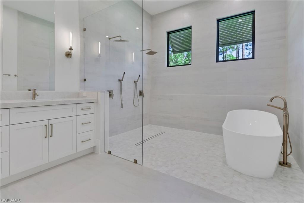 NOW COMPLETE. This Logan Woods estate rests on 2.27 acres of 100% upland, offering the ultimate blend of luxury, privacy, and accessibility. Logan Woods is one of Naples’ most desirable neighborhoods, valued for its quiet charm and freedom from HOA restrictions—all just minutes from I-75, Physician’s Regional Hospital, Mercato, Seed to Table, fine dining, and Naples’ world-famous beaches. Inside, discover soaring ceilings, wood-look porcelain tile, and a thoughtfully designed open-concept floor plan with clean modern finishes. The main living area showcases a natural gas fireplace and wet bar, creating a warm and elevated atmosphere. The chef’s kitchen offers custom cabinetry, gas range, walk-in pantry, and an oversized island. A mud room, 3-car garage, and spacious laundry room add everyday convenience to the home’s design. The primary suite blends indoor-outdoor living with private access to the screened lanai, and the spa-like bath features dual showers, a soaking tub, and double vanities. Each additional bedroom includes an en-suite bath and walk-in closet. Grand sliding doors—the tallest allowed by code in Collier County—open to a fully screened lanai with summer kitchen, outdoor gas fireplace, and a sparkling pool and spa, offering the perfect setting for cozy evenings under the stars.