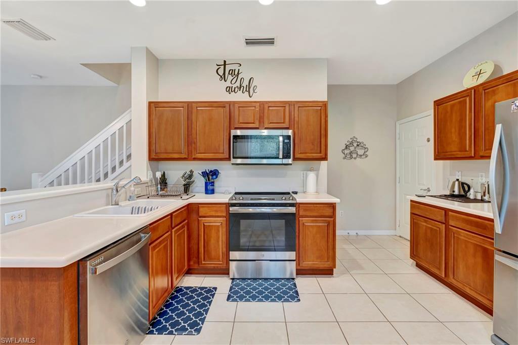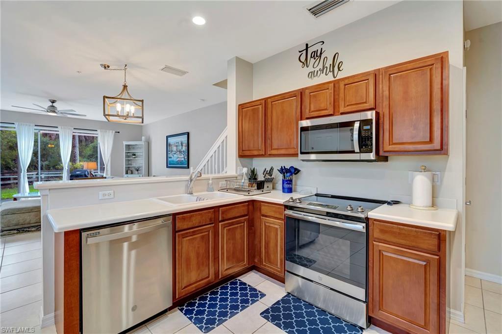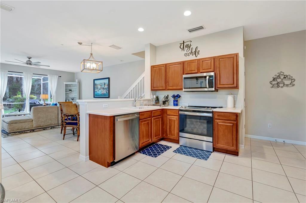 Welcome to this beautifully maintained 3 bedroom, 2.5 bathroom end-unit townhome in the highly desirable North Naples community of MILANO. Situated on one of the best lots in the neighborhood, this home offers SUNNY SOUTHWEST EXPOSURE and PEACEFUL PRESERVE VIEWS—the perfect backdrop for relaxing evenings on your private, screened lanai. Inside, you'll find a light-filled open layout with soaring ceilings, a convenient first-floor half bath, and a RARE 2-CAR GARAGE! Upstairs features 3 generously sized bedrooms, 2 full bathrooms (including DUAL SINKS IN THE PRIMARY SUITE), and a full laundry room for added convenience. Notable updates include a BRAND-NEW AC SYSTEM INSTALLED IN 2025, 2020 WATER HEATER, 2022 APPLIANCES, fresh paint, and a NEW ROOF IN 2019. MILANO is a well-established community offering LOW HOA FEES and great amenities like tennis, basketball, a community pool, and more. Located in an A-RATED SCHOOL ZONE and just minutes from WORLD-CLASS BEACHES, SHOPPING, AND DINING—this home truly checks all the boxes.
