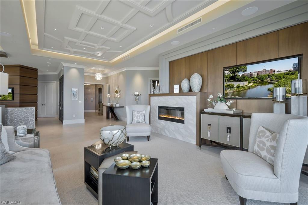 One of the most unique and stunning homes in all of Bonita Bay! ABSOLUTELY GORGEOUS with an esteemed PRIVATE TWO car garage - overlooking the Estero Bay and Gulf of Mexico! This home is pure sophistication and luxury! Located in the desirable Tavira high rise building, "move right in" to this exquisite home in the sky. This home's talented designer/owner lovingly designed the space - a true masterpiece! No expense was spared with the beautifully designed interior - from the ceiling details to the flooring to the state of the art kitchen. The dual secure coded elevators open to a private foyer leading into an elegant open-concept living space adorned with high-end exquisite finishes, a fireplace, and multiple balconies. Additional features include stunning kitchen cabinets, quartz counter-tops, a custom bar area, GORGEOUS lighting, VOLUME ceilings with extra height, a stunning primary suite, split bedrooms, several outdoor spaces and so much more. Entertain friends & family in this elegant (yet comfortable) home. This home is meant to be enjoyed - a true spiritual retreat! Tavira is one of Bonita Bay's most esteemed high rise buildings. Amenities include a beach park, nature trails, a marina and optional club membership including golf, tennis, several restaurants and a fitness center. All this and a PRIME location within Southwest Florida, close to world renowned beaches, restaurants, the burgeoning downtown Bonita Springs and the Southwest Florida Airport! Do not hesitate as homes in Bonita Bay like this one RARELY become available! Be sure to view the accompanying video of this home!