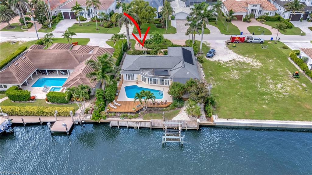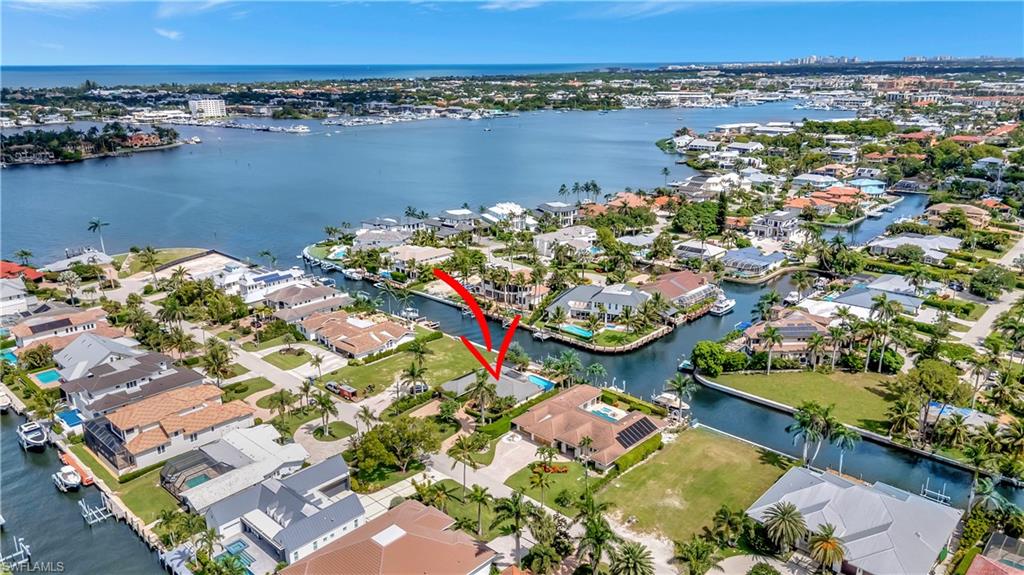 Being Sold at LOT VAlUE, this prime location is on the "T"of a canal and a 7 iron to Naples Bay! - Discover one of Naples’ finest waterfront opportunities located in the prestigious community of Royal Harbor. This lot offers 80 feet of water frontage, with direct Gulf access and no bridges—ideal for boating enthusiasts and luxury home builders alike. A 12,000 lb boat lift is already in place, making this an immediate option for enjoying Naples Bay and the Gulf of Mexico. Whether you're ready to move in or want to build your dream estate, this property delivers flexibility and value. Single level living in this 2,450 sq/ft, 3 Bedroom 3 Bathroom residence is easy and has a spacious den for remote office or to be converted into any number of uses. The house is perfect for seasonal use, rental income, or a comfortable base while you design your custom build. Ideally located less than 200 yards from the bay the dock is at the "T" of another canal offering long water views in three directions from the pool and outdoor area. Situated just minutes from 5th Avenue, fine dining, beaches, and world-class marinas, this location offers the best of Naples living with no HOA restrictions. Royal Harbor makes up the Eastern shore of Naples Bay and is one of the friendliest and most convenient water front communities in South West Florida.