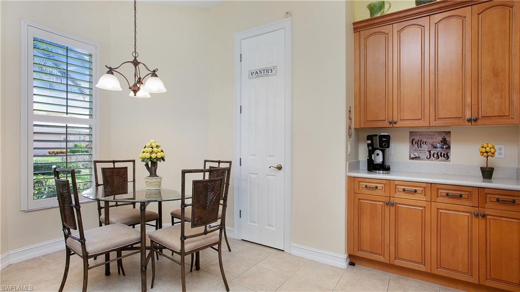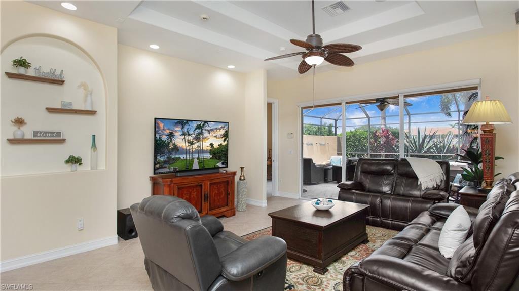 Experience the pinnacle of resort-style living in this exquisitely updated villa, nestled in the prestigious Grandezza Country Club community. With its light-filled interiors and thoughtfully designed spaces, this 3-bedroom, 2-bath home offers a lifestyle of sophistication and comfort. Spanning 1,833 square feet, the villa’s open-concept layout seamlessly blends the kitchen, dining area, and great room, creating the perfect setting for both entertaining and everyday living. Every detail of this home has been carefully curated to enhance its charm and functionality. Tile flooring flows gracefully throughout the main living areas, complemented by elegant plantation shutters and tray ceilings in the primary suite. Updated bathrooms boast modern finishes, while Resort-Style Living at Grandezza Country architectural details such as recessed doorways and arched openings add a touch of timeless refinement. At the heart of the home lies a well-appointed eat-in kitchen designed for chefs and entertainers alike. Featuring Corian countertops, custom cabinetry, sleek black appliances, and a large island with breakfast bar seating, this kitchen is as beautiful as it is functional. The generous laundry room offers abundant cabinetry, ample countertop space, and a utility sink for added convenience, making day-to-day tasks a breeze. Step outside to discover your private retreat. The extended screened lanai is a true highlight, showcasing a heated pool, spa, cozy fire pit, and a covered dining area. All of this is set against the serene backdrop of the golf course and sparkling lake views, providing a perfect blend of tranquility and entertainment. Unmatched Community Amenities: Living in Grandezza means access to a vibrant lifestyle enriched with an array of amenities. Residents enjoy championship golf, tennis, bocce, a resort-style pool, and a 53,000-square-foot clubhouse featuring a fitness center and both indoor and outdoor dining. Golf and Social Memberships are available to suit your preferences. Prime Location: Perfectly situated, this home allows you to enjoy the best of Southwest Florida. Located just minutes from I-75, Miramar Outlets, Florida Gulf Coast University, and Southwest Florida International Airport, everything you need is within easy reach. This furnished home, with some exclusions, is ready to welcome you. Whether you’re seeking a peaceful retreat or a vibrant social lifestyle, this villa delivers it all. Schedule your private showing today and step into the elegance of Grandezza Country Club living.