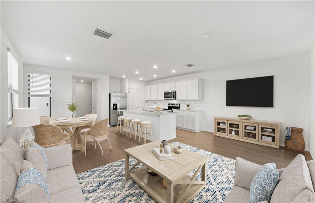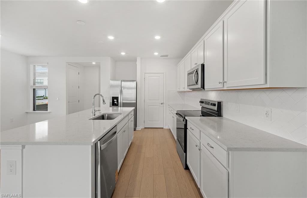 Solis Grande Townhomes 3 bed 2.5 baths with 2 car garage screened lanai Quartz Counters throughout large kitchen island,, full Whirlpool appliance package, including washer dryer.