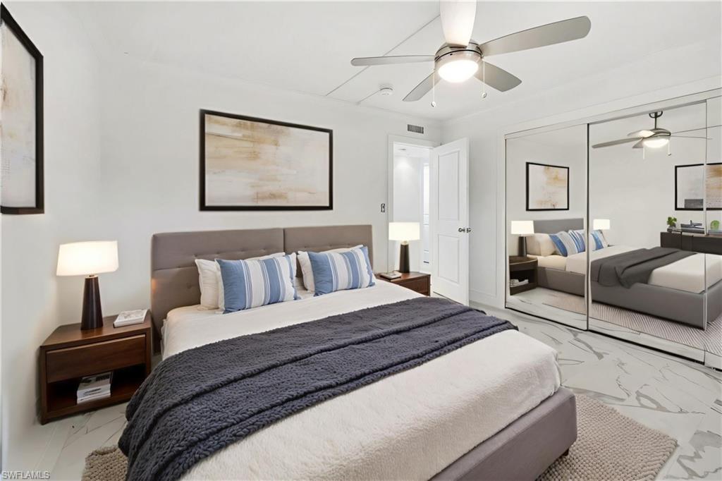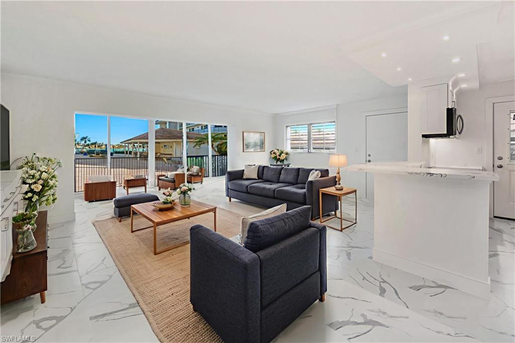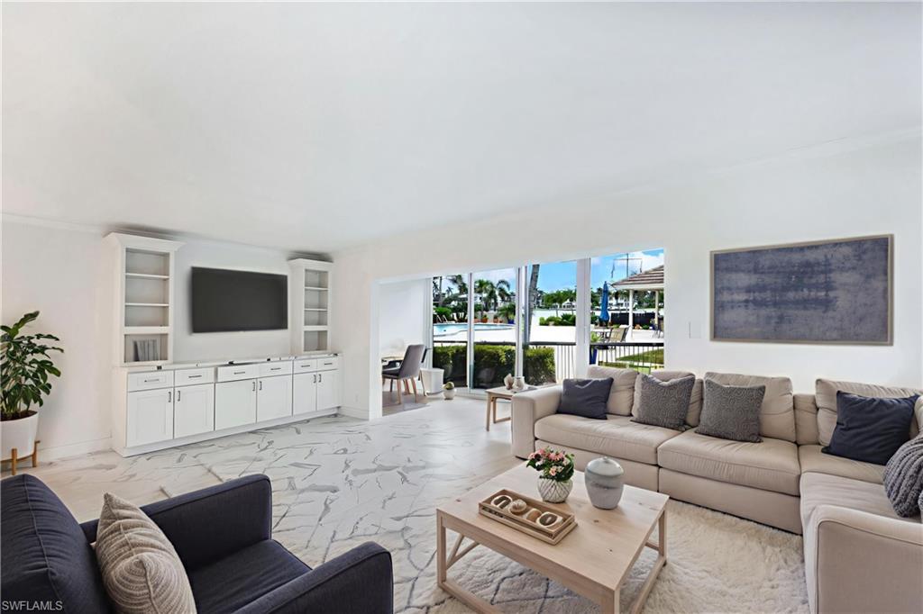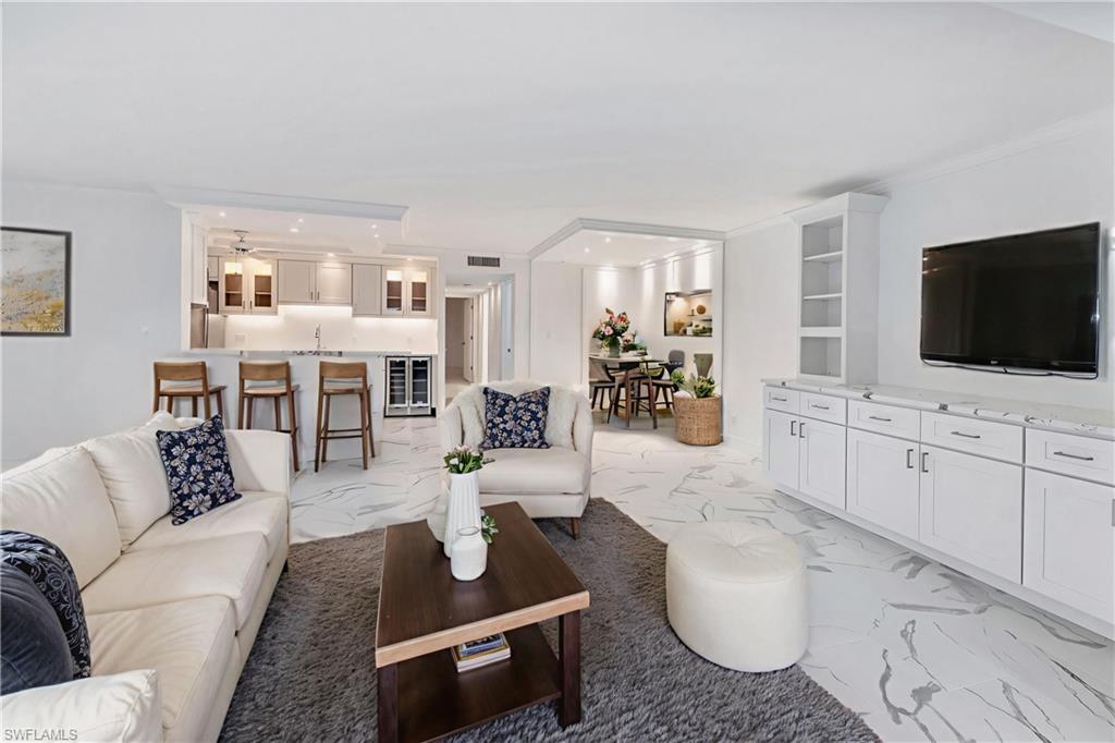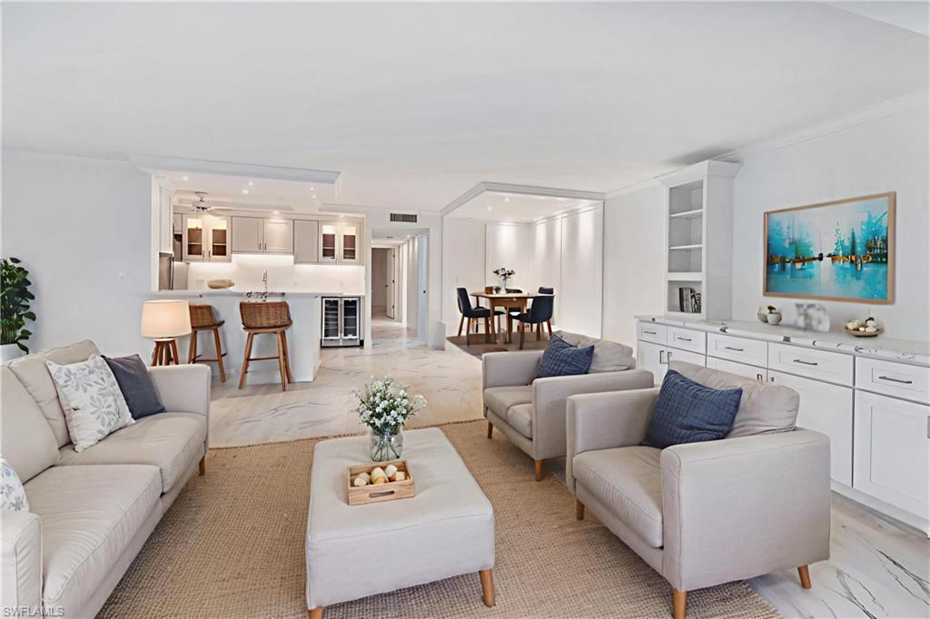 Totally remodeled 2 Bedroom 2 Bath 1st floor corner/end-unit, featuring NEW lighted glass front cabinets, NEW marble counter tops throughout, spacious breakfast bar, NEW built-in dining banket, beverage/wine cooler, the NEWEST all-in-one washer/dryer, NEW custom closets, NEW appliances, NEW Plantation shutters on ALL windows, NEW light tile flooring throughout, the Florida room is part of the NEW air conditioned interior with storage/seating & sliding doors & screens to the Bay breezes. This waterfront community offers: boat docks, fish cleaning station, kayak & canoe storage, grilling stations, covered parking with exterior private storage and community pool & Tiki hut with a beautiful view of the Bay & boat docks! The Moorings resident beach park is available for membership as well as the nearby Moorings County Club for golfers. Boat slips can be leased or purchased from owners. This property is located within a short walking distance to Venetian Village shops and restaurants and the beach. The popular Waterside Shops, 5th Ave. and 3rd Street restaurants, shops and beaches are nearby. Covered carport Parking #26
