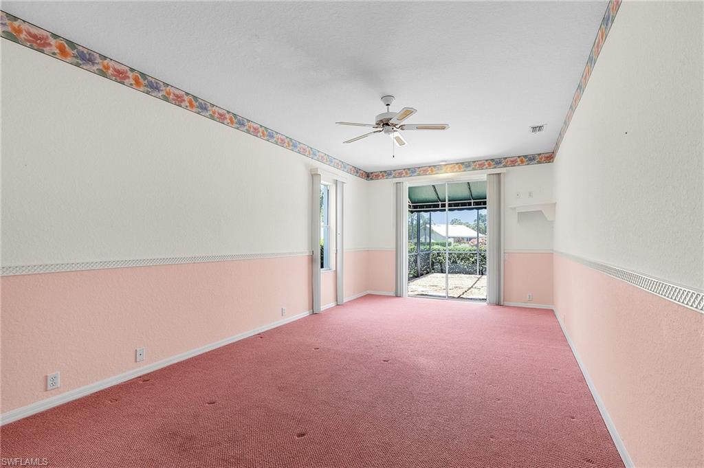 Discover the perfect blend of tranquility and luxury in this stunning golf course home, featuring breathtaking lake views and situated on a prime lot without cart paths for enhanced privacy. Spanning 2,208 sq. ft., this meticulously maintained residence boasts 2 spacious bedrooms, 2 luxurious bathrooms, a versatile den, and a generous 2+ car garage with ample storage for vehicles and a golf cart. Enjoy seamless indoor-outdoor living with large glass doors leading from both the master and oversized guest bedrooms to the expansive screened lanai and inviting pool area—an ideal setting for relaxation and entertaining. This home is equipped with modern updates, including a new roof (2019), an updated AC system (2019), and a new hot water tank and water distribution lines replaced in 2024. Worthington Country Club, a premier bundled golf community, is on the verge of exciting enhancements, including a remodeled cabana with bar area, new tennis and pickleball courts, and expanded parking—set to begin construction in Spring 2026—all with no special assessments to members. Conveniently located near I-75, SWFL International Airport, Florida Gulf Coast University, and just minutes from shopping, dining, and beautiful Gulf beaches. Enjoy a vibrant lifestyle in this idyllic community that allows for your own private golf cart. Don't miss this unparalleled opportunity to make this dream home your own!