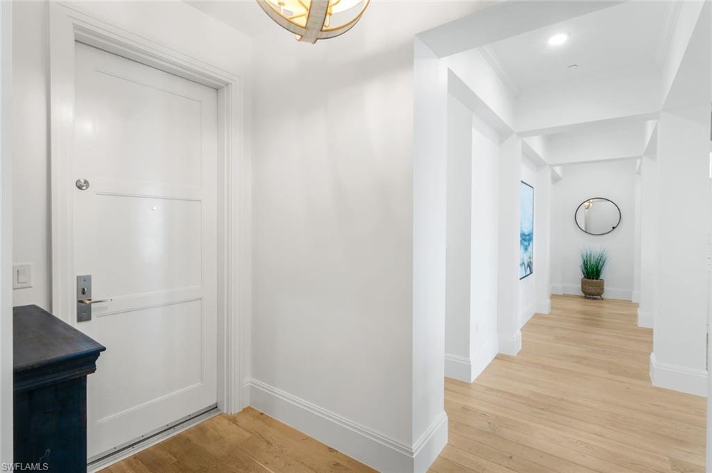 Retreat to one of only eight exclusive luxury residences in the heart of Downtown Olde Naples. This professionally decorated former model offers exceptional design and craftsmanship, featuring imported Legno Bastone hardwood flooring, a beautifully appointed gourmet kitchen with natural gas cooking, Arctic White quartz countertops, and Hansgrohe fixtures, built-in closet systems, and a sophisticated neutral contemporary palette. Nestled just one block from historic 5th Ave South in Naples, this luxurious residence offers the ultimate in walkable coastal living. Just a short stroll from the pristine white sands of the Gulf, you can enjoy sunset beach walks or a spontaneous dip in the ocean whenever you please. You'll also have effortless access to world-class dining, boutique shopping, art galleries, and vibrant nightlife. Whether you're looking for a relaxed beachfront café or an elegant fine dining experience, it’s all just steps from your front door. If you'd rather stay home, upstairs is a beautiful rooftop pool and spa overlooking the downtown area and night life, along with a grill and eating area. Live where every day feels like a vacation—where the best of Naples’ coastal charm and sophisticated lifestyle are always within reach.