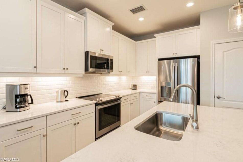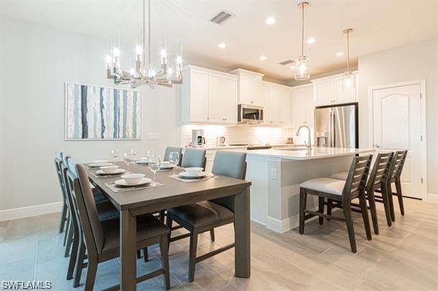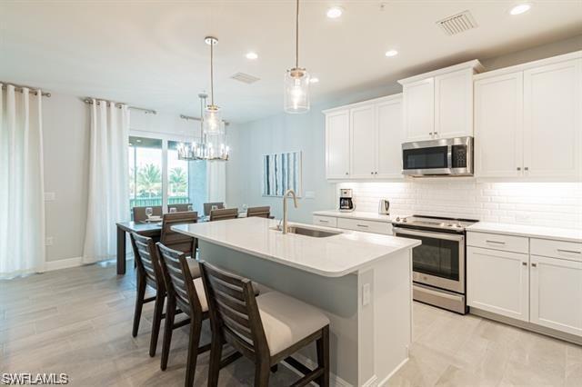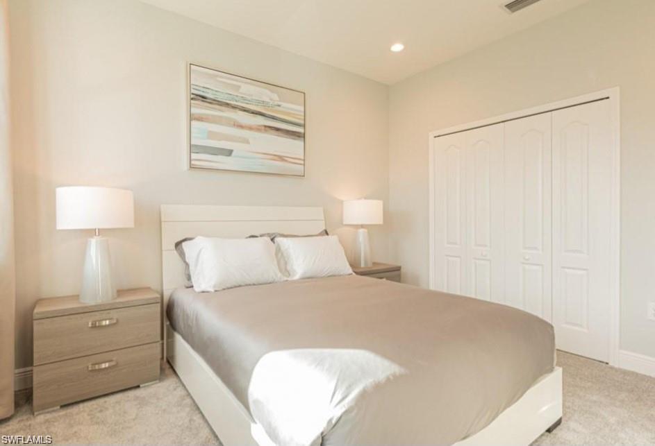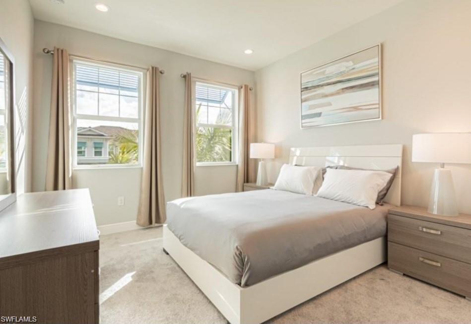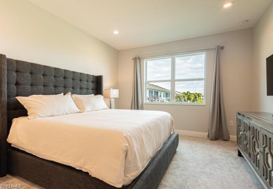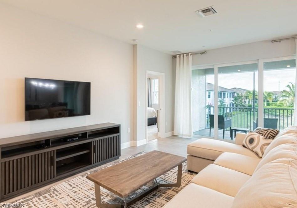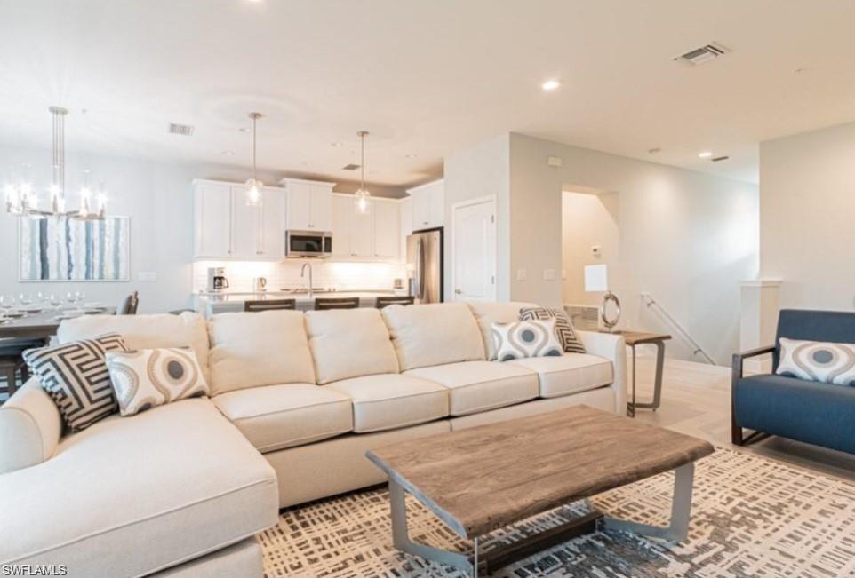 Step into comfort and style with the Whitehaven — Richmond Park’s largest and most sought-after floor plan. This brand-new, professionally decorated 3-bedroom, 2-bath carriage home offers spacious second-floor living with a warm, inviting atmosphere. The expansive family room flows seamlessly into the gourmet kitchen and dining nook, opening out to a generous screened lanai — perfect for relaxing or entertaining. The designer kitchen is a chef’s dream, featuring a large island with breakfast bar, sleek stainless-steel appliances, and a walk-in pantry. The luxurious primary suite boasts a spacious walk-in closet, dual vanities, a walk-in shower, and a private walk-in closet for added comfort. Two additional bedrooms, a two-car garage, and tasteful partially furnished complete this exceptional offering in the heart of Naples. Welcome home!