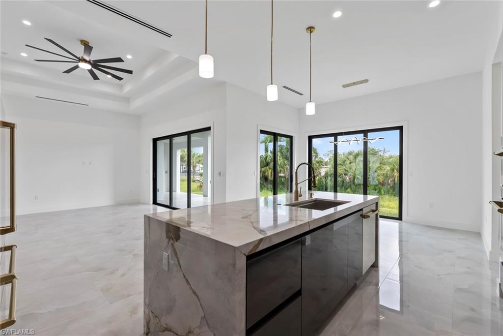 One of a KIND! Introducing this stunning new construction 100% completed. The house boasts 3 bedrooms plus den and 3 full bathrooms, providing ample space for your family and guests. The open floor plan allows for seamless flow between the living, dining and kitchen areas creating a warm and welcoming atmosphere. The custom kitchen is a chef's dream, featuring high-end appliances, beautiful costumes cabinetry, quartzite countertop and stylish finishes. The ceiling details add a touch of elegance and sophistication to the living spaces, creating a truly luxurious feel. The property also features a buildable lot providing endless possibilities for expansion or customization and plenty of space to add a pool in the future . Additional Features: Includes impact windows and doors, Whole House RO water system, epoxy garage floor and costume solid wood doors. Don't miss the opportunity to own this exceptional property, where luxury, comfort, and functionality seamlessly combine. No restrictions, no HOA fees. Close to schools and establishments. This beautiful home could be yours!