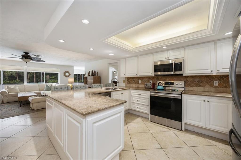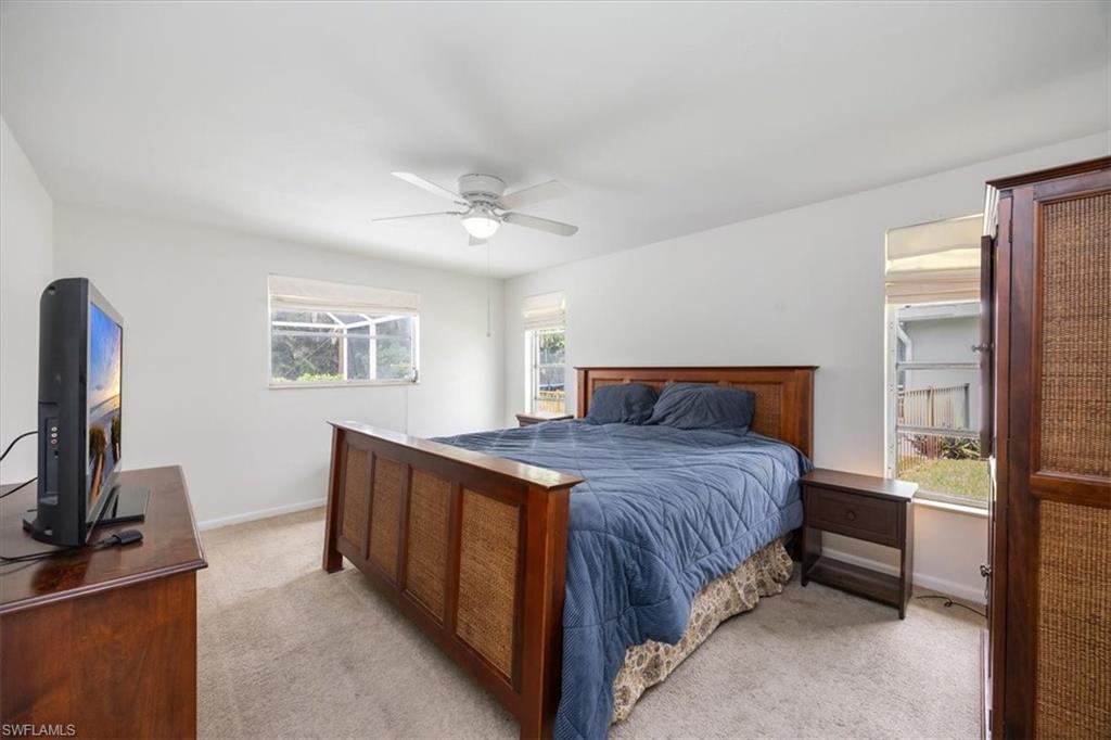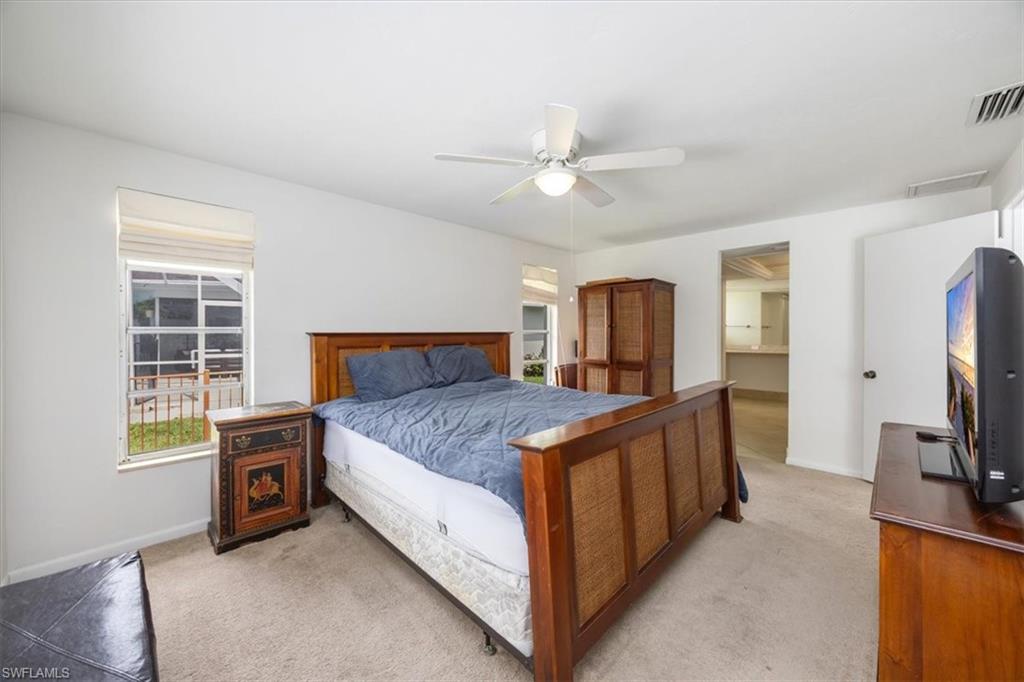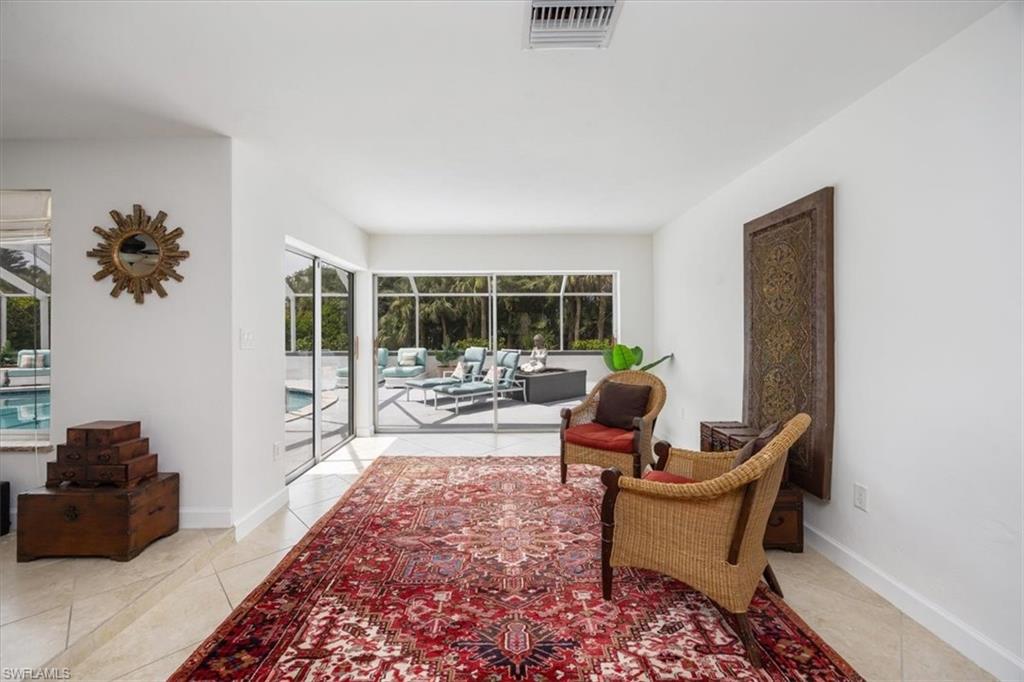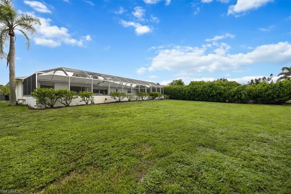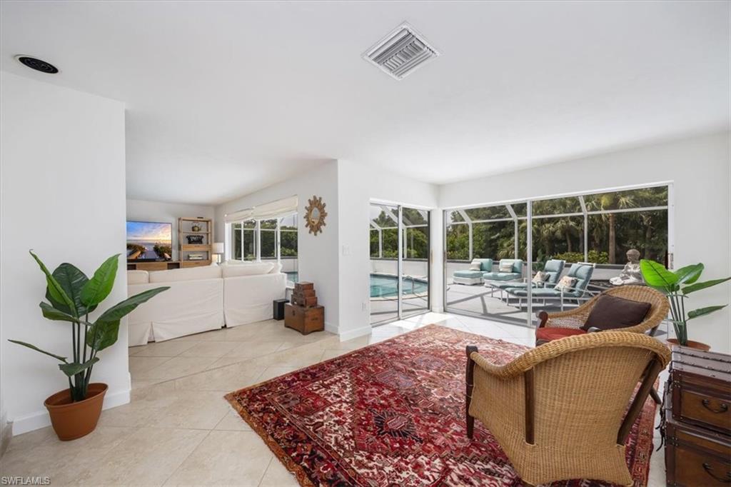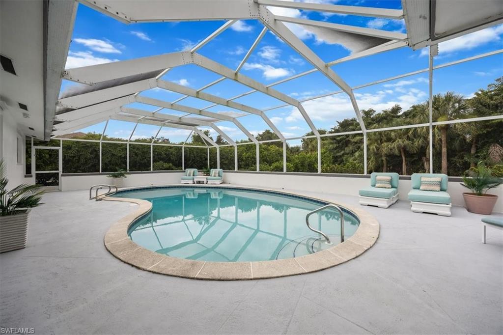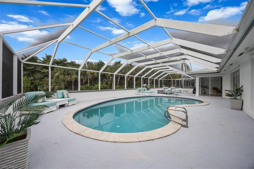 Comfort and convenience are both realized in this spacious residence, tucked away in the established, friendly, HOA-free neighborhood of Palm River Estates. The expansive 14,374 square foot cul-de-sac lot features a well for irrigation and a private setting on the La Playa Golf Course. Inside, you'll find a beautifully maintained interior with a new 2022 roof, recently replaced AC, and fresh paint. The open floor plan provides four large bedrooms, three full baths (one guest bedroom provides en-suite), a large laundry room, and a screened lanai with a private heated pool. The home spans an impressive 2,682 square feet and has two living rooms providing ample space for entertaining, making it perfect for a variety of lifestyles and growing families. Easy access to Naples’ renowned beaches, medical care, Seed to Table market, parks, and Mercato for world-class entertainment come free with this location. With top-rated schools nearby, this home is ideal for families seeking a vibrant and welcoming community.