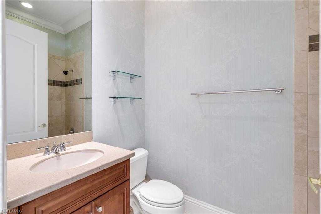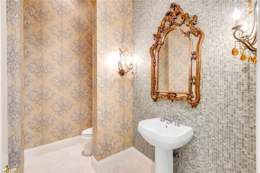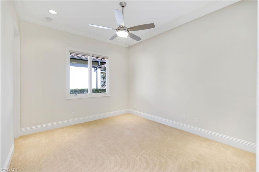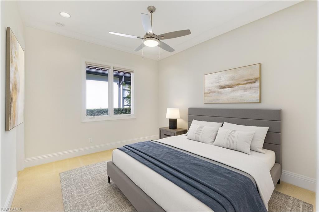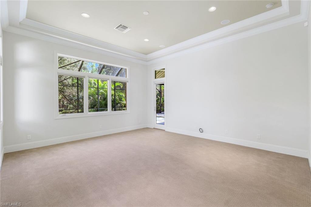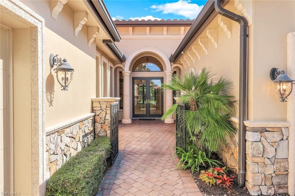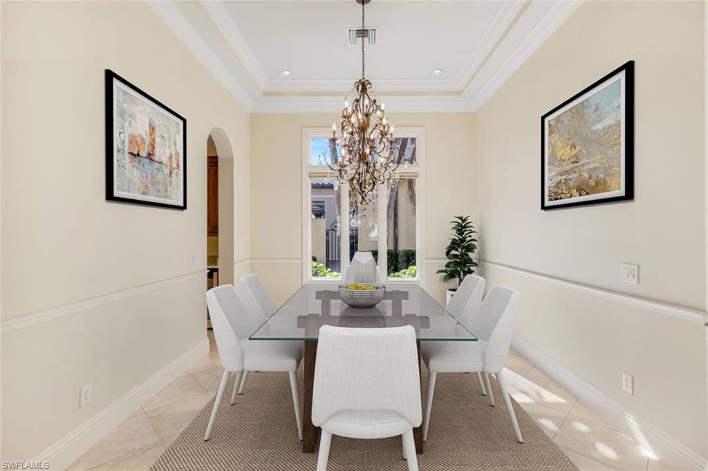 Timeless architecture meets modern luxury and refined elegance in the prestigious, gated community of Mediterra, This beautifully designed residence greets you with a glass-paneled French door entry opening to a grand foyer, setting the tone for sophisticated living. The expansive living room showcases oversized crown molding and a dramatic tray ceiling, creating an atmosphere of understated opulence. A generous formal dining room flows seamlessly into a stylish wet bar featuring a wine refrigerator—perfect for effortless entertaining. The gourmet kitchen impresses with a two-tier breakfast bar, abundant cabinetry, and ideal connectivity to the sprawling family room. Walls of sliding glass doors open fully to a screened and covered lanai that embodies resort-style living, complete with an outdoor kitchen, bar, pool, and spa—perfect for year-round alfresco gatherings. A newly fenced private backyard offers tranquil privacy and space for relaxing. The luxurious primary suite is a true retreat, featuring private access to the lanai, dual walk-in closets, and a spa-inspired bathroom with dual vanities, a soaking tub, and a large walk-in shower. Two additional oversized guest suites, each with their own ensuite baths, offer comfort and privacy for family or visitors. A tasteful powder room serves guests, while the well-appointed laundry room includes a sink and ample storage. Additional highlights include two separate garages, solid core interior doors, and the convenience of natural gas—all in a meticulously maintained, amenity-rich community known for world-class golf, tennis, fine dining, and private beach club access. This is Mediterra living at its finest.