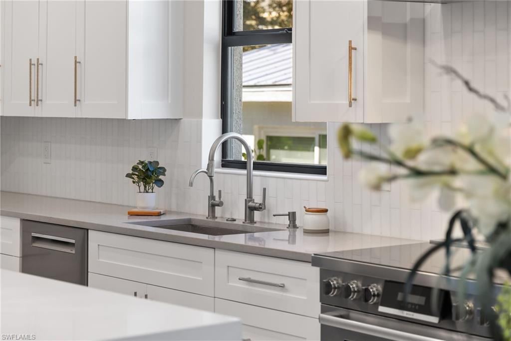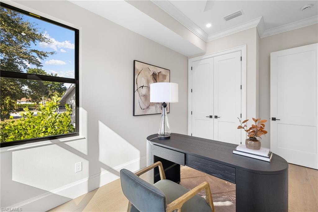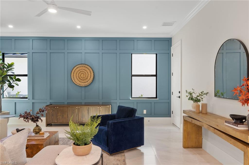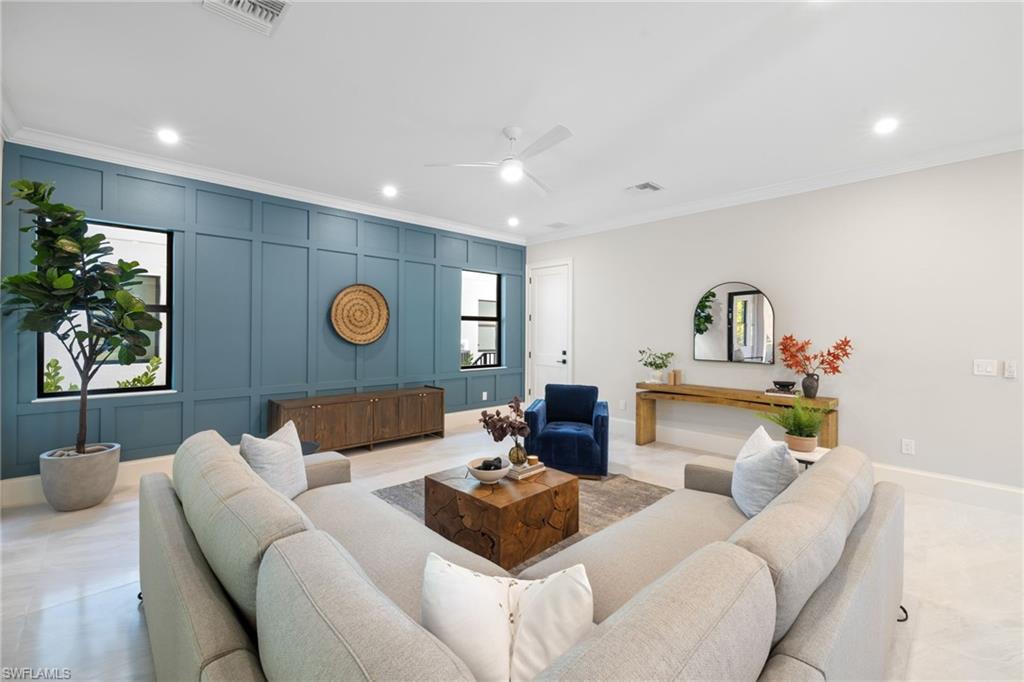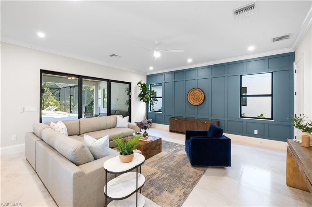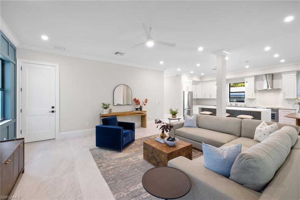 Fabulous new Construction in Bayshore District offering luxury, functionality & the coveted Naples coastal lifestyle! Step into a world of refined craftsmanship and modern sophistication with this brand-new, custom-built residence located in Naples’ dynamic Bayshore District—a neighborhood alive with art, live music, and waterfront dining. This stunning furnished, 4-bedroom plus den, two-story home perfectly balances elegant design and functional living. Inside, expansive open-concept spaces flow effortlessly between the living, dining, and gourmet kitchen areas, all curated with high-end finishes and contemporary architectural details. Every room is bathed in natural light, highlighting the home’s clean lines and sophisticated palette. The first-floor primary en-suite offers a serene retreat with luxurious finishes and spa-like bath, while the den and an additional bedroom on the same level provide flexibility for guests or a home office. Upstairs, a private enclave awaits—two guest bedrooms and a spacious open lounge area with a wet bar, ideal for multi-generational living or visiting family. For added privacy, the stairway is set behind a locking door, creating a secluded second-level retreat - which could also serve as an income source if rented out. Outside you will find your own personal oasis, with a resort-style pool, outdoor kitchen area with grill and covered dining/entertaining space, designed for year-round enjoyment under the Florida sun. A two-car garage provides ample storage and convenience, complementing the home’s modern functionality. Just minutes from downtown Naples and Fifth Ave with it's renowned dining and shopping areas and moments from the artistic energy of Bayshore, this home offers the ultimate blend of luxury, lifestyle, and location—where contemporary design meets coastal charm in one of Naples’ most exciting and evolving districts.