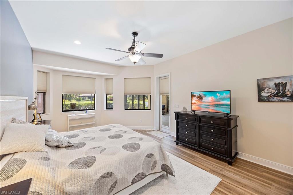 Meticulously maintained custom Colonnade V by Meritage Homes in one of Naples hidden gems, Copper Cove Preserve. This four-bedroom plus den, three-bath home offers southern exposure with tranquil lake views and a solar-heated oversized lakefront pool. Enjoy 14-foot ceilings in the foyer, 12-foot in living/dining areas, and 10-foot throughout the rest of the home. Floor plan includes separate living and family rooms, a gas fireplace, large picture window and a private guest en suite with separate entrance. Upgraded kitchen features granite counters, under-cabinet lighting and stainless appliances. The spacious primary suite includes dual custom closets, a sitting area with pool views and a private air-conditioning unit. Additional highlights include Storm Catcher rolldown hurricane screens, plantation shutters, fresh interior/exterior paint, 5-inch baseboards, laundry room with sink and storage, oversized side-entry garage, pool alarms on all sliders and an independent front irrigation system. Low HOA, no CDD and ideally between Marco Island and downtown Naples.