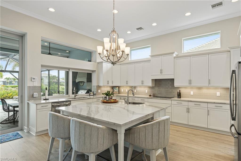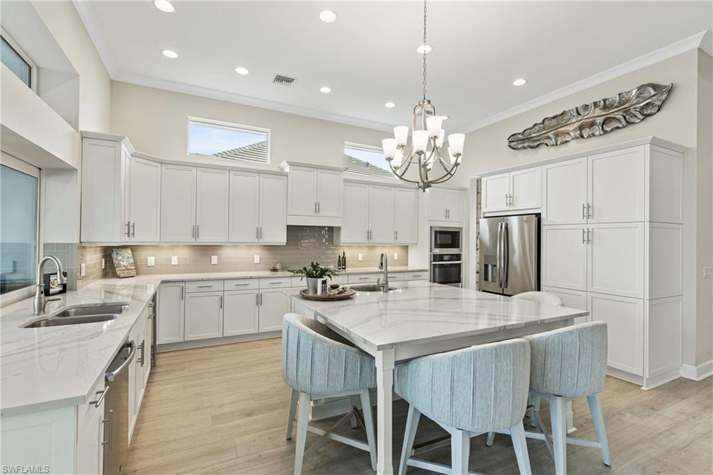 RARELY AVAILABLE JASMINE FLOOR PLAN in The Isles of Collier Preserve! Welcome to this stunning two-bedroom plus den, three-bath residence perfectly positioned within the highly coveted ISLES OF COLLIER PRESERVE—NAPLES MOST BREATHTAKING and AMENITY RICH COMMUNITY. This impeccably maintained home showcases an ideal blend of luxury, comfort, and resort-style living, surrounded by lush tropical landscaping and tranquil preserve views. Step inside to discover soaring ceilings, elegant finishes, and an open-concept design that seamlessly connects the indoor and outdoor living spaces. The chef’s kitchen is a showstopper, featuring a LARGE CENTER ISLAND with QUARTZ COUNTERTOPS, stainless steel appliances, wine refrigerator, and designer cabinetry—perfect for entertaining or casual dining. The spacious great room opens through 10 FOOT POCKETING SLIDERS to an exquisite outdoor oasis featuring a HEATED SALTWATER POOL and SPA, gorgeous paver deck, and CUSTOM OUTDOOR KITCHEN the picture window screen enclosure showcases breathtaking views of the tranquil lake and surrounding preserves. Oversized bedrooms with CUSTOM CLOSETS, DESIGNER LIGHTING, PLANTATION SHUTTERS AND GORGEOUS WINDOW COVERINGS highlight this home. The UPGRADED LANDSCAPE LIGHTING enhances the home’s curb appeal and creates a serene evening ambiance. For added peace of mind, the home is equipped IMPACT WINDOWS and DOORS, SECURITY CAMERAS, KOHLER WHOLE HOME GENERATOR powered by a 500-gallon propane tank, along with Smart Hurricane Protection featuring REMOTE CONTROLLED STORM SMART SCREENS on both the lanai and front entry with the touch of a button. Freshly cleaned and sealed roof and pavers add to the worry free home. The spacious 3 CAR GARAGE (2-1) features pristine EPOXY FLOOR FINISH and ample storage space for vehicles, a golf cart, and all your outdoor gear. The Isles of Collier Preserve spans over 2,400 acres of pristine lakes and natural preserves, offering an unparalleled Southwest Florida lifestyle. Enjoy kayaking and paddleboarding with direct access to the Gulf of Mexico, or explore miles of biking and nature trails surrounded by native wildlife. The community’s resort amenities include a resort-style pool, lap pool, pickleball and tennis courts, bocce, a state-of-the-art fitness center, and an active social calendar filled with community events. Dine waterside at the Overlook Bar & Grill, or venture just 7 minutes to Downtown Naples’ 5th Avenue for fine dining, boutique shopping, and world-class beaches. The Naples Botanical Garden and National Pickleball Center are just outside the gates, offering the best of coastal living and nature-inspired serenity—all in one extraordinary location. Experience the perfect balance of elegance, comfort, and adventure—welcome home to The Isles of Collier Preserve.