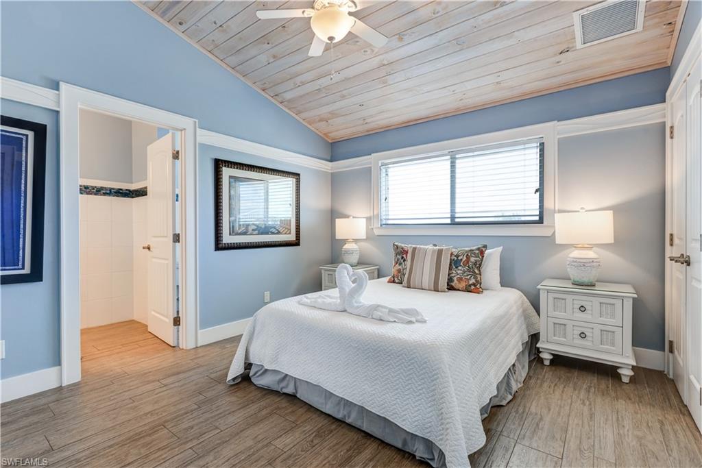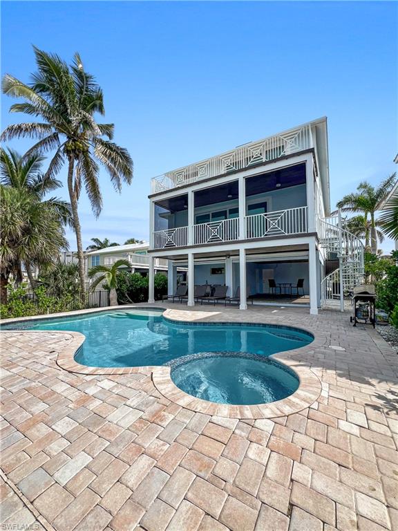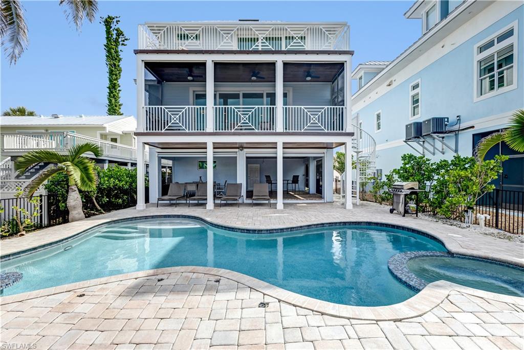 Welcome to The Seabatical — where quiet luxury meets island vibes, just steps to the beach, bay, and your favorite spots. This waterfront pool home is tucked away on a premium canal front lot with direct boating access to both the Back Bay and the open Gulf, all just steps from the island’s best waterfront restaurants, shops, and white sandy beaches. Whether you're seeking an investment property, a family beach retreat, or a full time residence, the Seabatical delivers it all — and then some. Designed in a stylish Key West coastal contemporary style, this custom built home features 5 bedrooms, 5 bathrooms, and an open concept layout that’s made for easy indoor / outdoor living. A wall of sliders seamlessly connects the spacious great room and chef’s kitchen to the expansive outdoor entertainment deck. The kitchen itself is an entertainer’s dream, with a huge island, premium appliance package with new Kitchen Aid cook top, double ovens, custom wood cabinetry, and space to gather, cook, and entertain with ease. Take the private elevator, interior or exterior stairs down to your own resort style backyard. You’ll soak in a heated pool + spa, sun bathe on the built-in sun ledge or seating, and a massive sun deck perfect for gathering with friends and family under the palm trees. Whether you're grilling, relaxing in the spa, or enjoying sunset cocktails poolside, this home is designed to be enjoyed all year long. Inside, you’ll love the attention to detail: wood look tile flooring, impact-resistant windows and doors, solid wood panel doors, and upgraded bathrooms throughout. The oversized garage features epoxy floors making it ideal for storage with an additional flex space for supplies. Best of all, the home is offered turnkey furnished — ready to rent, relax, or relocate with ease. Located on the idyllic street of Palermo Circle, The Seabatical is part of a warm, welcoming neighborhood known for its friendly mix of year round residents, vacationers, and seasonal snowbirds. It's one of the most walkable and vibrant spots on the island — a place where neighbors become friends and the Florida sunshine becomes your daily routine. The home is eligible for lucrative weekly rentals, offering strong income potential (proven between $150K -$175K annually) in one of Fort Myers Beach’s top performing areas. Whether you choose to share it or keep it all to yourself, this is a rare opportunity to own a move in ready, high performing property in a location that checks every box. Live the dream. Invest in the future. Welcome home to The Seabatical!