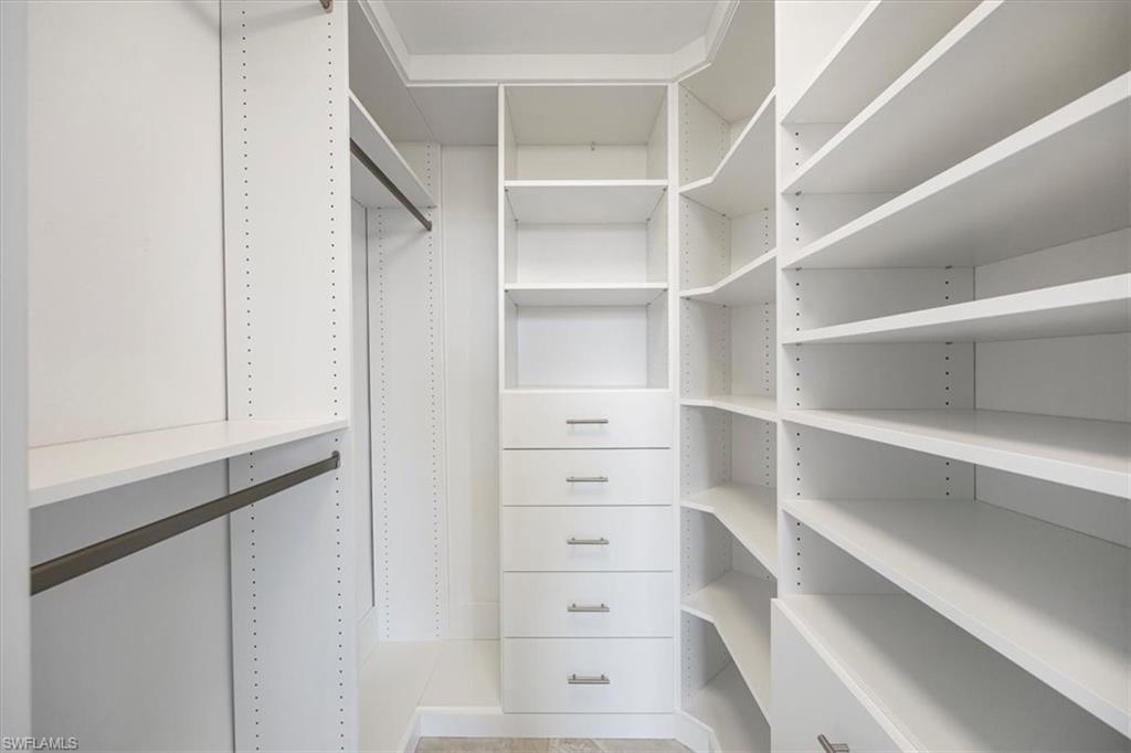 It's your lucky day! Buyer changed mind and walked away from a beautiful home. Light, bright, updated and ready for you to move in! This unit is like no other in the community so get it before it's gone! Tile floors and fresh white paint throughout. All white walls and cabinets. Every closet has been customized with newly installed shelving. Walk-in bedroom closet includes multiple drawers. Laundry room offers multiple cabinets and shelves. All bathroom fixtures are newer as is the shower insert -- with no grout and frameless glass for easy cleaning. Stainless steel kitchen appliances, one-bowl sink and faucet are recent updates. Pet friendly. Resort style community amenities include a newly-renovated large pool and sun deck, hot tub and well-equipped fitness center. On-site property management company. Convenient North Naples location. Easy access to I-75. Quick drive to get downtown or to multiple beaches.