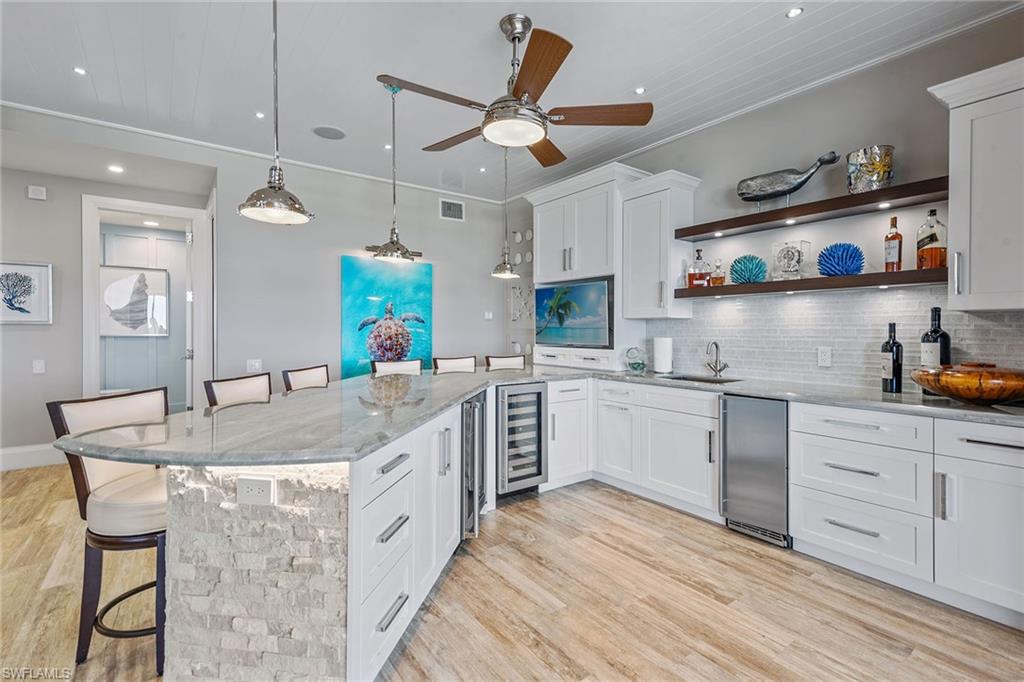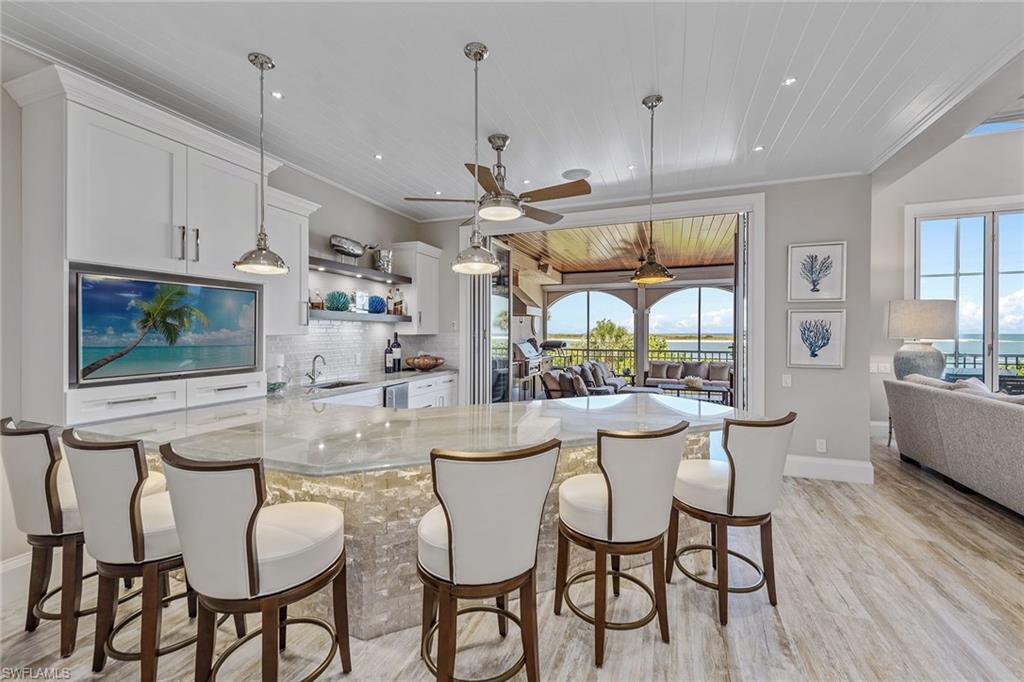 Exquisite three-story beachfront villa in prestigious Hideaway Beach. Live your dream on the beach in this absolutely jaw-dropping, fully renovated villa in the ultra-exclusive Hideaway Beach Club, home to only six beachfront Villas in the entire community! Spanning over 4,500 square feet under air, this three-story coastal masterpiece was completely transformed by Tom Christian Builders, with every inch thoughtfully reimagined. A private three-story elevator and spacious three-car garage offer luxury and convenience. The main living level features a chef’s dream kitchen, dramatic great room with floor-to-ceiling fireplace, and vaulted ceilings that create an open and airy feel. Entertain in style with the custom wet bar or step out onto your private Gulf-front terrace and take in the sweeping views of the beach and water. The primary suite is pure indulgence, boasting a spa-like bath with soaking tub, walk-in shower, dual vanities, and separate dressing rooms. A charming bunk room upstairs is ideal for children or guests, while the lower-level family room is a haven for entertainment—complete with a second bar, wine cooler, refrigerator, sink and ice maker. From there, go out to your private pool, just near the sand. In Hideaway Beach, a 24-hour gated community offering the finest resort-style amenities with direct beach access, beachfront clubhouse with dining, golf, tennis, pickleball, bocce ball and a new, state-of-the-art sports center under construction. This is not just a home, it’s a lifestyle. Private. Exclusive. Unmatched. Don’t miss this once-in-a-lifetime opportunity to own a beachfront villa in one of Marco Island’s desired communities.