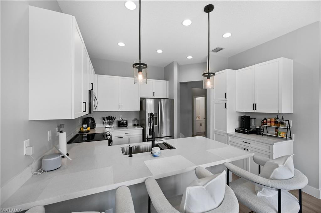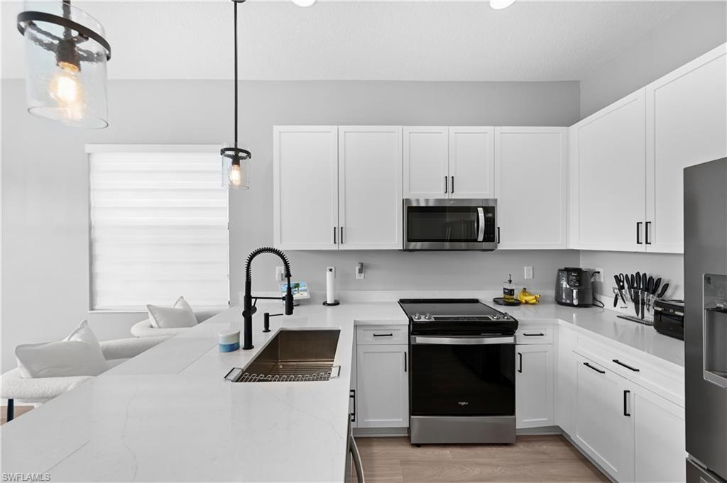 One of the most beautiful 2 story homes in Ave Maria, Fl. Built in 2024 with lots of gorgeous upgrades. This home hosts elegant Grand entry with Modern Fire Place, vinyl flooring thru out the home,open kitchen concept with tastefully done white cabinetry, extra large granite counter tops, gorgeous modern stair case, Stainless Steel applicances, and impact windows and sliding doors entire home. 2 Car garage, washer and drier included. Ave Maria is home to pristine lakes and natural preserves, walking trails and bike paths, Excellent Grade A Schools, conventiently located near shopping, dining and recreational activities. Resort Stlye Clubhouse and Pool are absolutely Stunning!
