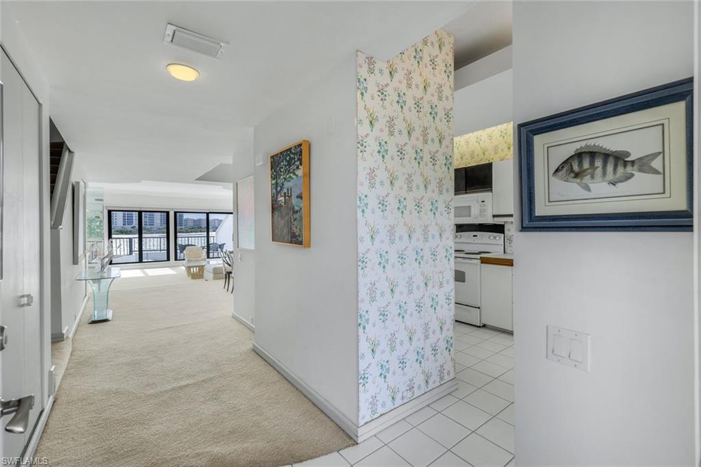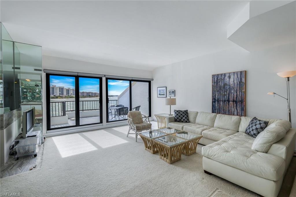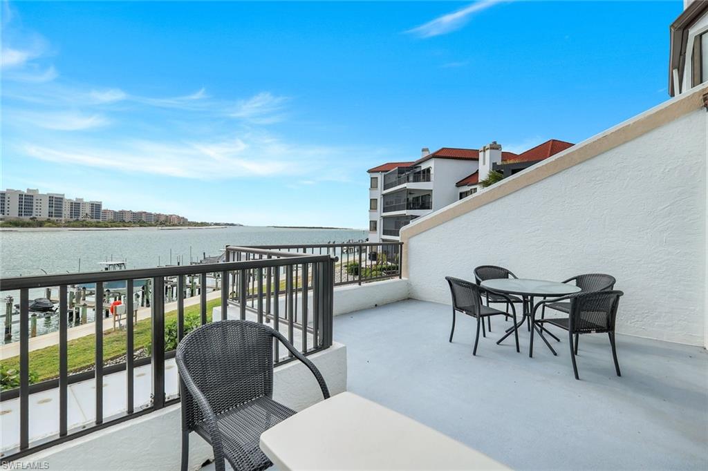 Step into this town house style waterfront condo sitting along the Marco River with Gulf vistas, and a direct view of your optional boat slip (boat slip not included at offering price; however, may be purchased separately). This 1760 Square Foot unit features a great combination of space and functionality. With two bedrooms upstairs, both with ensuites, it’s like having two master suites. The spacious main level features the kitchen, dining room, living room, wet bar, half bath, and a spacious lanai. Sitting on your lanai watching the dolphins play may just become a new favorite activity. With new A/C installed in 2024, this unit is ready for your touches. Move in ready or remodel as your dream home, this condo is sure to be a treasure for the new owners. The current owners cherished this unit for over 35 years and now are ready to let someone else enjoy relaxed Florida living. Uncommon for the town house style units at La Peninsula (and only available in the 200 building), this unit has full elevator access and only two required steps to its entrance via the elevator and elevated walkway. La Peninsula is a gated community tucked away between Marco Island and Naples, but with quick access to both. Great amenities include a pool, sauna, fitness room, and a walking path that stretches nearly a quarter mile along the river and Gulf. An upcoming sports complex including Tennis, Pickleball, and bocce courts are also in the works for this gated community. La Peninsula sits at the tip of the Isles of Capri, a unique and classic Southwest Florida neighborhood that features four restaurants, a church, several marinas, and a fire/rescue station. Surrounded by water with over three miles of walking path, Capri is a neighborhood that will remind you of simpler times, yet keep you close to everything.