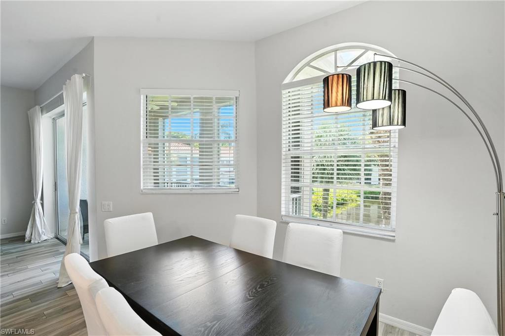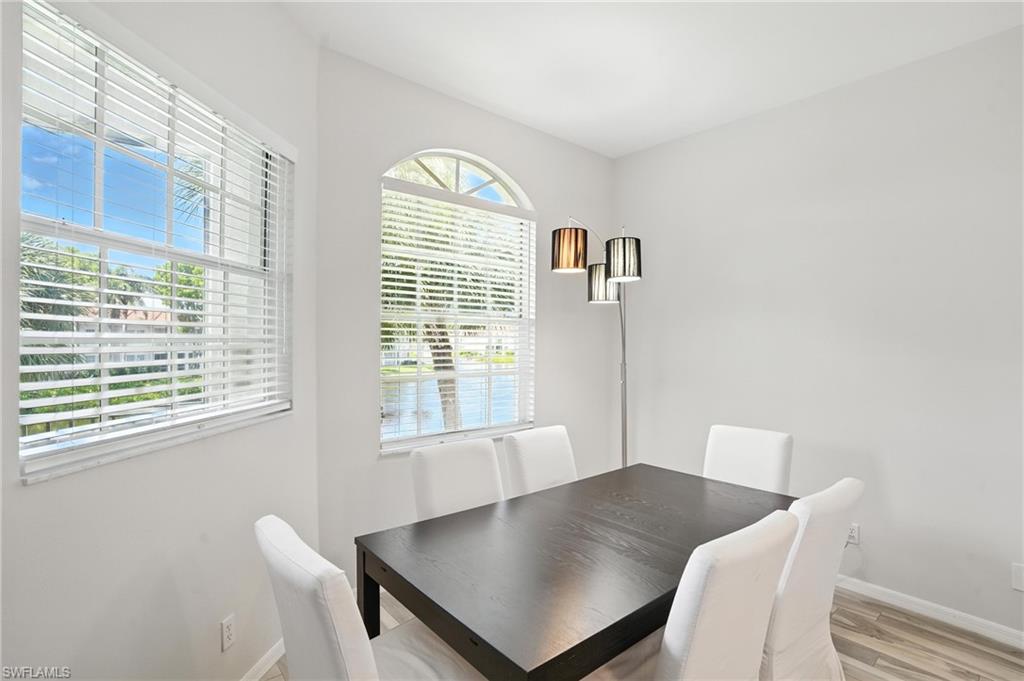 Discover the essence of coastal elegance in this bright and airy second-floor condo in L’Ambiance at Pelican Bay. Featuring wood-style ceramic flooring throughout and a sleek, modern kitchen, this residence offers tranquil lake views and effortless comfort. The spacious floor plan includes three bedrooms, two bathrooms, an in-unit laundry area, and a gorgeous dining space with a view—perfect for entertaining or relaxing. L’Ambiance is a gated community featuring a resort-style pool, spa, and inviting community center. A convenient back gate provides direct access—just steps away—to The Commons, where you'll find a fully equipped fitness center and luxury spa. This timeless condo is your gateway to the very best of Naples living. Step outside and hop on the Pelican Bay beach tram, located just moments from your door, for easy access to your own private stretch of pristine shoreline. Enjoy nearly three miles of exclusive white-sand beaches, beachfront dining at Marker 36, 18 Har-Tru tennis courts (with pickleball courts coming soon), scenic walking paths, and opportunities for sailing and kayaking through 570 acres of protected mangroves. Condo insurance is included in the HOA fees, and the property is not located in a flood zone. Come explore this exceptional property and experience the unmatched lifestyle of Pelican Bay—schedule your private tour today and discover your piece of paradise!