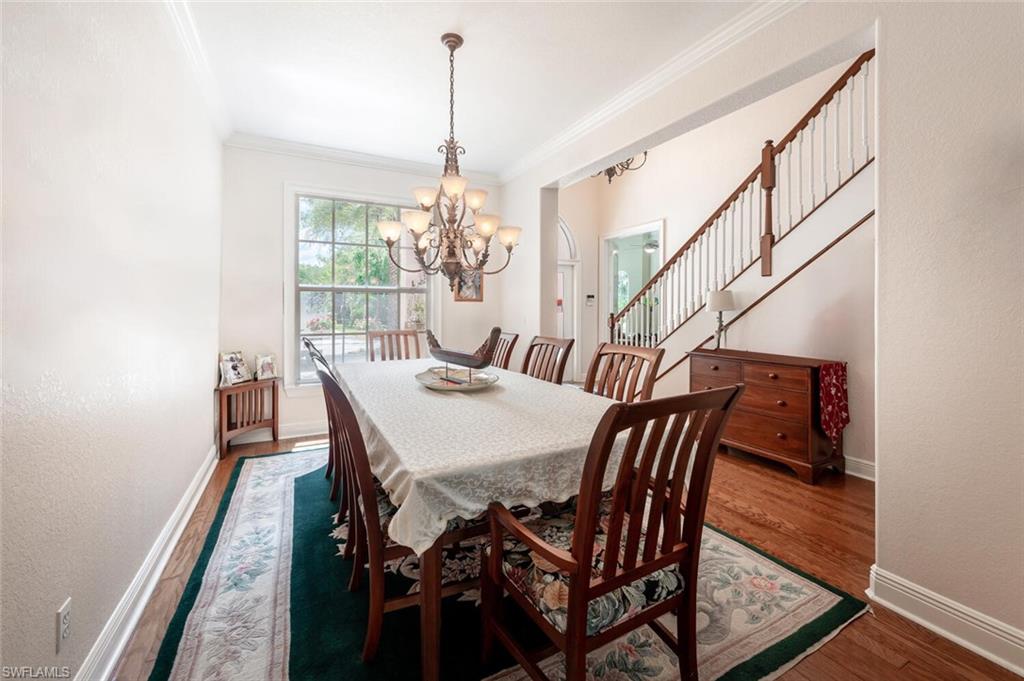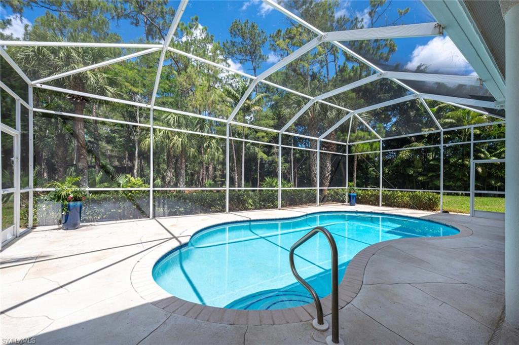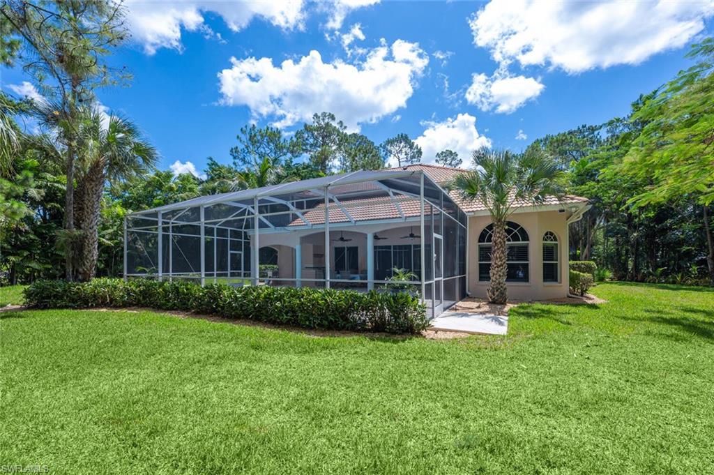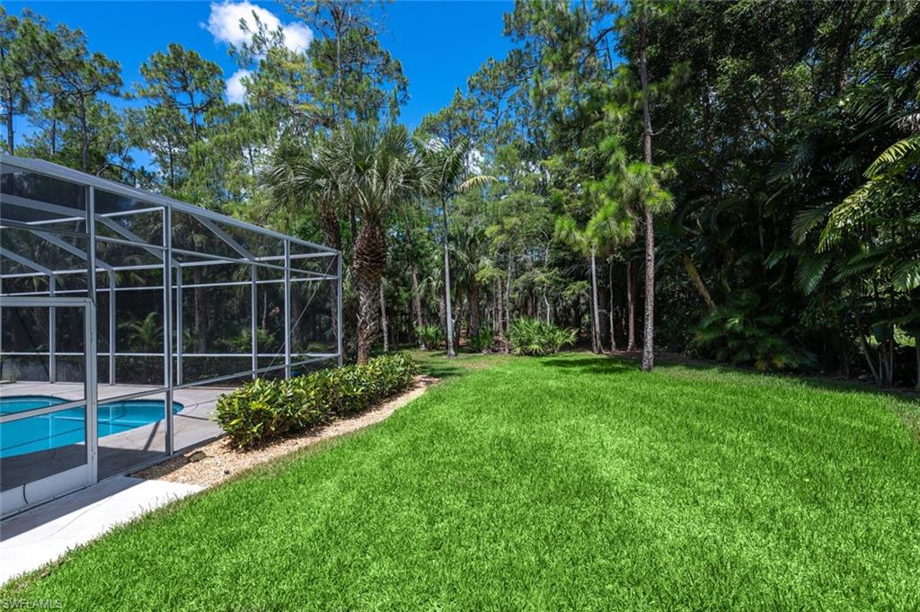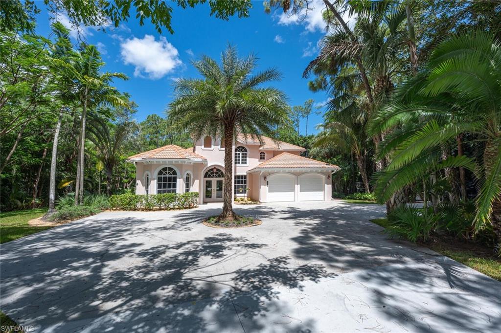 Impeccably Maintained Two-Story Estate Home in Coveted COLLIER WOODS! Welcome to this beautiful and spacious two-story 4-bedroom + large den, 3-bathroom custom residence, set on over 2 acres of impeccably landscaped grounds. Located just south of Vanderbilt Beach Rd, near Founders Square, Mercato, and Galleria Shops, this home offers privacy, elegance, and an unbeatable Naples location. Step inside to soaring vaulted and volume ceilings, over 3,100 sq. ft. under air, and elegant finishes including hardwood floors, new high-end carpet and some newer appliances. The flexible floor plan features a large den that can easily be converted into a mother-in-law suite. The kitchen is next to the EXPANSIVE GREAT ROOM, a large eat -in kitchen area and a SEPARATE FORMAL DINING AREA OPEN TO THE GREAT ROOM. A convenient full pool bath is thoughtfully located on the main level. The expansive primary suite offers a relaxing retreat with a bay window seating area currently used as a home office, his and her sinks, a soaking tub, separate shower, and ample closet space. UPSTAIRS, in this two-story layout, you'll find THREE additional spacious bedrooms, a large full bath with dual sinks, and a charming private SCREENED PORCH—plus a laundry chute for added ease. Outdoors, enjoy the screened pool and lanai area with both covered and sunny spaces ideal for entertaining or relaxing. The home is surrounded by exceptional, curated landscaping featuring over $500K in enhancements—including rare palms, bromeliad and orchid gardens, and meandering walking paths through serene, tropical greenery. It's a private botanical retreat rarely found in Naples. Additional features include - Whole house generator - Hurricane film on all windows - Tile roof with recent inspection - New and newer A/C units - Attached 2-car garage -Heavy duty CONCRETE PAD FOR BOAT OR CAMPER. NEW Septic / Drainfield to be completed in October 2025. Perfect for families or hosting guests, this exceptional Collier Woods residence blends comfort, natural beauty, and high-end living.