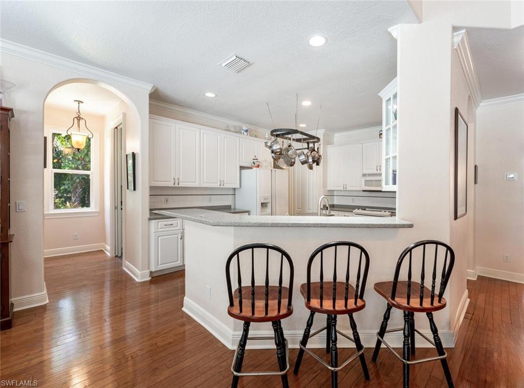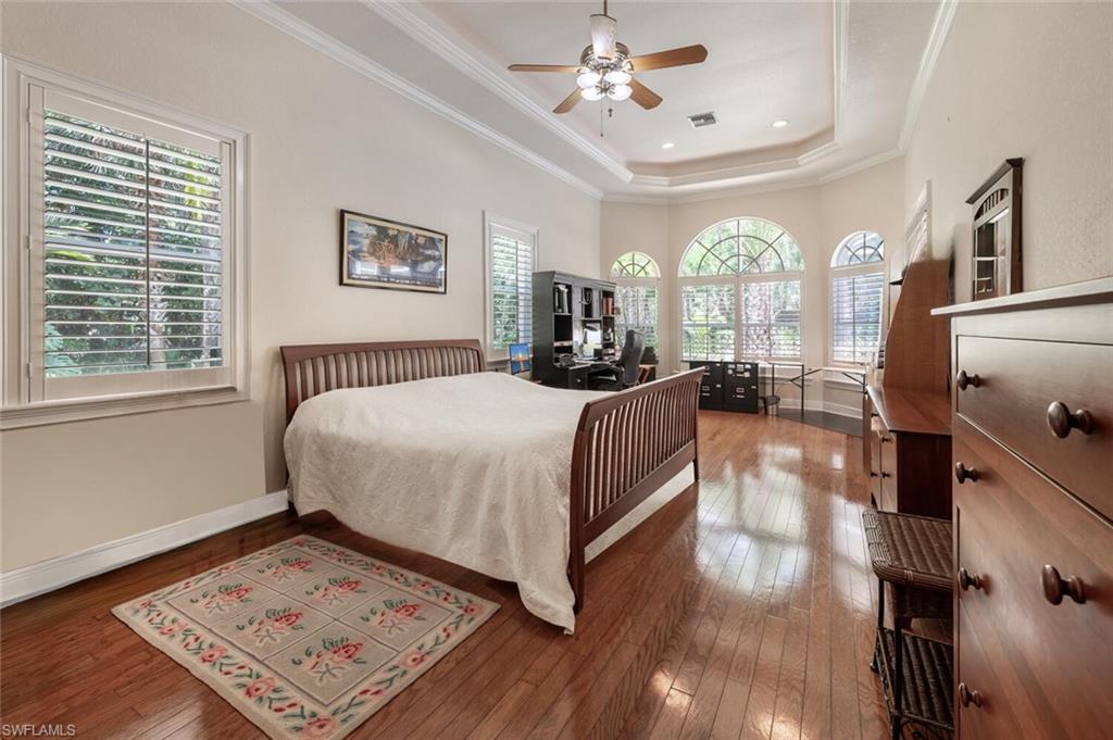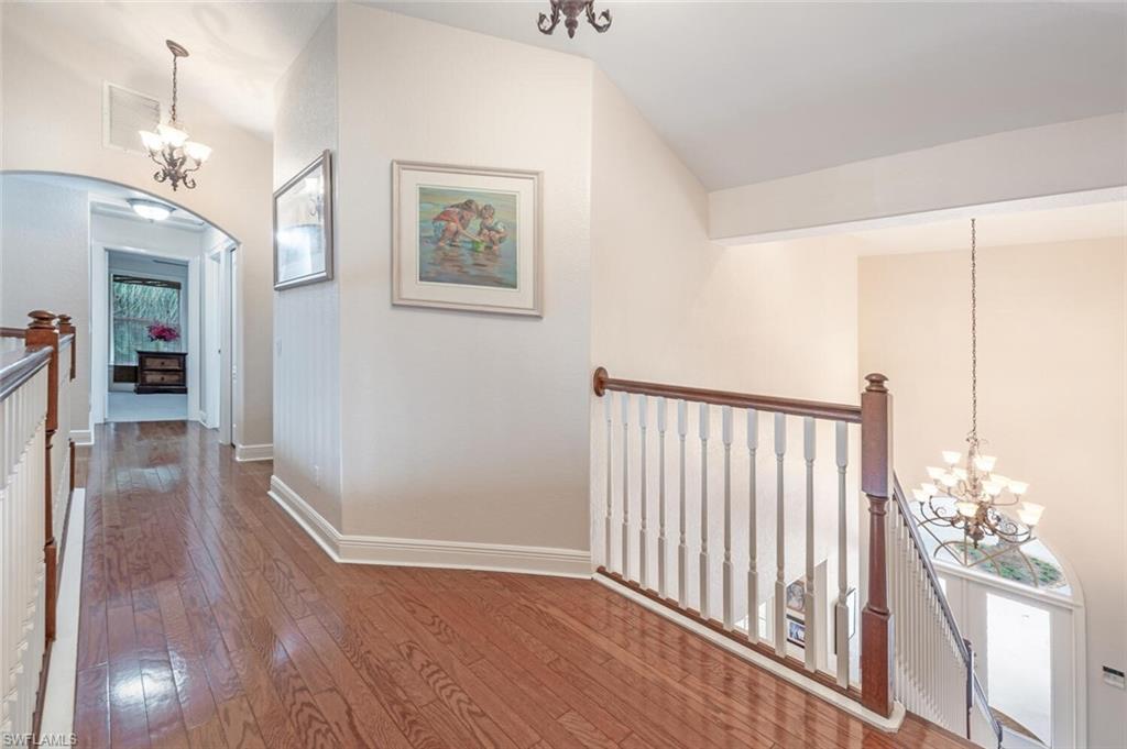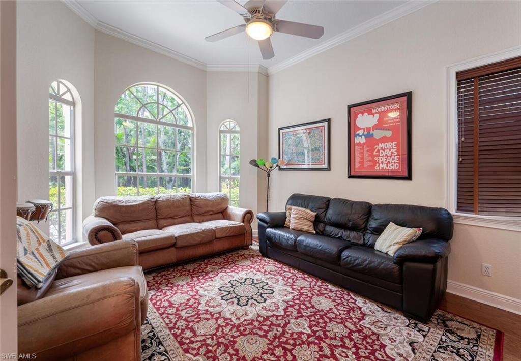 Impeccably Maintained Two-Story Estate Home in Coveted COLLIER WOODS! Welcome to this beautiful and spacious two-story 4-bedroom + large den, 3-bathroom custom residence, set on over 2 acres of impeccably landscaped grounds. Located just south of Vanderbilt Beach Rd, near Founders Square, Mercato, and Galleria Shops, this home offers privacy, elegance, and an unbeatable Naples location. Step inside to soaring vaulted and volume ceilings, over 3,100 sq. ft. under air, and elegant finishes including hardwood floors, new high-end carpet and some newer appliances. The flexible floor plan features a large den that can easily be converted into a mother-in-law suite. The kitchen is next to the EXPANSIVE GREAT ROOM, a large eat -in kitchen area and a SEPARATE FORMAL DINING AREA OPEN TO THE GREAT ROOM. A convenient full pool bath is thoughtfully located on the main level. The expansive primary suite offers a relaxing retreat with a bay window seating area currently used as a home office, his and her sinks, a soaking tub, separate shower, and ample closet space. UPSTAIRS, in this two-story layout, you'll find THREE additional spacious bedrooms, a large full bath with dual sinks, and a charming private SCREENED PORCH—plus a laundry chute for added ease. Outdoors, enjoy the screened pool and lanai area with both covered and sunny spaces ideal for entertaining or relaxing. The home is surrounded by exceptional, curated landscaping featuring over $500K in enhancements—including rare palms, bromeliad and orchid gardens, and meandering walking paths through serene, tropical greenery. It's a private botanical retreat rarely found in Naples. Additional features include - Whole house generator - Hurricane film on all windows - Tile roof with recent inspection - New and newer A/C units - Attached 2-car garage -Heavy duty CONCRETE PAD FOR BOAT OR CAMPER. NEW Septic / Drainfield to be completed in October 2025. Perfect for families or hosting guests, this exceptional Collier Woods residence blends comfort, natural beauty, and high-end living.