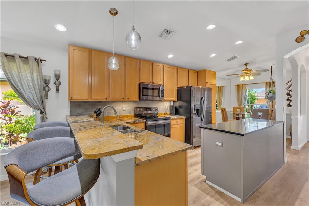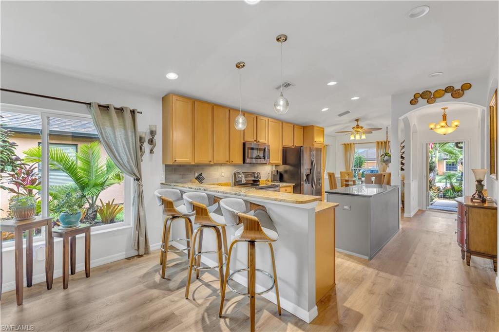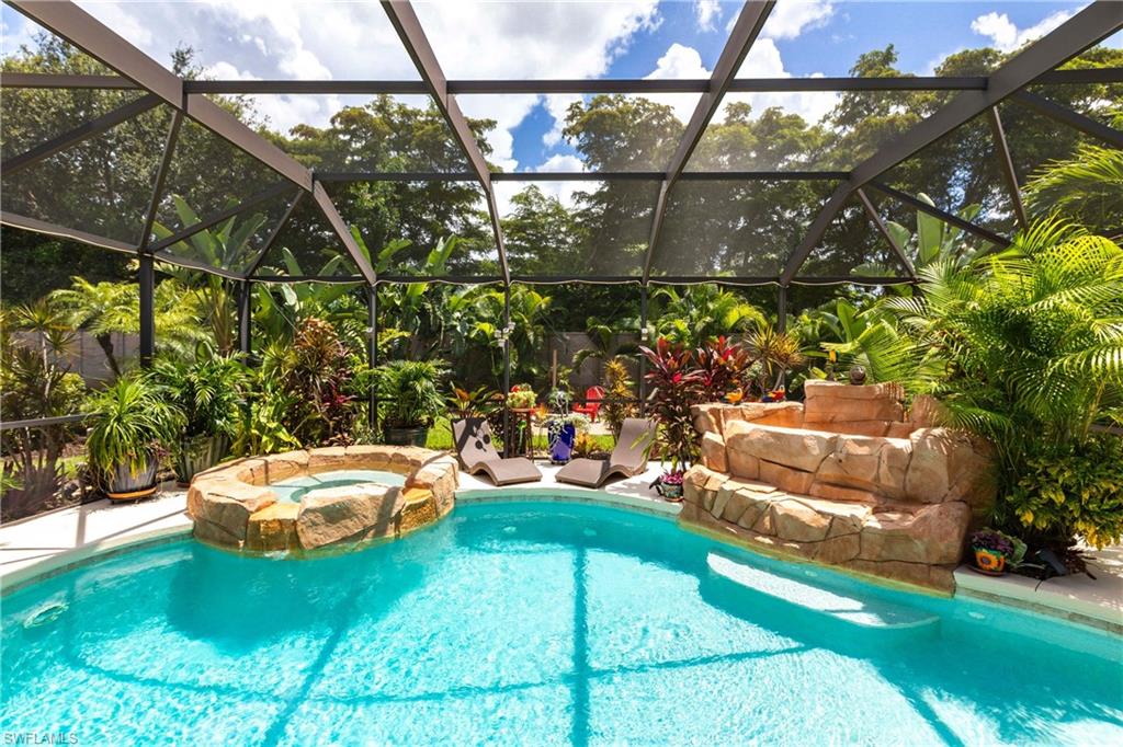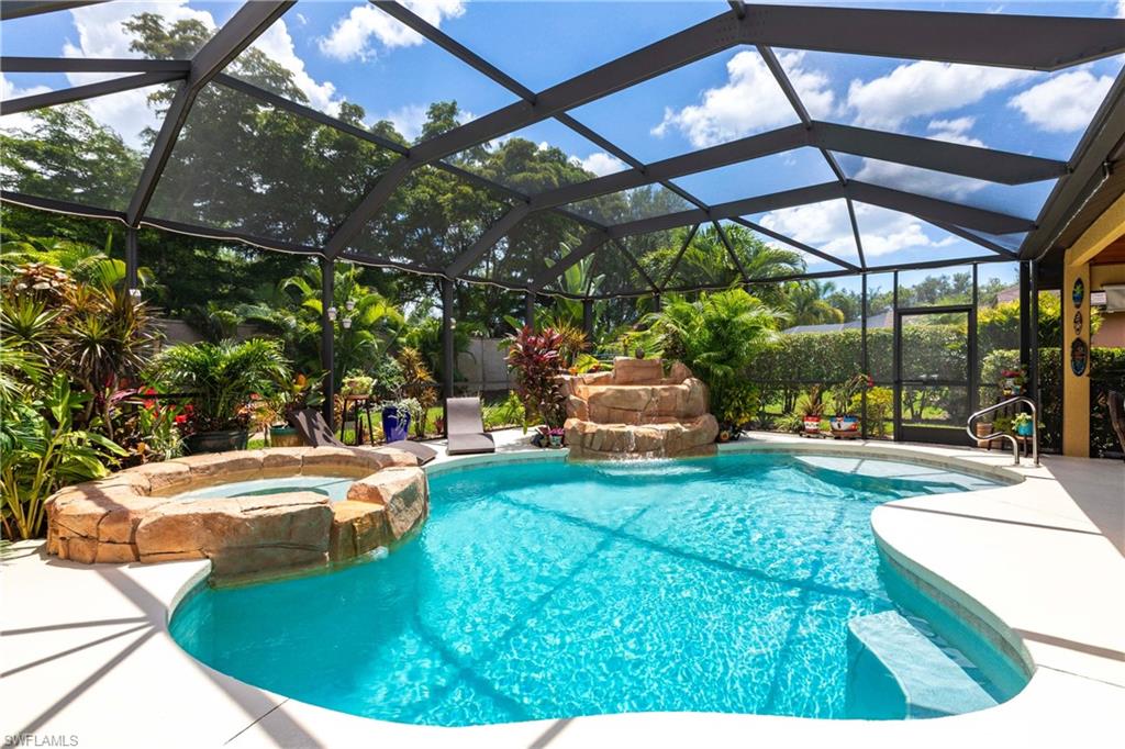 You will feel like you are living at your own exclusive resort in this RARELY AVAILABLE single-family home complete with a fabulous resort-style private pool, spa and waterfall! Surrounded by lush tropical designer landscaping and custom landscape lighting, you will never want to leave your private Florida Oasis. 3711 Costa Maya Way has been meticulously maintained and is both updated and upgraded! You will love this spacious split floor plan with three bedrooms, two full bathrooms, and a bonus den/formal dining room. The chef of your family will enjoy this newly remodeled kitchen with exotic granite and quartz counter tops, vast cabinets, new kitchen island, designer lighting, upgraded appliances and decorative tile back splash. Life proof LVF floor just added in living areas and kitchen. NEW ROOF AND HURRICANE WINDOWS in 2024! New hot water heater in 2024. Escape to your large master retreat featuring dual vanities, large soaking tub with a separate tile shower & a walk in closet. Beautiful French doors open to your stellar lanai with additional covered area just added for expansive outdoor tropical living space. You will love this unique architectural design complete with custom one-of-a-kind tongue and groove wood ceiling and two sky lights, which can now be enjoyed rain or shine! Find serenity on your private extended lanai for tropical outdoor living. Relax on your custom 15X15 pavered fire pit area, right in your back yard! This luxury property is found within the beautiful, gated community of Terra Vista, offering a large community pool and clubhouse-- with LOW HOA FEES! Located on a quiet cul-de-sac, you can have a large private backyard with designer tropical landscaping and still be close to everything! PERFECT ESTERO LOCATION-close to shopping and dining, with easy access to both US 41 & I-75. PERFECT ESTERO LOCATION-close to shopping and dining, with easy access to both US 41 & I-75. NEVER Flooded and not in a flood zone (zone x), yet west of US-41. This gorgeous property will impress even the most discerning of buyers! Come see what Florida living is all about before this home is just another SOLD! Request our virtual 3-D walk though tour today!