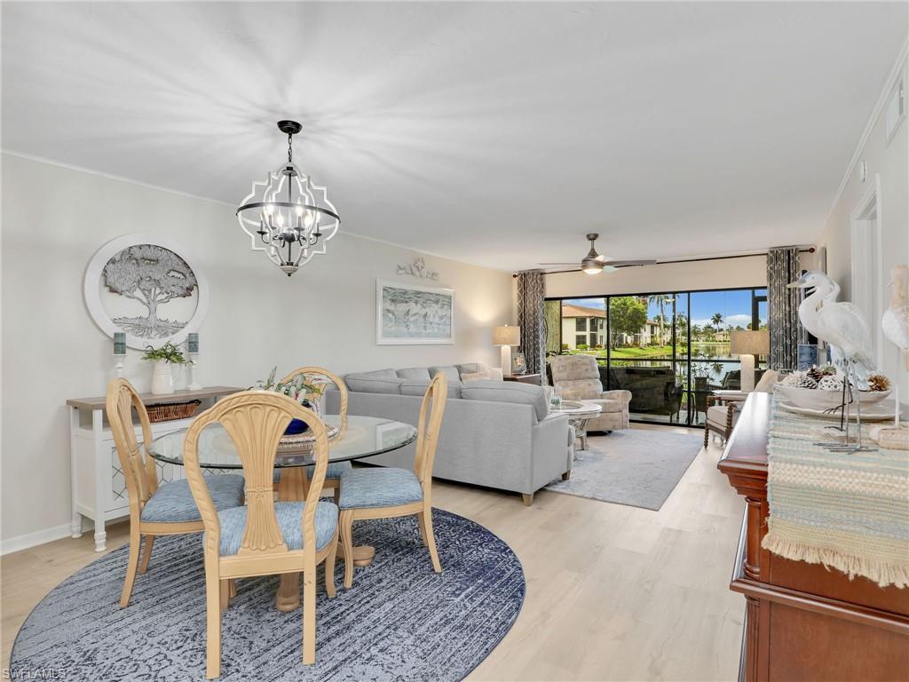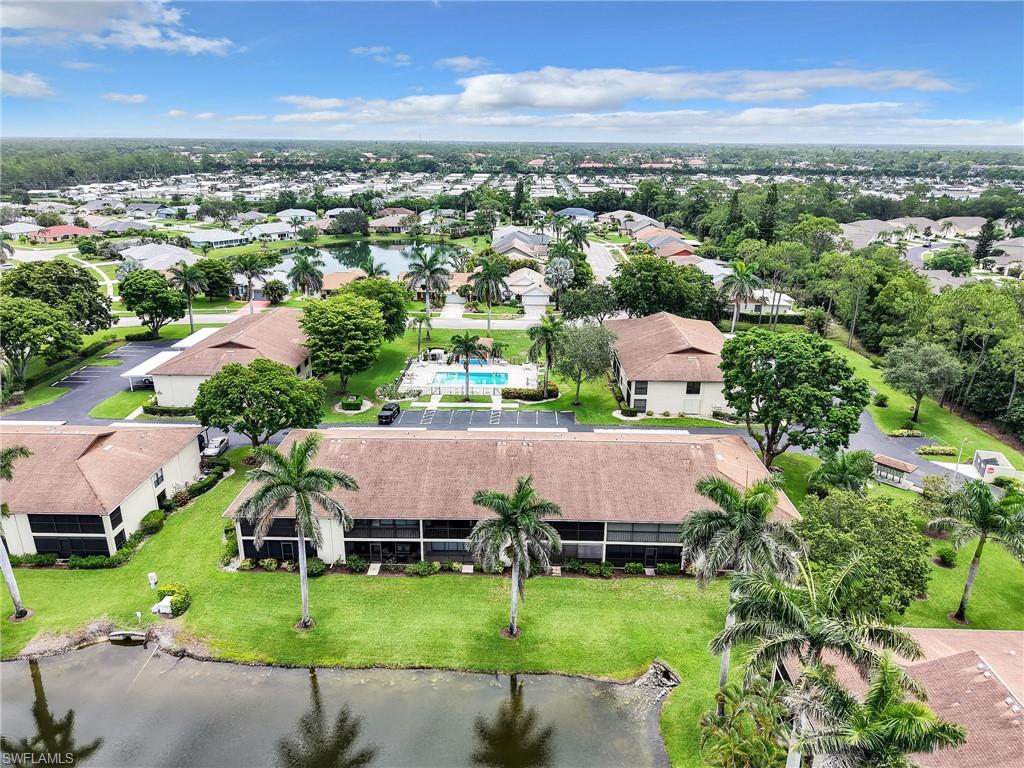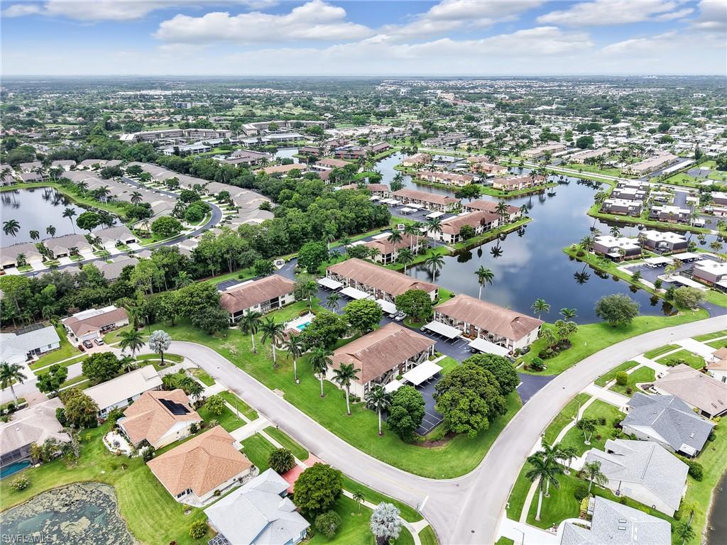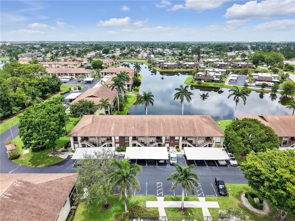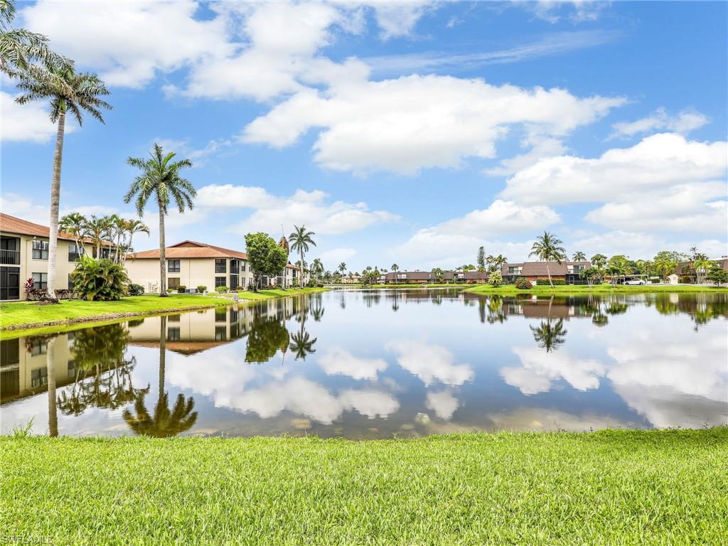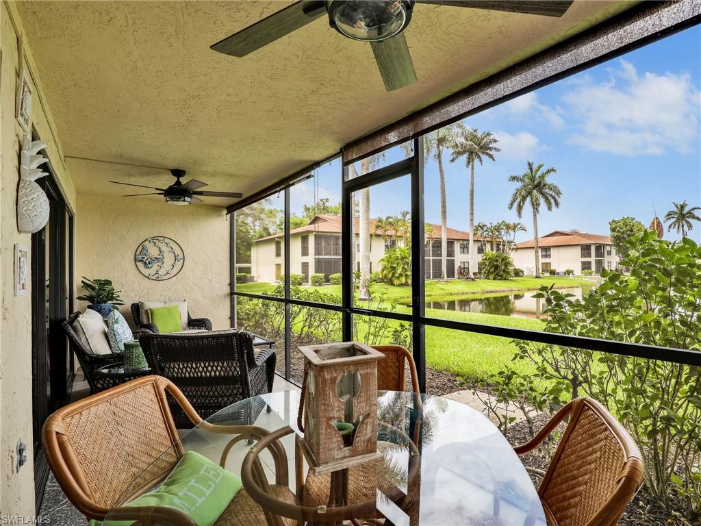 LAKE FRONT BEAUTY Experience the best of Naples living in this beautifully updated first-floor residence, ideally situated for both convenience and tranquility. Step just outside your front door to your assigned carport, and enjoy your eastern-facing front patio, perfect for soaking in the peaceful morning sun with a cup of coffee. Inside, you’ll find plantation shutters, upgraded luxury vinyl plank flooring, and a custom interior paint palette that brings warmth and sophistication to every room. The white raised panel kitchen cabinetry adds a modern coastal feel, while the renovated bathrooms feature sleek sliding glass shower doors and contemporary finishes. The furnishings are negotiable in this sale, making this an easy home to transition in to. The oversized screened lanai with an additional storage closet offers a front-row seat to spectacular long-lake views and breathtaking Florida sunsets—a perfect space for relaxing, alfresco dining or entertaining guests. Best of all, you’re right across the street from one the two community pools, making it easy to enjoy a refreshing dip or meet neighbors. Located just minutes from downtown Naples, the white sandy beaches of the Gulf of Mexico, and an abundance of shopping, dining, and outdoor recreation, this home offers effortless access to everything you love about Southwest Florida. You’re also conveniently close to medical facilities and regional airports, making this an ideal year-round residence or seasonal retreat. Don’t miss this opportunity to own a piece of paradise in one of Naples’ most accessible and desirable areas!