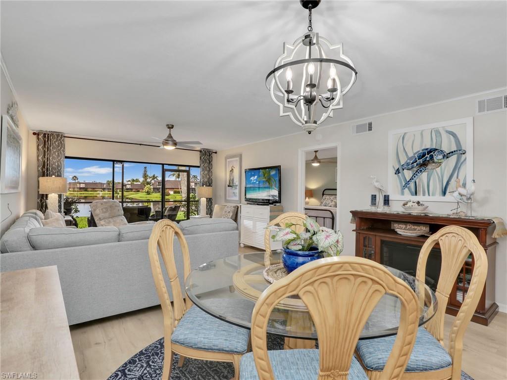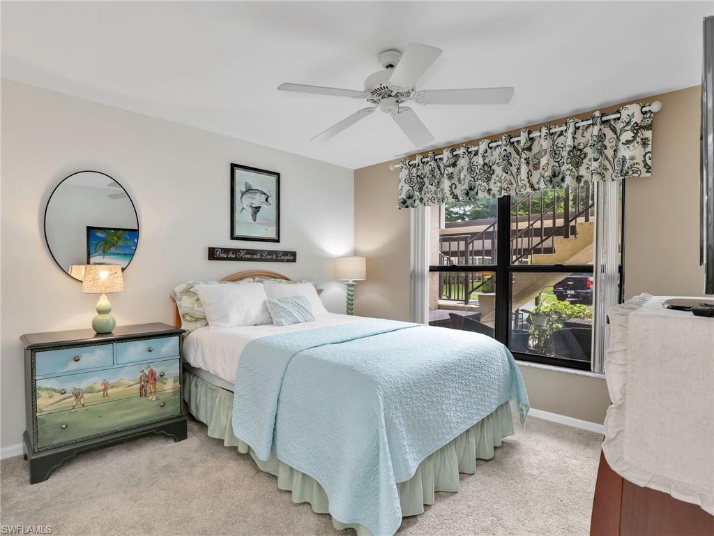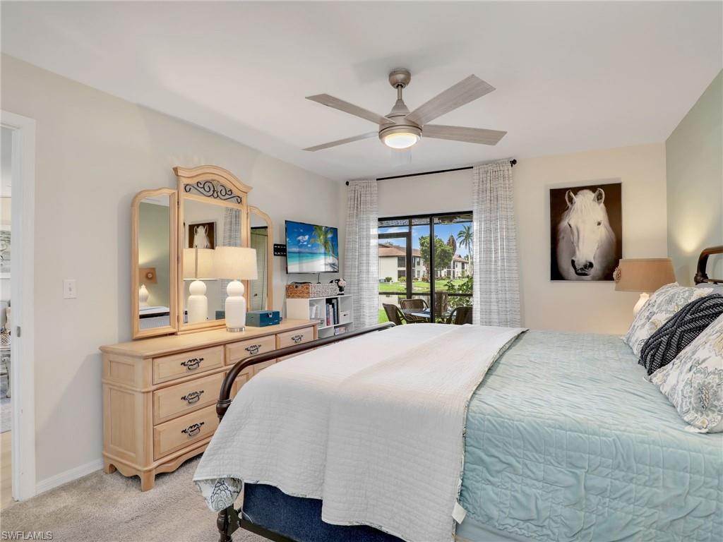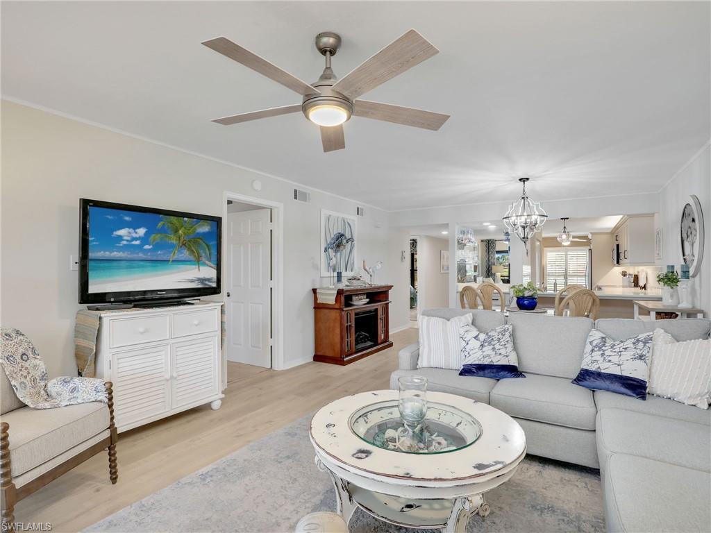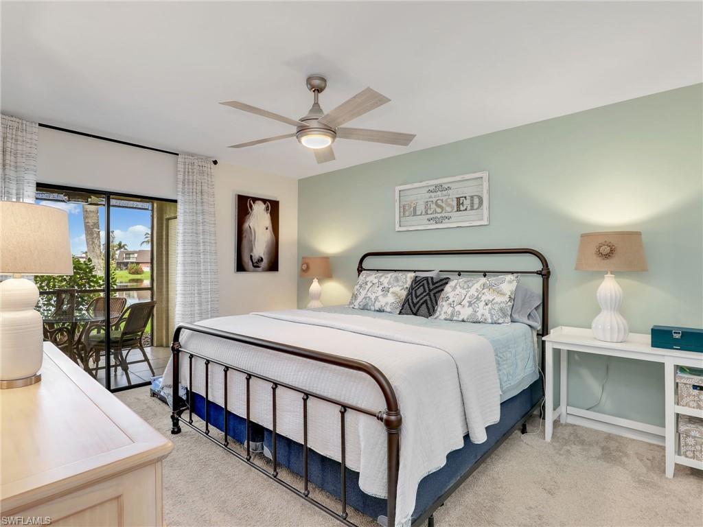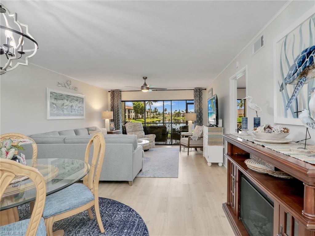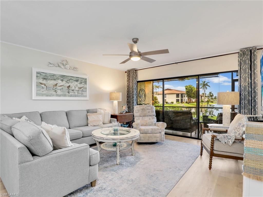 LAKE FRONT BEAUTY Experience the best of Naples living in this beautifully updated first-floor residence, ideally situated for both convenience and tranquility. Step just outside your front door to your assigned carport, and enjoy your eastern-facing front patio, perfect for soaking in the peaceful morning sun with a cup of coffee. Inside, you’ll find plantation shutters, upgraded luxury vinyl plank flooring, and a custom interior paint palette that brings warmth and sophistication to every room. The white raised panel kitchen cabinetry adds a modern coastal feel, while the renovated bathrooms feature sleek sliding glass shower doors and contemporary finishes. The furnishings are negotiable in this sale, making this an easy home to transition in to. The oversized screened lanai with an additional storage closet offers a front-row seat to spectacular long-lake views and breathtaking Florida sunsets—a perfect space for relaxing, alfresco dining or entertaining guests. Best of all, you’re right across the street from one the two community pools, making it easy to enjoy a refreshing dip or meet neighbors. Located just minutes from downtown Naples, the white sandy beaches of the Gulf of Mexico, and an abundance of shopping, dining, and outdoor recreation, this home offers effortless access to everything you love about Southwest Florida. You’re also conveniently close to medical facilities and regional airports, making this an ideal year-round residence or seasonal retreat. Don’t miss this opportunity to own a piece of paradise in one of Naples’ most accessible and desirable areas!