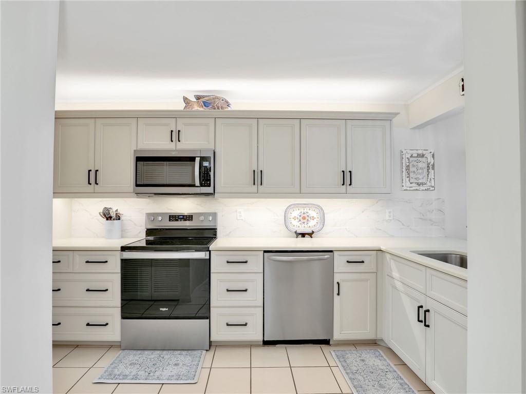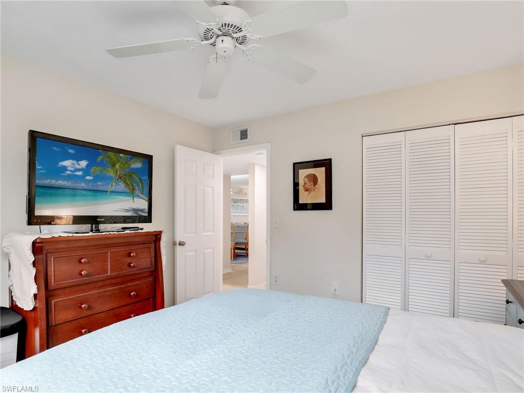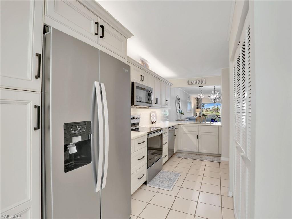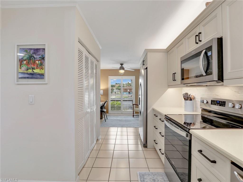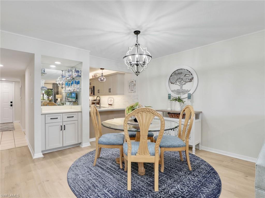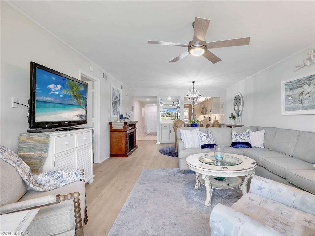 LAKE FRONT BEAUTY Experience the best of Naples living in this beautifully updated first-floor residence, ideally situated for both convenience and tranquility. Step just outside your front door to your assigned carport, and enjoy your eastern-facing front patio, perfect for soaking in the peaceful morning sun with a cup of coffee. Inside, you’ll find plantation shutters, upgraded luxury vinyl plank flooring, and a custom interior paint palette that brings warmth and sophistication to every room. The white raised panel kitchen cabinetry adds a modern coastal feel, while the renovated bathrooms feature sleek sliding glass shower doors and contemporary finishes. The furnishings are negotiable in this sale, making this an easy home to transition in to. The oversized screened lanai with an additional storage closet offers a front-row seat to spectacular long-lake views and breathtaking Florida sunsets—a perfect space for relaxing, alfresco dining or entertaining guests. Best of all, you’re right across the street from one the two community pools, making it easy to enjoy a refreshing dip or meet neighbors. Located just minutes from downtown Naples, the white sandy beaches of the Gulf of Mexico, and an abundance of shopping, dining, and outdoor recreation, this home offers effortless access to everything you love about Southwest Florida. You’re also conveniently close to medical facilities and regional airports, making this an ideal year-round residence or seasonal retreat. Don’t miss this opportunity to own a piece of paradise in one of Naples’ most accessible and desirable areas!