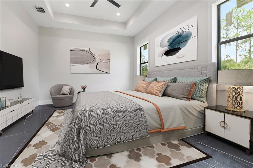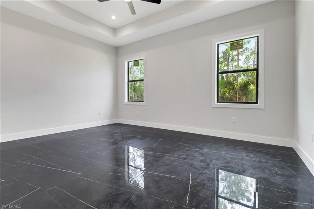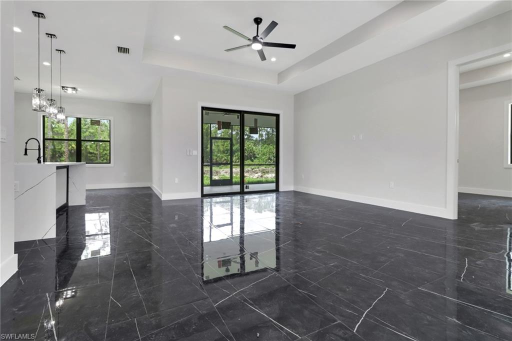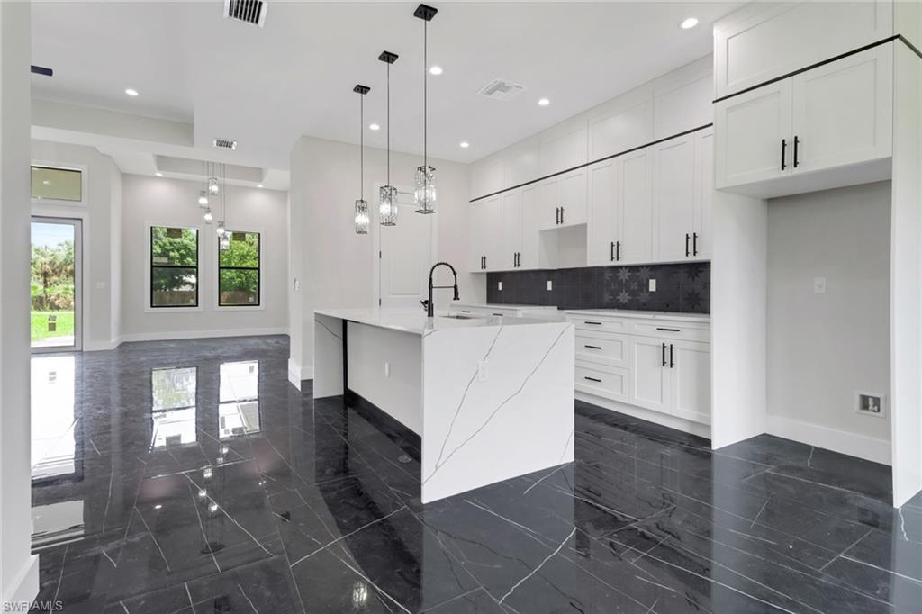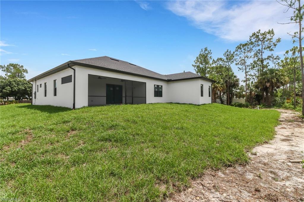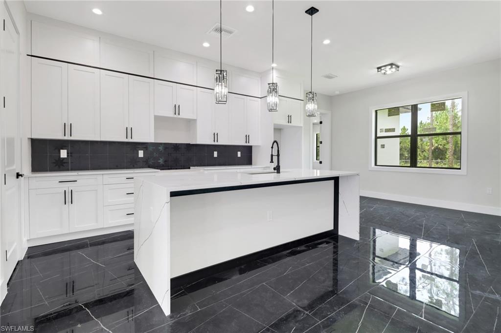 PRICE IMPROVEMENT! Discover this beautiful brand-new home situated on over 2.3 acres of land, offering more than 2,200 sq. ft. of luxurious living space.This home features 3 generously sized bedrooms and 3 full baths, plus a versatile flex space that can serve as a recreation room, home office,or media room, complete with a closet, private bath, and wet bar. Inside, you'll find stylish tile flooring throughout, impact-resistant windows and doors, a waterfall kitchen island, and an upgraded appliance package. The lanai, equipped with a wet bar, is perfect for enjoying your morning coffee or evening cocktail while overlooking the landscaped yard. Entertaining is effortless with the chef's kitchen that opens to a large great room featuring sliding doors to the lanai. Guests can relax at the kitchen island and chat while meals are prepared. The café dining area is ideal for casual get-togethers, while the formal dining room is perfect for holidays and special occasions. The primary bedroom suite offers a spacious walk-in closet, dual sinks, a walk-in shower, and a private water closet. Additional upgrades include decorative wood trim around the windows, ceiling fans, lighting fixtures, and a whole-house reverse osmosis system. The 2-car garage provides ample storage space. This home exemplifies comfort, style, and quality living.