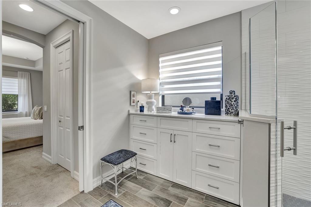 MOTIVATED SELLER! $150,000 in UPGRADES! Picture perfect, absolutely immaculate, GATED, upgraded lakefront home in gated low-density low fee neighborhood perfectly situated in North Naples. Every desirable shopping & dining necessity is within minutes. The Gulf of Mexico is less than 10miles away. Great school district. This split floor plan home is perfect for an active fun loving family, retiree, an empty nester, or professional couple working from home that needs a true office. Flexible floor plan. Recently upgraded with Quartz countertops, designer fixtures, an amazing upgraded Primary bathroom and a generously sized private sparkling swimming pool. The outdoor living space is extremely private and offers the perfect combination of open sunshine and covered space for relaxation and grilling, dining, and entertaining. Super easy to view! Quarterly fees are only $ 860 - very pet friendly