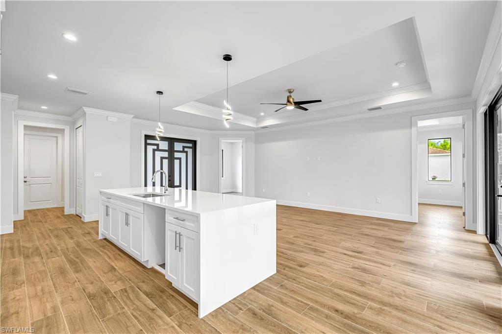 *PRICED TO SELL FAST* Home built in the area of Golden Gate Estates on a 1.14ac 100% upland lot, features 3 bedrooms + Den, 2 bath, & 2 car garage! Living area of 1,656 sq.ft and a grand total of 2,398 sq.ft. Upgrades include porcelain plank tile throughout, crown molding, quartz countertops, stainless steel appliances, and solid wood cabinets! The kitchen has 2 pantries. The living room and master suite boast tray ceilings. Master wing features an oversized bedroom, 1 spacious closet, double vanity, and glass door enclosed shower. The outside of this home will not disappoint either with a beautiful landscape, auto sprinkler system, and a summer kitchen in the large lanai. Impact resistant windows/doors! Your brand new home will be ready in July 2025! Pictures are from another same model home.