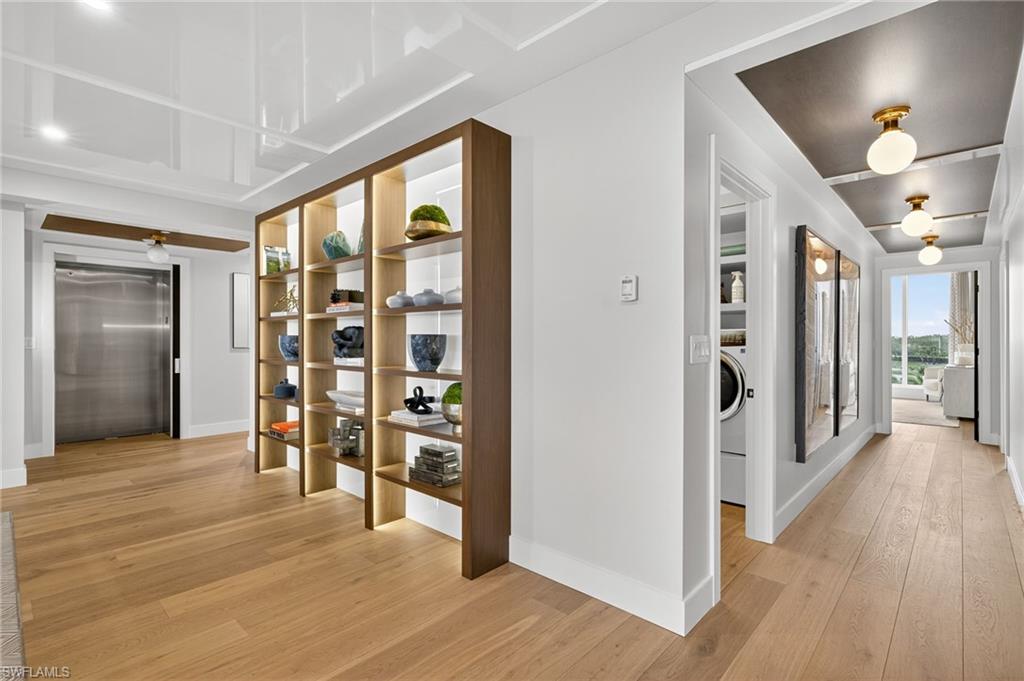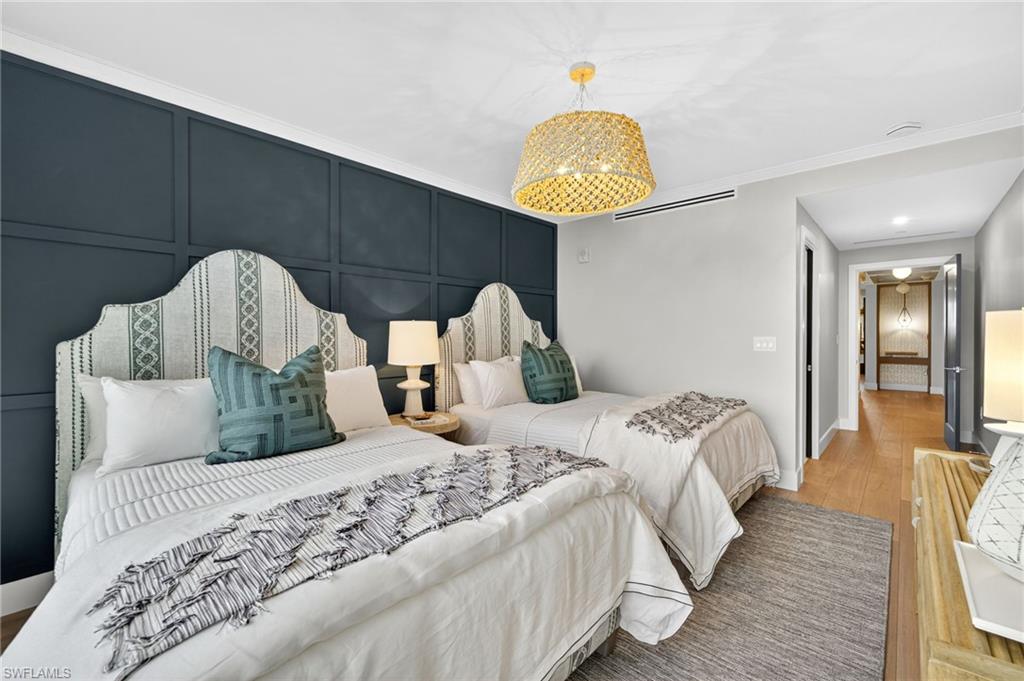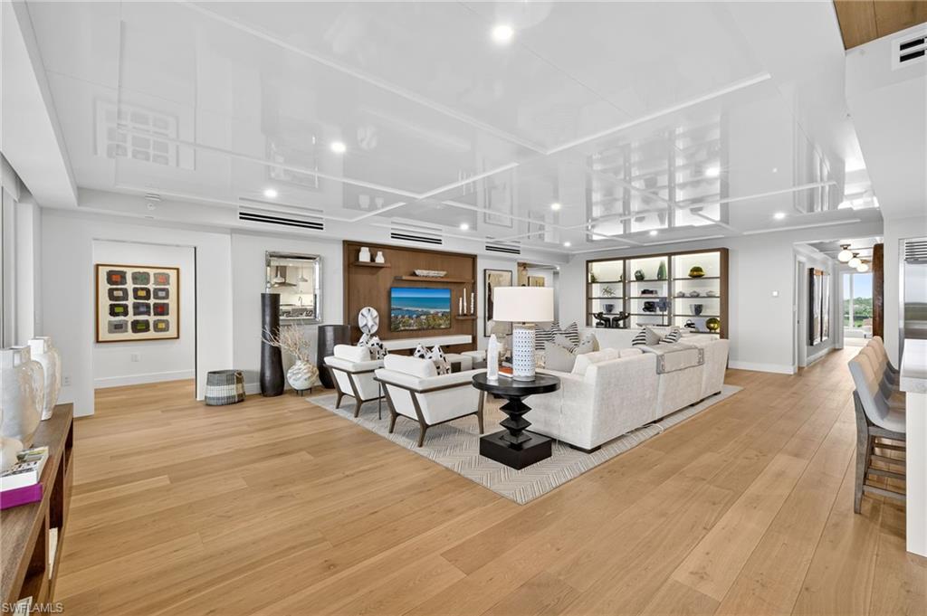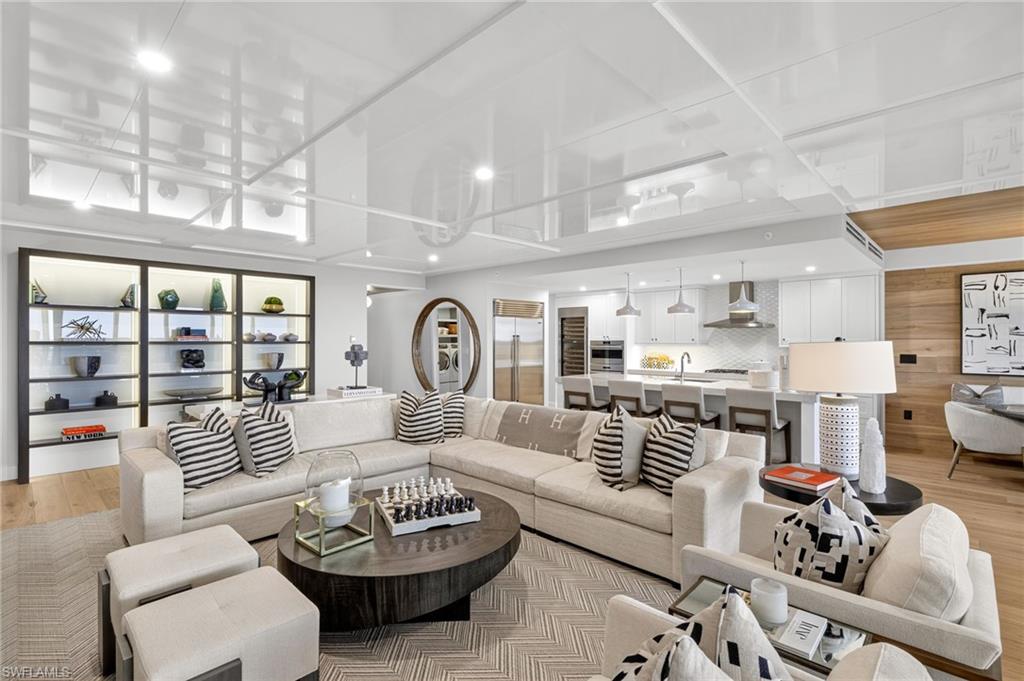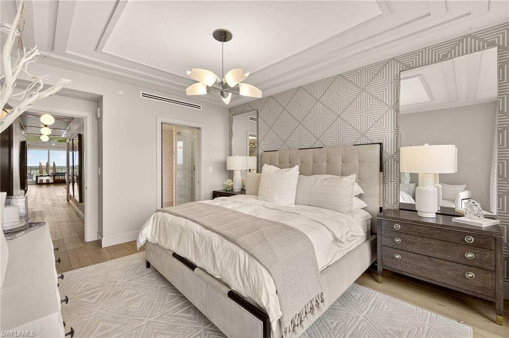 Experience elevated coastal living in this fully furnished, designer-appointed condominium in the prestigious Kalea Bay community of North Naples. This former award-winning model by W Designs showcases the pinnacle of luxurious craftsmanship and attention to detail, with every finish and furnishing carefully curated to perfection. From the moment you enter, you're greeted by rich wood flooring, dramatic custom built-ins, and designer furnishings that exude timeless elegance. The gourmet kitchen is outfitted with top-of-the-line Wolf and Sub-Zero appliances, including a Sub-Zero wine fridge, sleek quartz countertops, and refined cabinetry—an entertainer’s dream. The residence boasts a sprawling wraparound balcony offering panoramic views and seamless indoor-outdoor living, perfect for enjoying Florida’s breathtaking sunsets and coastal breezes. Every inch of this home reflects sophisticated design and functionality, making it truly one of a kind. Kalea Bay’s resort-style amenities redefine luxury, including a rooftop pool and sundeck, multiple sparkling pools, and a full-service clubhouse with formal and casual dining. Stay active with access to the state-of-the-art wellness center, tennis and pickleball courts, and private beach park. Additional amenities include fire pits, a dog park, and guest villas for visiting friends and family. Ideally located just minutes from upscale shopping, world-class dining, and championship golf courses, this exceptional property offers a rare opportunity to own in Naples' most sought-after waterfront community. Offered fully furnished and move-in ready—this is luxury living without compromise.