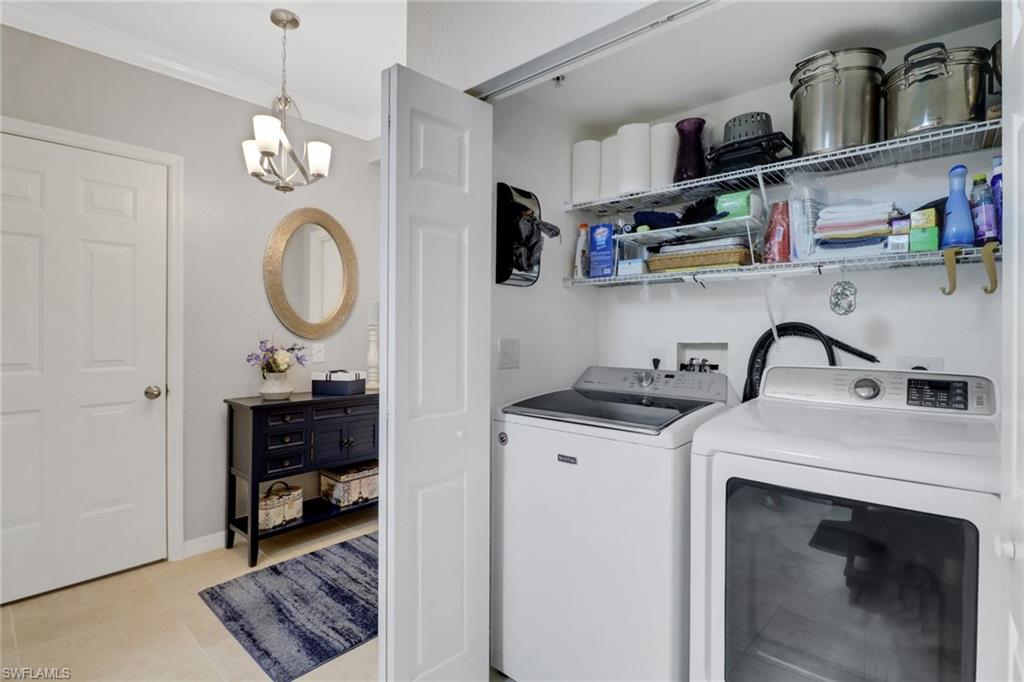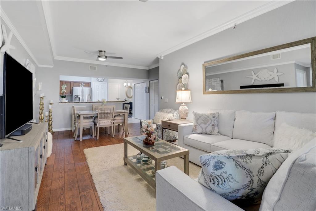 Impeccably maintained and tastefully furnished, this true 2-bedroom, 2-bath first-floor condo with an attached garage offers the perfect blend of comfort and style. Located in the highly sought-after community of Villagio in Estero, this residence is move-in ready with only limited exclusions. Step inside to find rich wood flooring, crown moldings, and hurricane-impact glass windows and doors throughout. The upgraded stainless steel appliance package, along with the high-end washer and dryer, adds modern convenience and flair. Positioned in a prime location, this home is just minutes from RSW International Airport, Coconut Point Mall, Gulf Coast Town Center, and University Plaza—placing Southwest Florida’s best shopping, dining, and entertainment right at your doorstep. Recent community upgrades include brand-new roofs on all buildings, with fresh exterior painting scheduled next. Villagio residents enjoy 24-hour manned gated security and an outstanding amenity package: multiple resort-style pools, newly upgraded tennis and pickleball courts, a state-of-the-art fitness center, private movie theater, on-site café, and a charming ice cream bar. All of this is included in a low monthly condo fee of $580, which also covers water, high-speed internet, and premium cable with DVR and voice remotes. Whether you’re seeking a full-time residence or seasonal retreat, this home delivers exceptional value, location, and lifestyle.