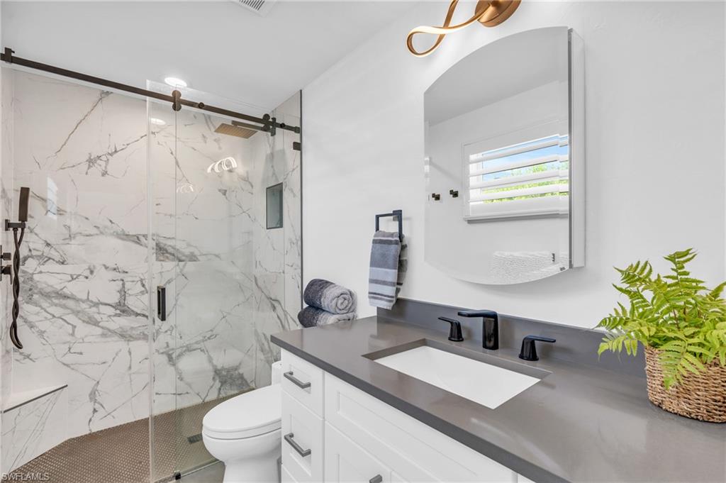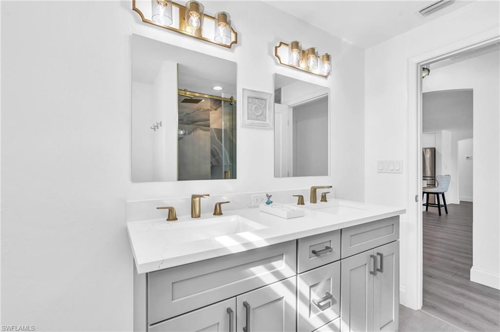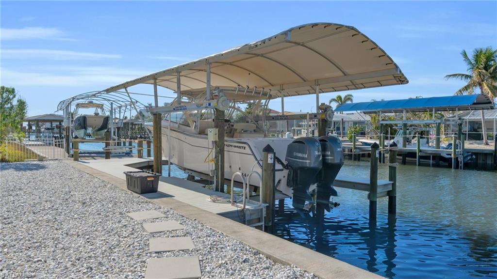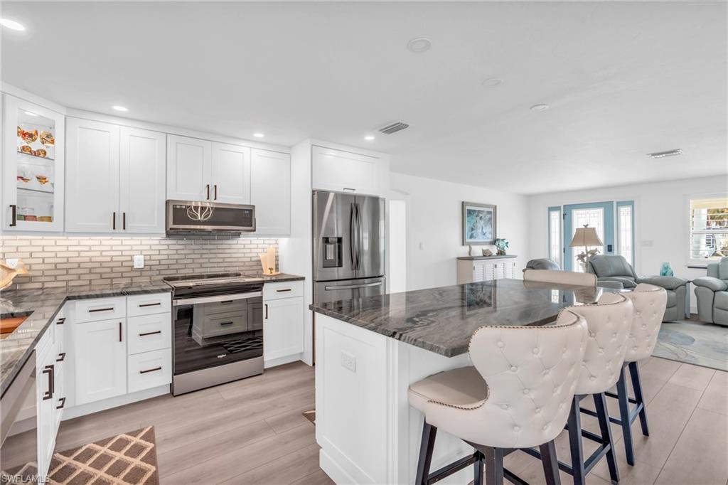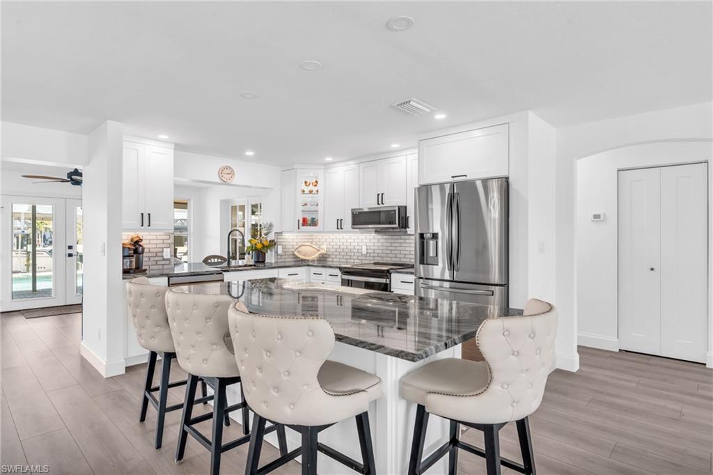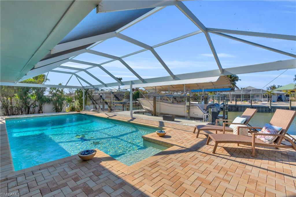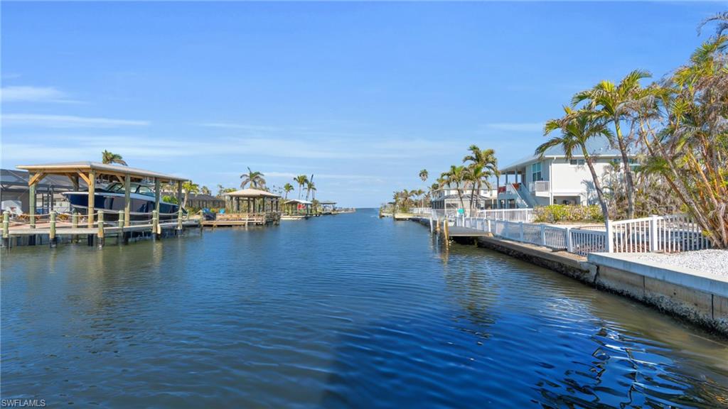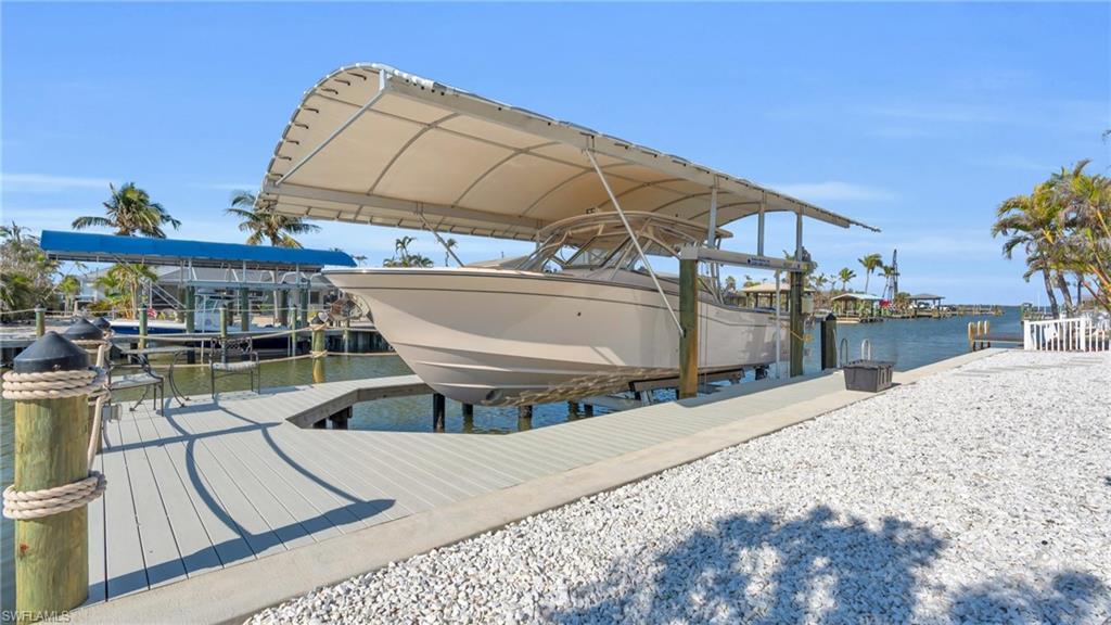 TURNKEY | BOATER'S DREAM | WALK TO THE BEACH! Welcome to your slice of coastal paradise! This stunning FULLY RENOVATED canal-front pool home is the ultimate Fort Myers Beach retreat—move-in ready and loaded with upgrades! Nestled on an oversized lot just steps from the Gulf, you’ll be greeted by majestic Royal Palms and a charming paver circle driveway that sets the tone for this exceptional property. Boaters—this one’s for you! NEW 75-foot seawall, 36-ft, 14,000 lb boat lift with covered canopy, and captain’s walk with electric and water at the dock make this a rare gem. Whether you're hosting friends or heading out to open water, it’s all right at your fingertips! Step inside and fall in love with the modern, coastal charm—brand NEW AC, Rheem water heater, electrical, and plumbing give peace of mind while high-end finishes create a warm and stylish atmosphere. The open-concept layout flows beautifully, with a showstopping kitchen featuring custom cabinetry, induction cooktop, stainless appliances, under-cabinet lighting, glass backsplash, granite countertops, and a farmhouse sink centered on a large island—ideal for entertaining. Luxury waterproof vinyl flooring runs throughout, paired with custom tile in the bathrooms and solid wood doors. The primary suite is a serene retreat with a walk-in closet and a spa-inspired ensuite. Each bathroom offers double showerheads and a sleek, modern design. The guest bath features a dual vanity for added comfort. Step outside to your tropical resort-style oasis—two sets of French doors open to a spacious covered patio with pinewood ceiling and fans, overlooking a custom 34-ft pool with new pump, expansive paver deck, grill area, and outdoor shower. The screened lanai with panoramic picture window makes the most of the tranquil canal views. Beach access is just across the street—whether you're cruising the waterways or catching a sunset over the Gulf, this coastal masterpiece delivers the best of Southwest Florida living.