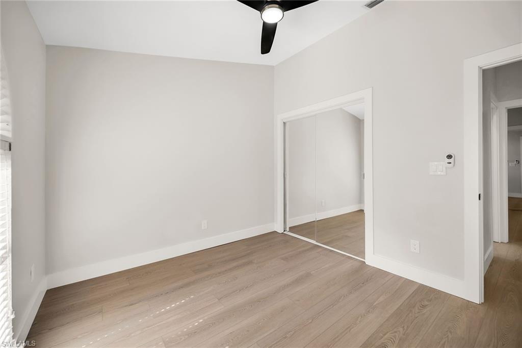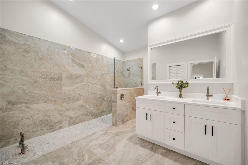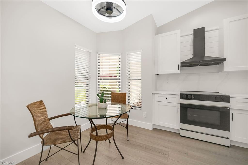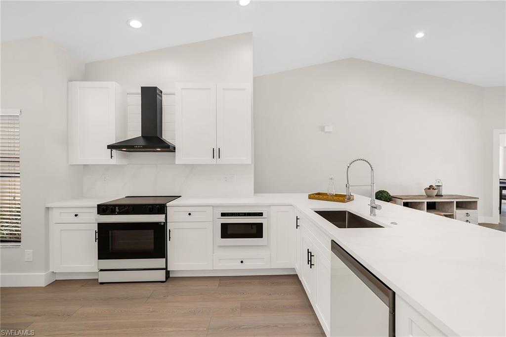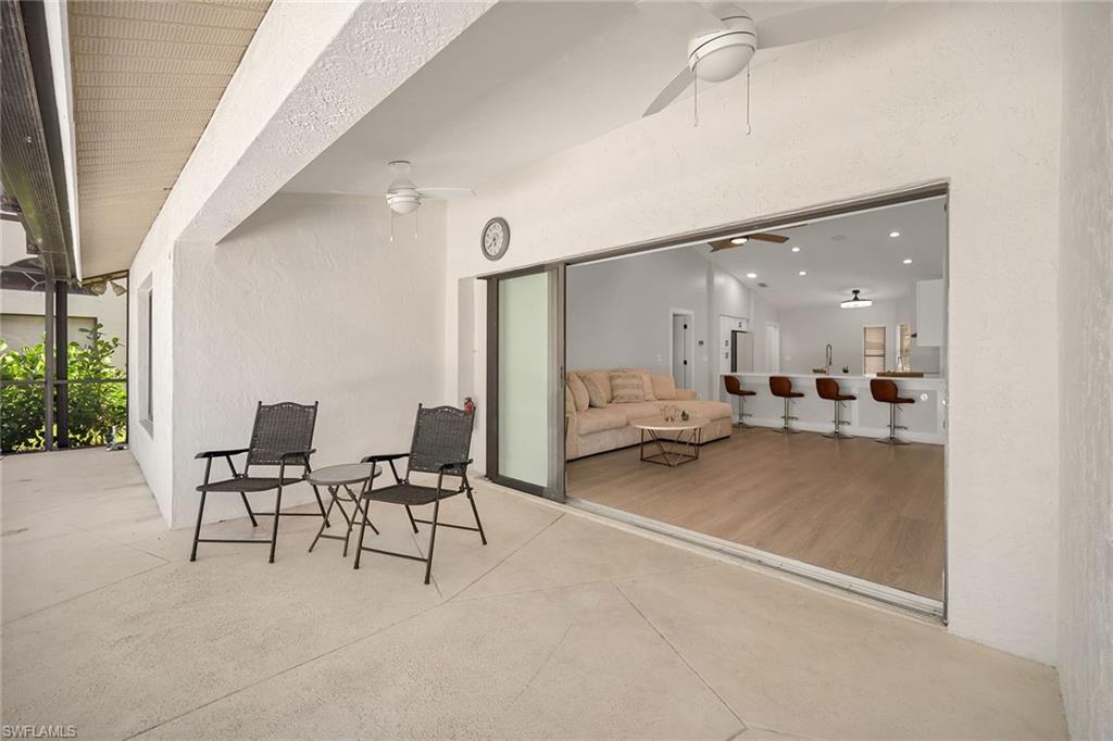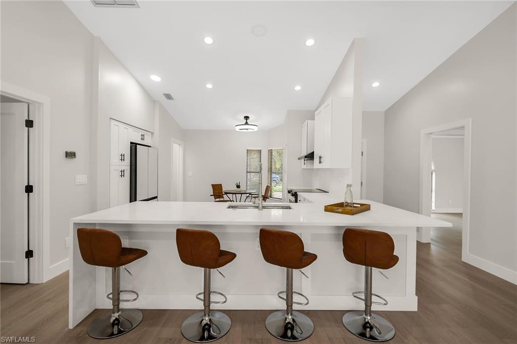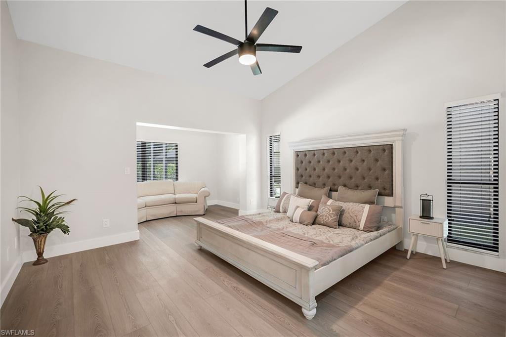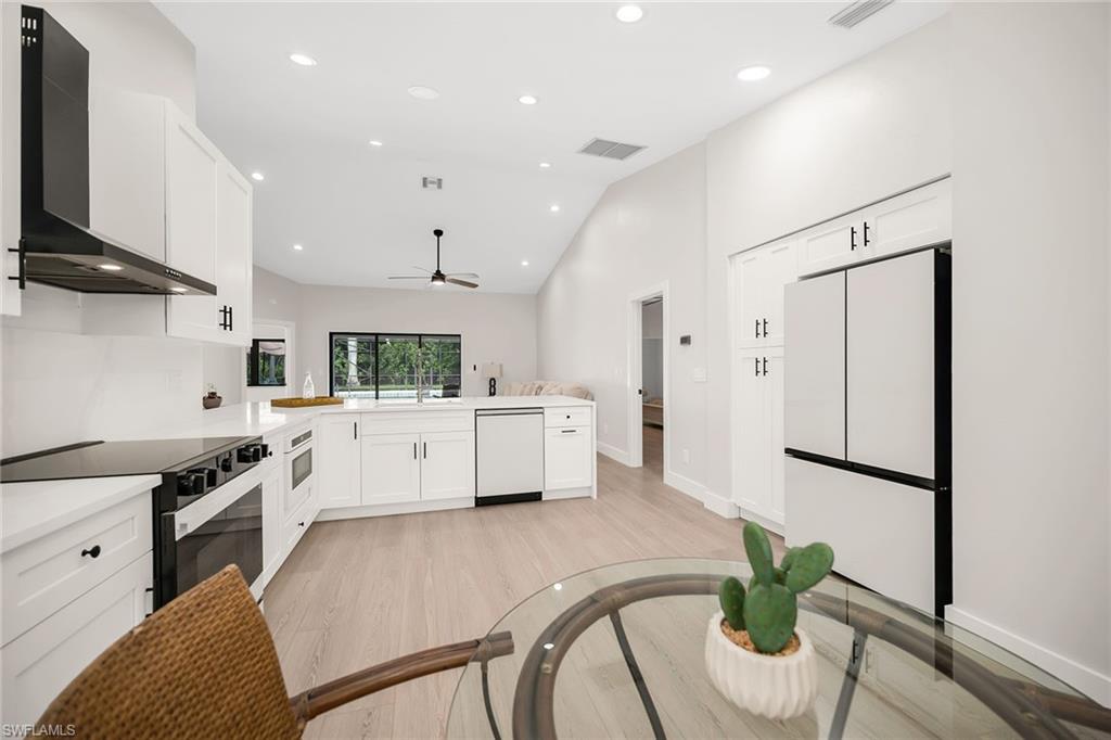Looking for a nicely updated pool home with bundled golf and one of the best locations in Countryside? This beautifully updated four-bedroom, two-bath residence is directly across the street from the newly renovated clubhouse, offering unmatched convenience to golf, tennis, dining and all the club’s resort-style amenities. On a quiet cul-de-sac with private garden views and desirable western exposure, this light-filled home is move-in ready and ideal for year-round or seasonal living. Go inside to cathedral ceilings and luxurious vinyl plank flooring throughout, creating a modern and cohesive flow. The open kitchen features white shaker-style cabinetry, quartz countertops, bar seating, recessed lighting and high-end appliances, including a range with hood, under-counter microwave, refrigerator/freezer and dishwasher. The kitchen features a cozy breakfast nook by three windows, filling the space with natural light and charming garden views. The open layout flows seamlessly into the spacious living room, which opens through glass sliders to the screened lanai, ideal for enjoying private garden views and peaceful western sunsets. The outdoor living area is wonderful for entertaining, with a covered space featuring dual ceiling fans and a sparkling pool for enjoying Florida’s warm weather in comfort and style. The owner’s suite offers a peaceful retreat with a spacious flex area for a reading nook, home office or private lounge. It also features a walk-in closet with built-in shelving and a spa-inspired en-suite bath with a dual quartz vanity and a walk-in shower adorned with large porcelain tile. One guest bedroom overlooks the lanai, while two additional guest rooms share a beautifully appointed bath with a frameless glass walk-in shower. Countryside Golf & Country Club offers full golf membership with this home and an incredible social lifestyle, all just minutes from Naples white sandy beaches, shopping, dining and major roadways. With a freshly completed clubhouse renovation that includes indoor and outdoor dining, a resort-style pool, tennis, pickleball, fitness center and an active social calendar, this is your opportunity to live the ultimate Naples golf lifestyle in a prime location.