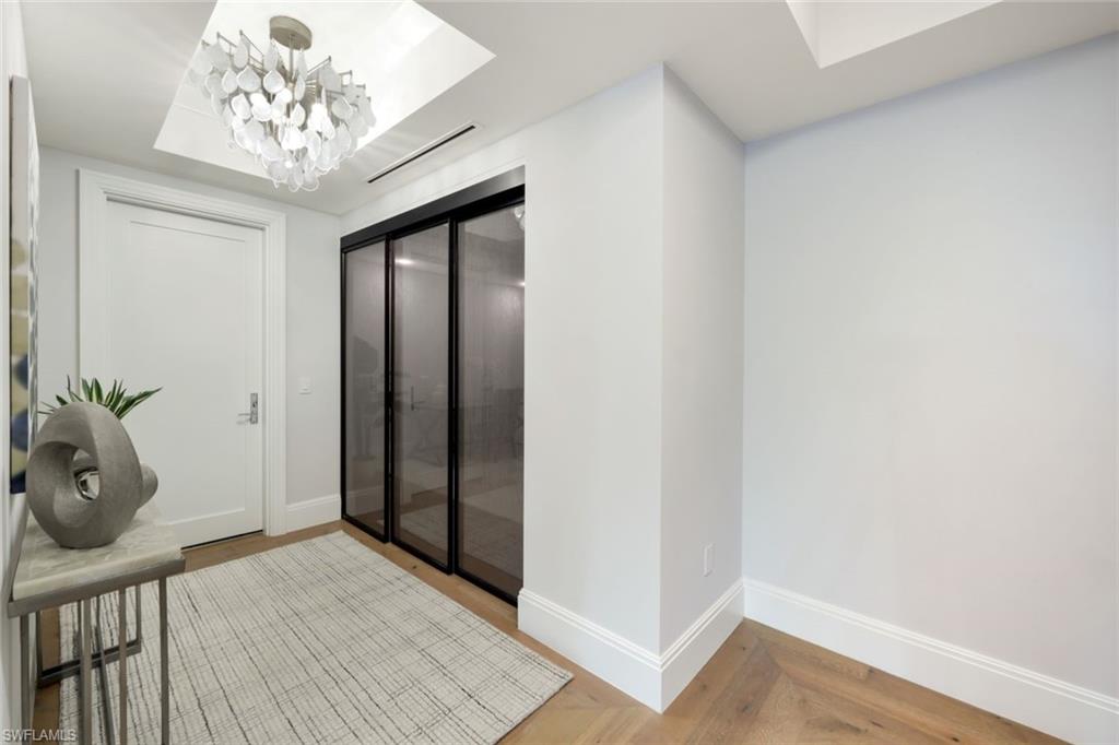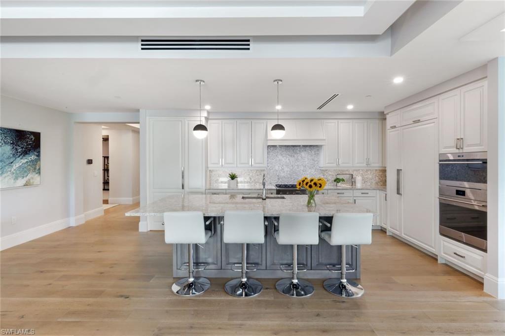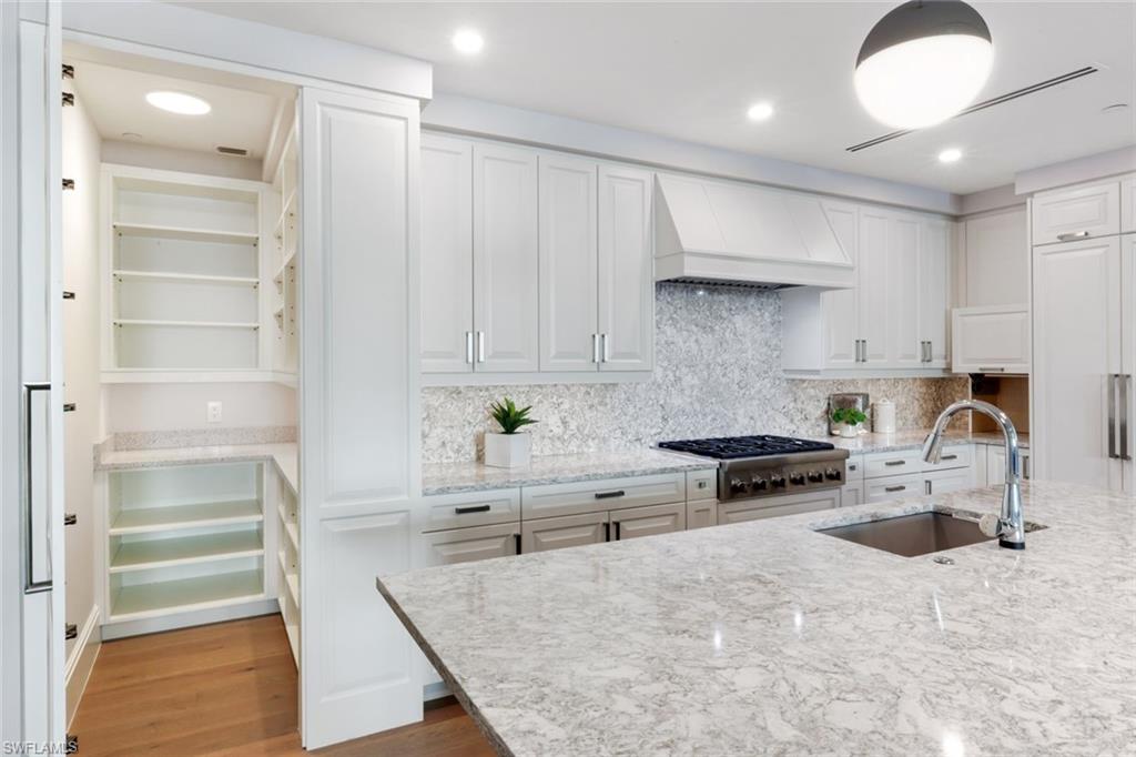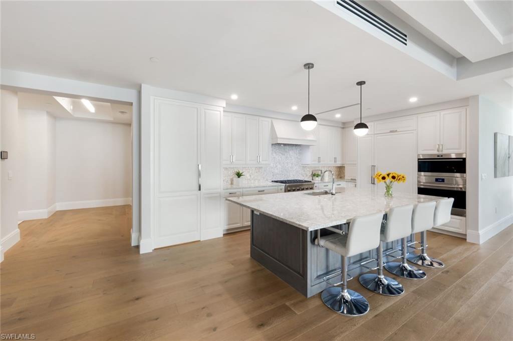 UNBELIEVABLE VALUE – MASSIVE PRICE IMPROVEMENT! Don’t miss this rare opportunity to own a luxury southwest corner home in Quattro at Naples Square—now priced to sell! Completed in 2023, this spacious 3-bedroom + den, 3.5-bath residence offers almost 3,000 sq ft of high-end living just steps from the beach, 5th Avenue South, Bayfront, and Gulfshore Playhouse. This light-filled, corner unit is one of the most desirable in the building, featuring an oversized private lanai with sunny southern and western exposures—perfect for outdoor dining and entertaining. Inside, the open-concept great room flows into a chef’s kitchen with an expansive island that seats six, custom quartz backsplash, premium appliances, gas cooktop with exterior vent, a walk-in pantry, and thoughtful extras like a built-in breadbox and sliding spice racks. The luxurious primary suite includes wood flooring, motorized shades, fully custom closets, and a spa-style bath with dual vanities, soaking tub, and walk-in shower. A formal dining area, custom bar with dual beverage refrigerators, private den with Italian sliding doors, and a well-appointed laundry room with sink and built-ins add to the home’s functionality and style. Designer upgrades include concealed sprinklers, under-cabinet lighting, extra outlets, and a striking powder room. Enjoy resort-style amenities including a pool, spa, fire pit, grilling area, fitness center, and elegant club room. Pet-friendly with two garage-secured parking spaces and climate-controlled storage included. This is downtown Naples luxury at an unbeatable price—schedule your showing today!