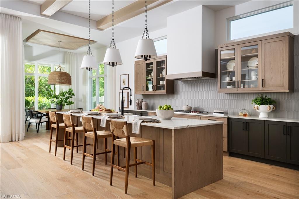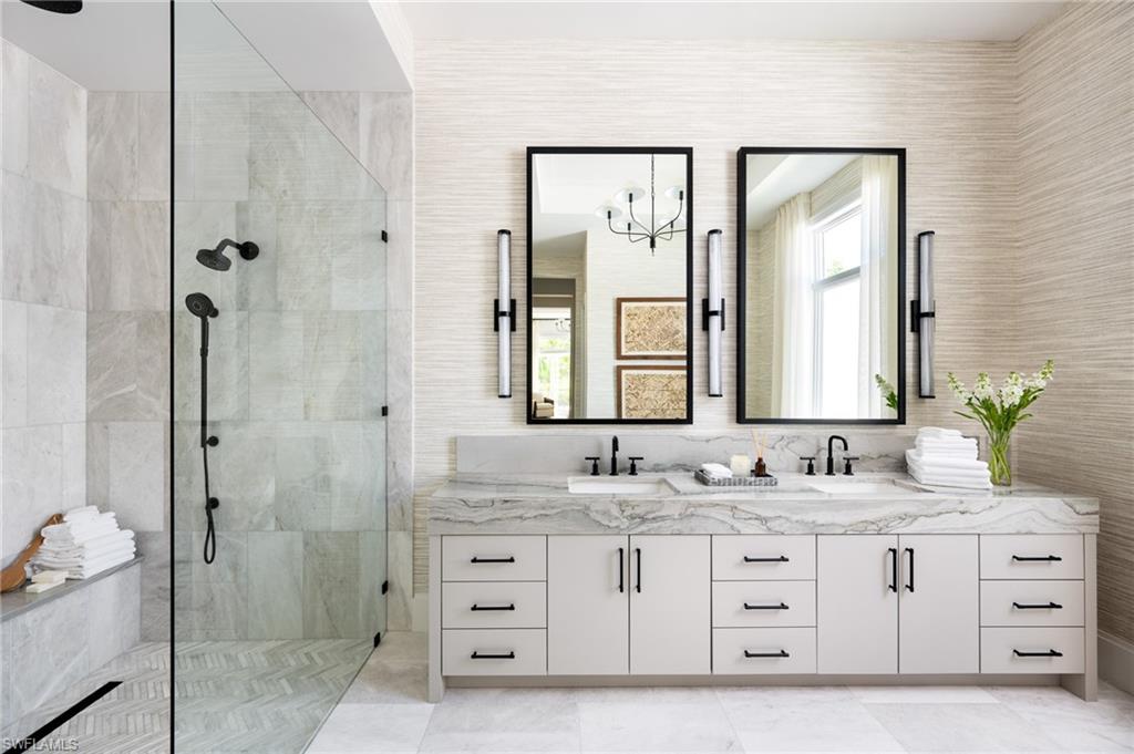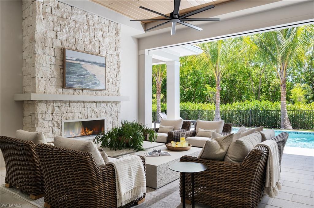 DESIGNER FURNISHED AND MOVE-IN READY HOME AVAILABLE NOW! Seagate Development Group and Theory Design present the professionally designed and furnished Laguna Model Home in Palisades, one of Seagate’s newest, gated communities in the heart of Naples. This custom home is a collaboration between Seagate Development Group and Theory Design with Architecture by JMDG Architecture, and custom landscape & hardscape design by Outside Productions. Enjoy a coastal cottage design with off white, neutral and slate tones, warm European White Oak floors, wood beam ceilings and decorative wall moldings. This custom home features 3 bedrooms, study, 3 full and 2 half baths, and an oversized 3-car garage. The outdoor living area features electric roll down screens, tongue and groove stained ceiling, outdoor kitchen, stone fireplace, lounge area, pool bath, custom pool with spa and lush landscaping. The home has an open floor plan with trimmed tray ceilings throughout. The gourmet kitchen includes custom cabinetry, with glass upper cabinets with lighting, tile backsplash, custom hood, under cabinet lighting, island with natural stone countertop, paneled Sub Zero/Wolf appliance package, windows for natural lighting, and walk-in pantry with cabinetry, refrigerator, and ice maker. The great room includes stained wood beam ceilings, decorative wall molding and a bar with an undercounter beverage refrigerator. The master suite features a sitting area with sliding glass doors leading to the covered lanai. The master bathroom features honed marble floors and comes equipped with Kohler plumbing fixtures including 2 private water closets, soaking tub, spacious shower with 3 showerheads and a linen closet. Additional luxury features include 9.45” European White Oak wood floor throughout, custom built-in closets, 1 ¾” solid interior doors, Emtek door hardware, linear HVAC diffusers in common areas, level 5 drywall, double pane Andersen impact windows & doors, Control4 home automation system, sound system, spray foam insulation, custom iron front door, natural gas, lush landscaping, and interior designer selected custom light fixtures and furnishings. Palisades is an enclave of 25 custom homes situated in a premier Naples location with abundant amenities. Palisades is only minutes away from Mercato, Waterside Shops, 2 Ritz-Carltons, and other exceptional shopping, dining, and beachfront destinations. Seagate’s portfolio of companies specialize in custom homes, renovations, interior design, estate management, and land development. Together, bringing exceptional concierge levels of service to everything we do. SALES CENTER OPEN DAILY.