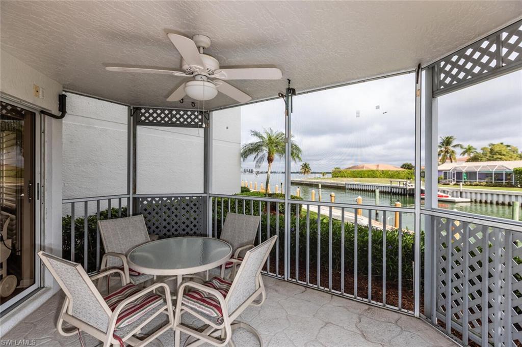 Welcome to waterfront condo living on Marco Island! This charming 2-bedroom, 2-bathroom end unit with a versatile den perfectly balances comfort and function. Upon entering, you'll be welcomed by an abundance of natural light, courtesy of the additional windows that brighten up the entire space, creating a warm and inviting ambiance. This elevated, first floor, end unit also ensures extra privacy and a peaceful atmosphere. One of the unique highlights of this home is the convenient first-floor walkout from the lanai, providing seamless access to tranquil waterfront views. Picture yourself enjoying morning coffee or a glass of wine in the evening as you watch boats glide by and take in the sea life sights right outside your door. With a little imagination and vision, you can transform this fixer-upper into the coastal retreat of your dreams! Designed with comfort and practicality in mind, the condo already features an in-unit laundry, a spacious master suite with a walk-in closet, and a den that offers extra space for a home office or guest area—just waiting for your personal touch. Additional benefits include assigned covered parking, an extra storage unit, and access to a wealth of amenities including tennis, pickleball, shuffleboard, a community pool, hot tub, clubhouse, BBQ grills, a common dock, kayak and bike storage, and a floating dock. Plus, you'll have direct access to the Gulf of Mexico within minutes! Located next door to The Dolphin Tiki for waterfront dining and just moments away from shops and restaurants, this condo offers endless possibilities for creating your ideal island oasis. Schedule your private showing today and start envisioning your dream Marco Island escape!
