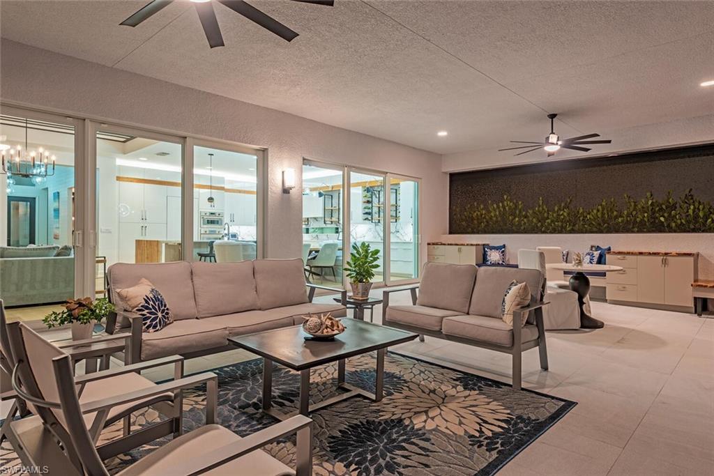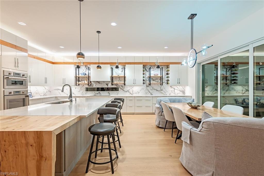Welcome to one of the most thoughtfully crafted homes in Valencia Trails. Privately nestled along a tranquil preserve, surrounded by lush tropical landscaping, this spectacular Captiva model is a masterpiece, blending modern elegance with peaceful seclusion. Step through the glass front doors into a soaring foyer featuring an intricate marble inlay set seamlessly into the surrounding French white oak hardwood flooring that flows throughout the main living areas. At the heart of the home, a chef’s dream kitchen awaits; designed to impress & equipped to perform. Sleek Eurocraft Reflekt acrylic cabinetry, expanded by 9 feet into the dining space, has soft-close drawers, multiple custom cabinet inserts & pull-outs, and ambient cabinet lighting. A striking porcelain backsplash complements the quartz countertops, while an oversized island offers generous prep space, additional storage & effortless flow for entertaining. The Thermador Professional Series appliance suite includes a side-open convection oven, freedom induction cooktop, speed oven-microwave, Sapphire dishwasher & a column refrigerator. Sub-Zero beverage & freezer drawers and a custom vented hood also deliver professional-grade performance. The great room showcases a striking custom feature wall & is framed by views of the lush preserve through impact-rated sliding glass doors. Outside, the thoughtfully graded lanai has a step-free surface for enhanced safety & the White Ice marble pavers offer an elevated, coastal aesthetic. A Kings Starboard cabinet system adds storage & functionality. The saltwater pool is a standout—35 feet in length with an integrated spa, a sundeck & elegant water bowls for a serene, resort-like experience. Heated by gas, the pool & spa are ready for year-round enjoyment. The extended covered lanai is framed by an invisible screen enclosure and the tranquil preserve view makes this outdoor oasis very private & picturesque. The primary suite offers a spa-inspired bath with an oversized rain shower, soaking tub, dual vanities with Eurocraft cabinetry & 3 generously sized custom walk-in closets. There are 3 additional en-suite guest bedrooms, one featuring built-in bunk beds. An expansive den with a custom built-in entertainment wall provides flexible space for a home office, media room, or additional living area. Fine features include solid core doors, hurricane impact windows & doors, extensive millwork & shiplap, curated lighting accents, epoxy garage flooring, tankless water heater, fenced dog-run & a custom finished laundry space with GE pedestaled washer/dryer. Valencia Trails is more than a community—it's a lifestyle. This exclusive 55+ neighborhood features world-class amenities, including a 43,000 SF clubhouse with gourmet restaurant, poolside bar, resort-style pools, fitness center, pickleball, tennis, bocce, yoga, art studio, cooking classes, spa, dog park & a vibrant social calendar. This is your invitation to live where everyday feels like a resort getaway.