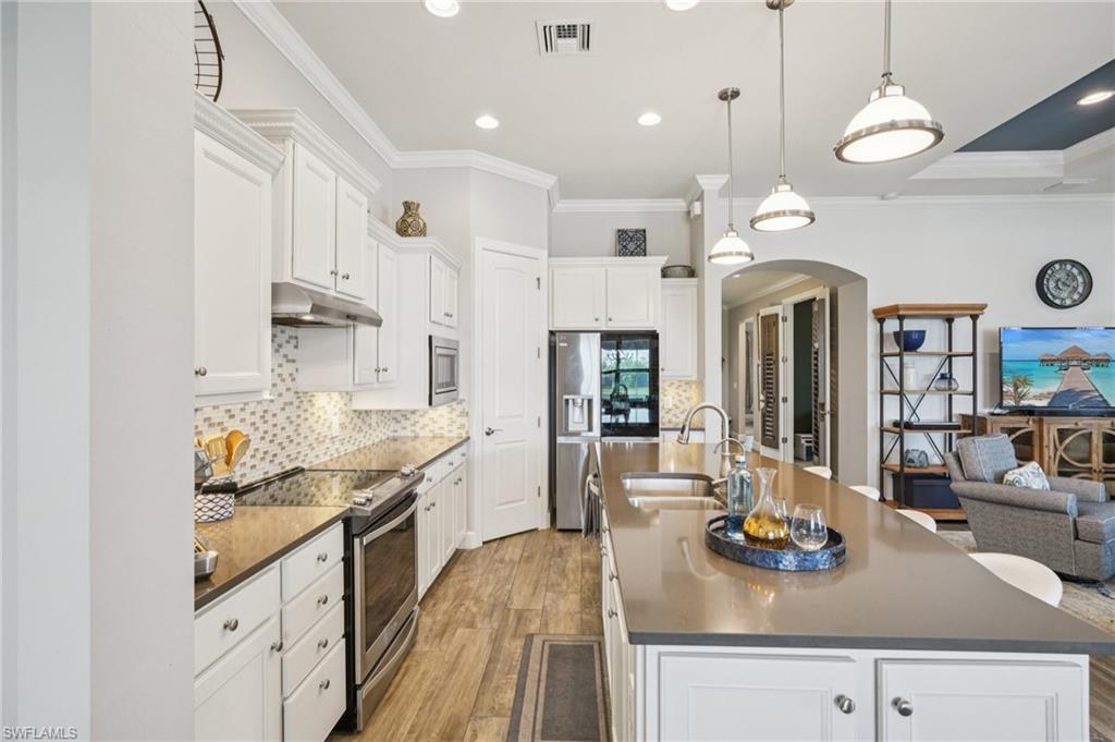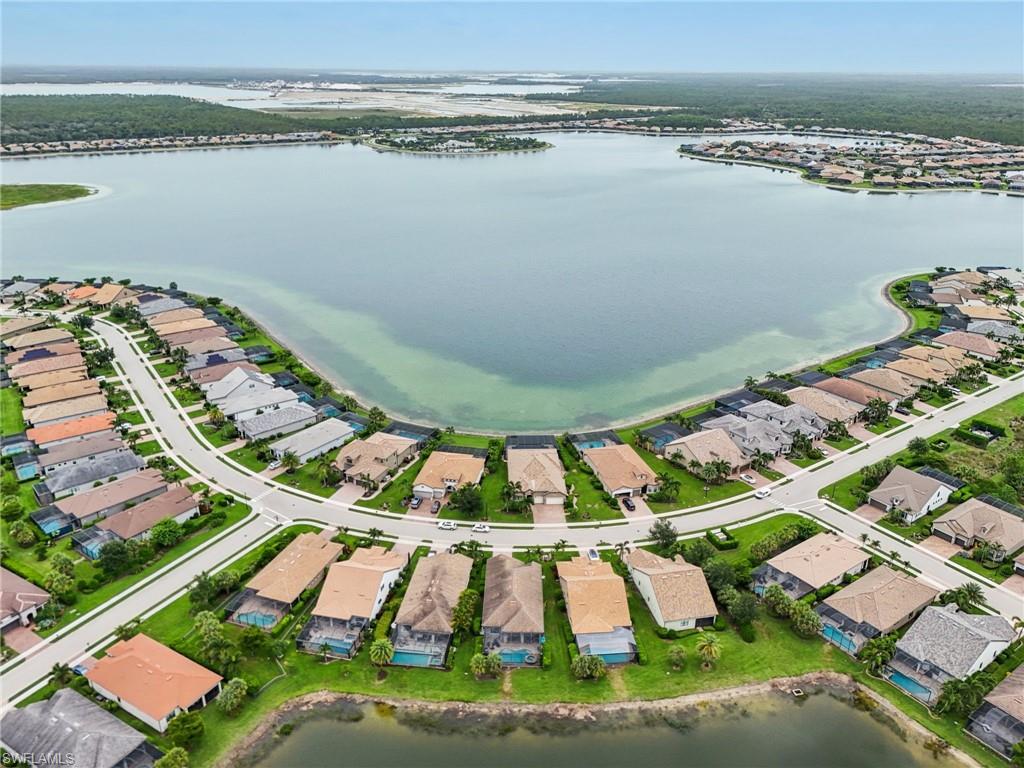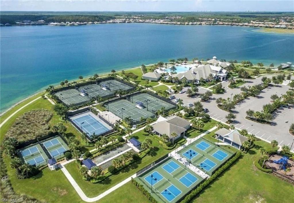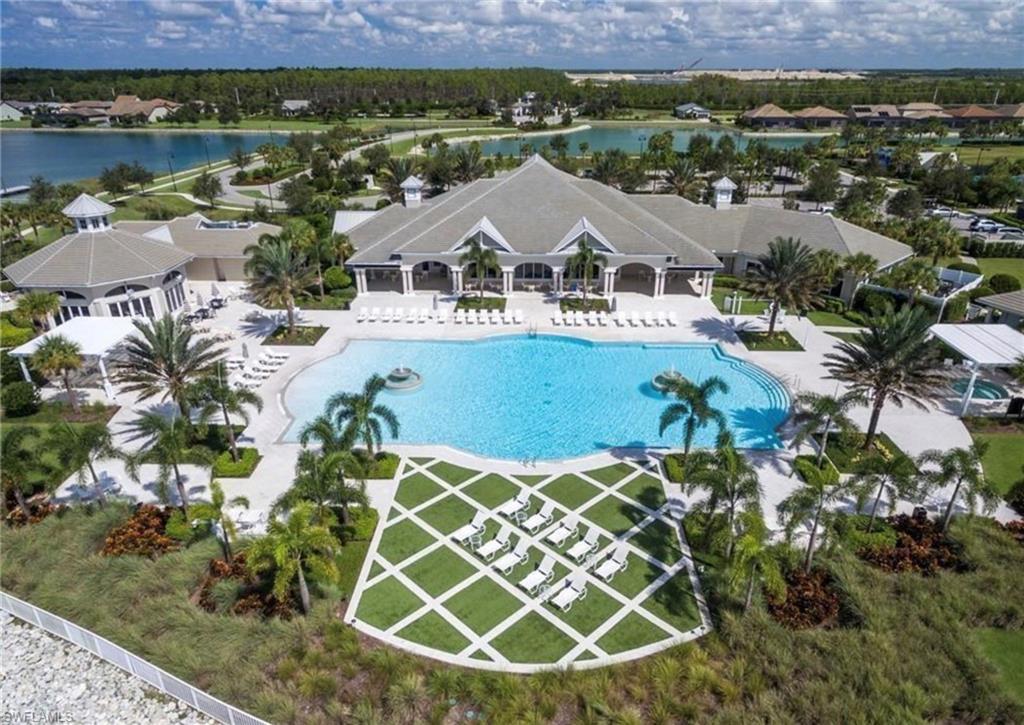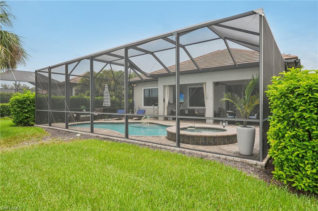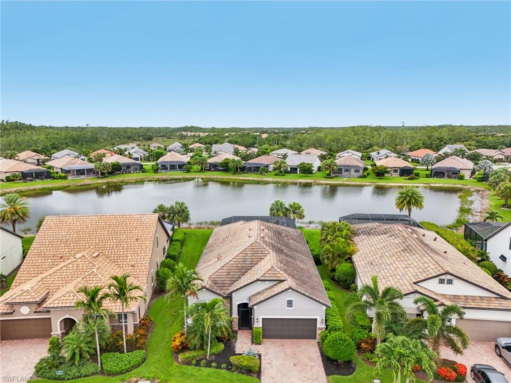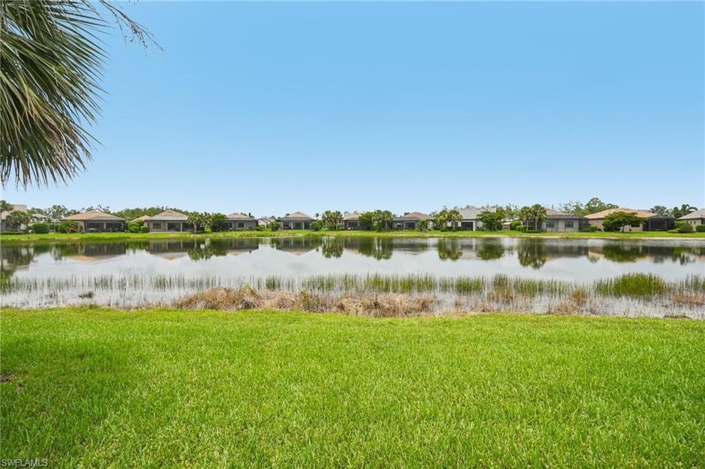 POOL+SPA HOME ON THE WATER in the resort-style community of Corkscrew Shores! This outdoor oasis home offers 3 bedrooms and a den, 2 full bathrooms. Sliding doors completely open for a total indoor/outdoor flow between main living area and outdoor oasis with bar, multiple entertainment/seating areas, and a covered+screened in patio with SALTWATER POOL+SPA. Outdoor oasis overlooks LAKE and has gorgeous sunsets! Inside, the open kitchen features quartz countertops, real-wood soft-close cabinetry, and top-of-the-line appliances. The main living areas have tile floors for easy maintenance. Upgrades include: whole home reverse osmosis water filtration system, air-conditioned garage, and custom built-ins throughout. NO FLOOD ZONE, NO CDD. Corkscrew Shores is a gated resort-style community, offering a luxurious pool/spa, Har-Tru tennis courts, pickleball courts, 24-hour fitness center, non-gas boating, kayak/canoe launch, playground, and indoor/outdoor restaurant and bar. The community is ideally situated near RSW international airport, FGCU, expansive shopping, and impressive dining.