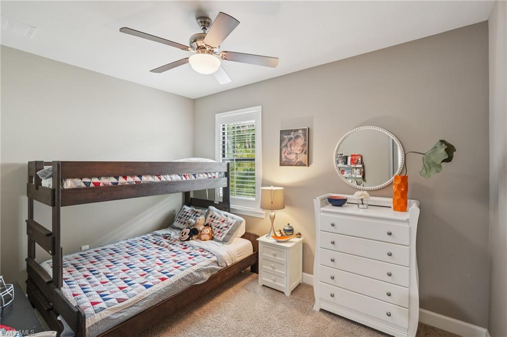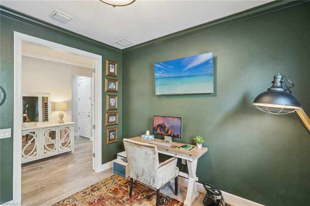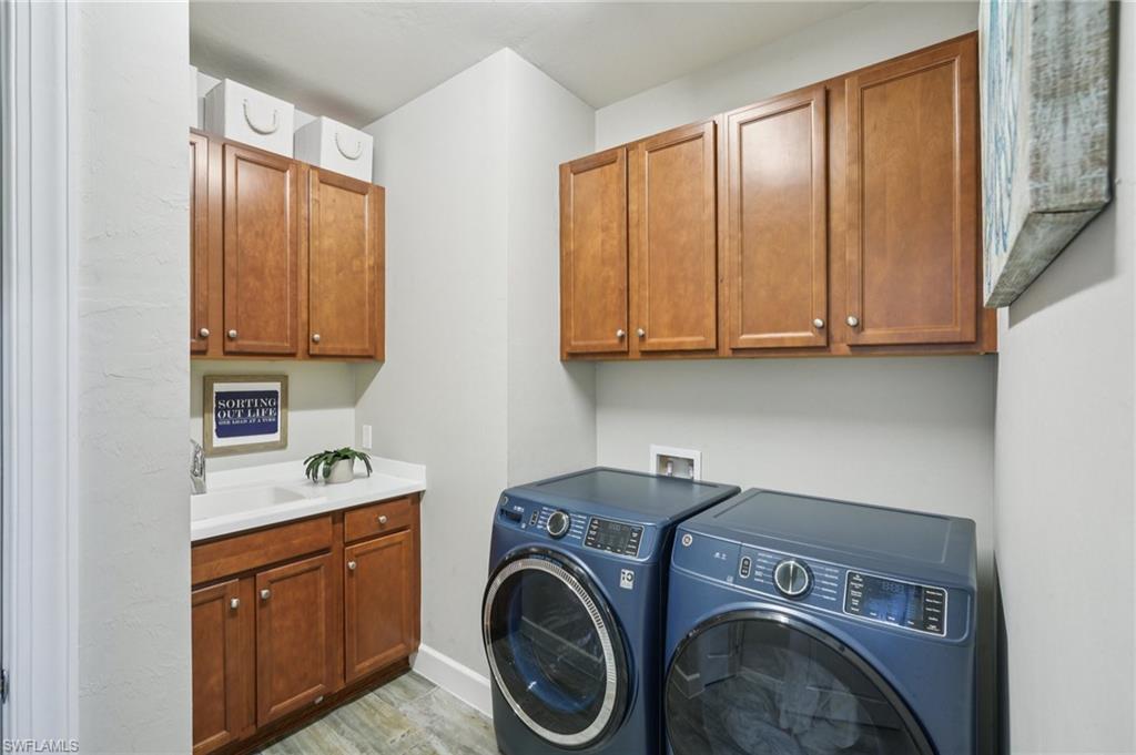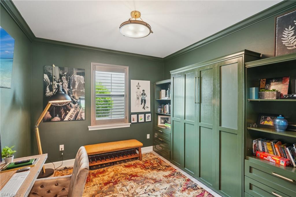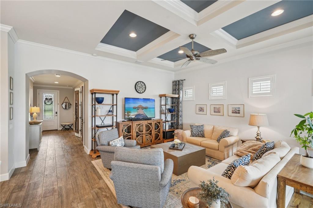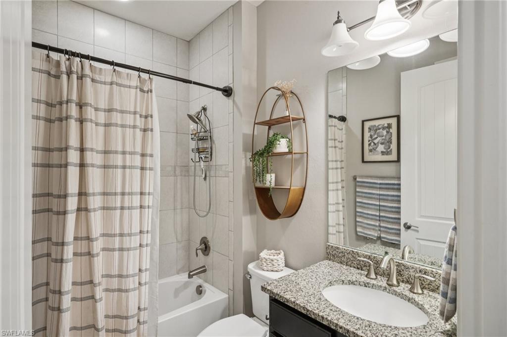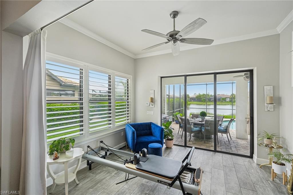 POOL+SPA HOME ON THE WATER in the resort-style community of Corkscrew Shores! This outdoor oasis home offers 3 bedrooms and a den, 2 full bathrooms. Sliding doors completely open for a total indoor/outdoor flow between main living area and outdoor oasis with bar, multiple entertainment/seating areas, and a covered+screened in patio with SALTWATER POOL+SPA. Outdoor oasis overlooks LAKE and has gorgeous sunsets! Inside, the open kitchen features quartz countertops, real-wood soft-close cabinetry, and top-of-the-line appliances. The main living areas have tile floors for easy maintenance. Upgrades include: whole home reverse osmosis water filtration system, air-conditioned garage, and custom built-ins throughout. NO FLOOD ZONE, NO CDD. Corkscrew Shores is a gated resort-style community, offering a luxurious pool/spa, Har-Tru tennis courts, pickleball courts, 24-hour fitness center, non-gas boating, kayak/canoe launch, playground, and indoor/outdoor restaurant and bar. The community is ideally situated near RSW international airport, FGCU, expansive shopping, and impressive dining.