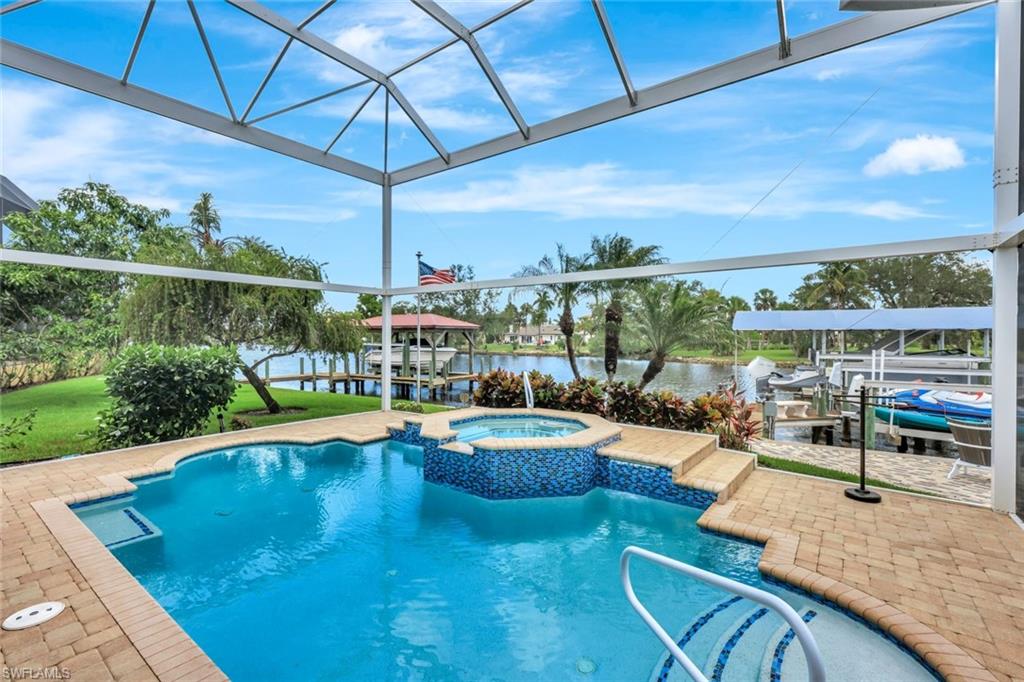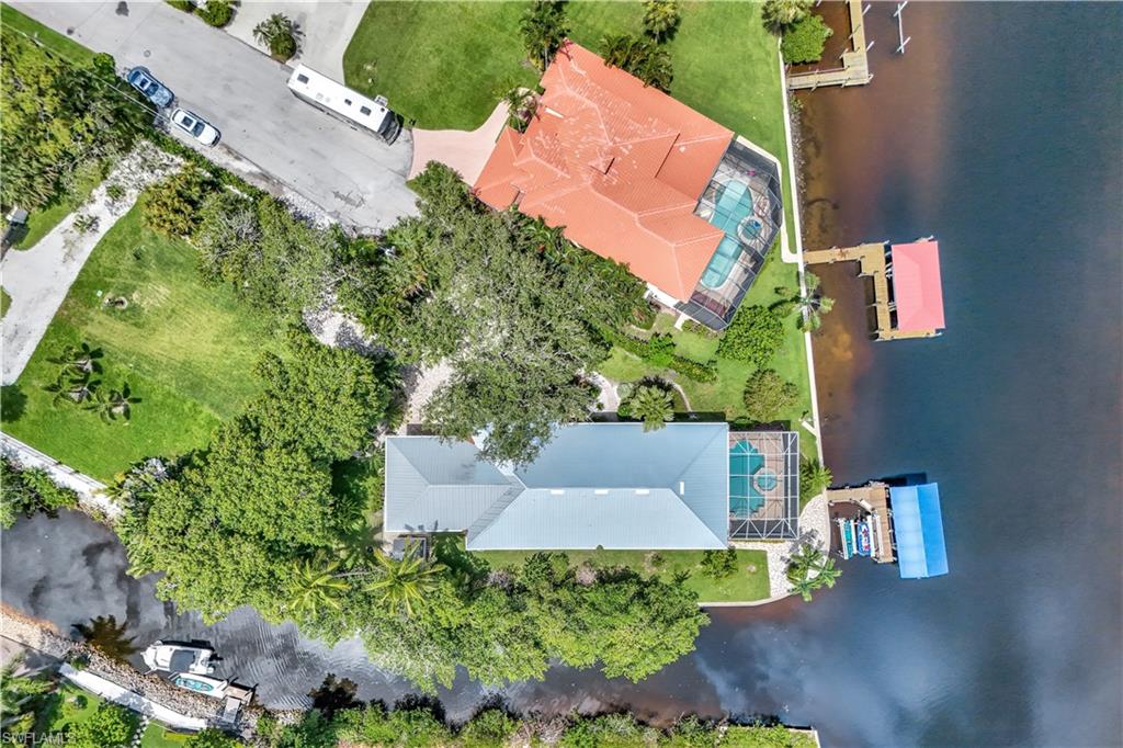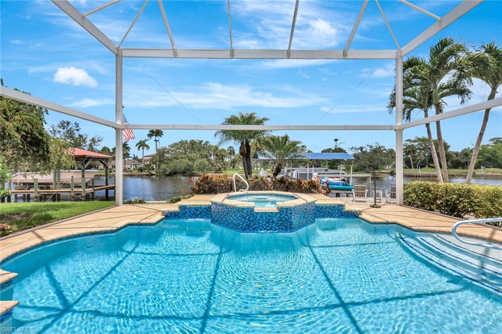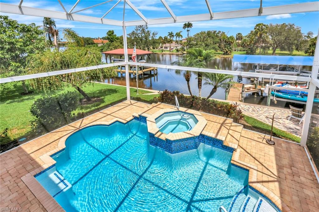 This COMPLETELY RENOVATED estate home with NO HOA FEES located BOTH RIVER AND canal side offers the ultimate in waterfront living, with over 4,400 square feet of air conditioned living space and more than 8,500 total square feet of additional living space. This home is located on a gated and beautifully landscaped OVERSIZED lot! The lot to the south of the home was recently purchased by the current owners ensuring complete privacy. You will enjoy the benefit of privacy within your own gated "community". Perfectly positioned with river frontage and side canal access, you will enjoy two docks—one on the river with dual electrical lifts and a canopy, and one on the canal with lights and power. Inside, the entire home has been fully renovated! The great room features new hardwood floors, ceiling beams, a chef’s kitchen complete with new Jenn-Air and Bosch appliances, quartz countertops, custom lighting, and an enlarged pantry. The view from the great room is unlike any other, offering so much sunlight! The great room opens onto a ton of outdoor space overlooking the pool, lanai, river and canal. The primary suite also offers river views, with large walk-in closets featuring custom built-ins, and a spa-like bath with new tile flooring, vanities, a soaking tub, a custom shower and a Toto commode. There are two additional bedrooms on the upper level AND a gorgeous powder room. There is even an elevator! Designed for indoor-outdoor enjoyment, you will appreciate the recently renovated outdoor kitchen on the lanai level featuring granite countertops, a refrigerator, dishwasher, and waterproof PVC cabinetry. The lower level also features a HUGE lanai with a resurfaced pool and hot tub, and a gorgeous outdoor living area. Additional highlights include new HVAC systems, a mini-split in the downstairs suite, new carpet in bedrooms, and fully updated bathrooms and powder room. The home is tech-ready with a Sonos sound system, LED recessed lighting, remote-controlled shades, an alarm system, and an irrigation system on a separate meter. There is also a large utility room, a new remote controlled entry gate, an expanded driveway with new pavers, landscape lighting, new gutters and guards, a new metal roof, screened porches on three sides, Bahama shutters, a dry bar on the second level, and a newly added 8x10 shed. There are too many updates to list here - this home must be seen to be fully appreciated. There are even fruit trees lining the property! AND a day at the beach is just minutes away—this home offers unmatched Southwest Florida living on the serene Imperial River. Walk or bike to the burgeoning downtown Bonita Springs, quickly becoming a destination unto its own, with many bars, restaurants and live music venues. Very close to the international airport, shopping, dining and so much more. Boat to your favorite restaurant within minutes. This is it - the Florida oasis you have been waiting for!