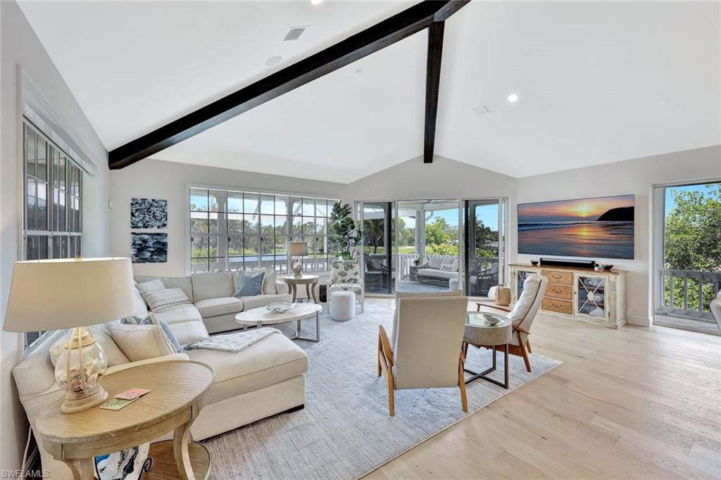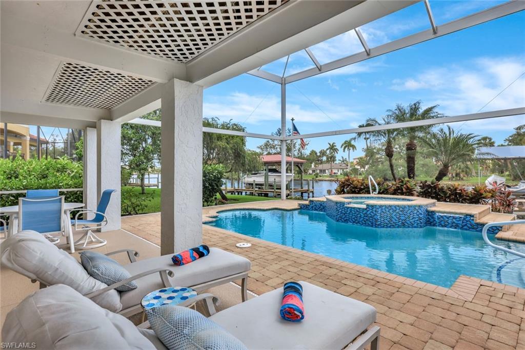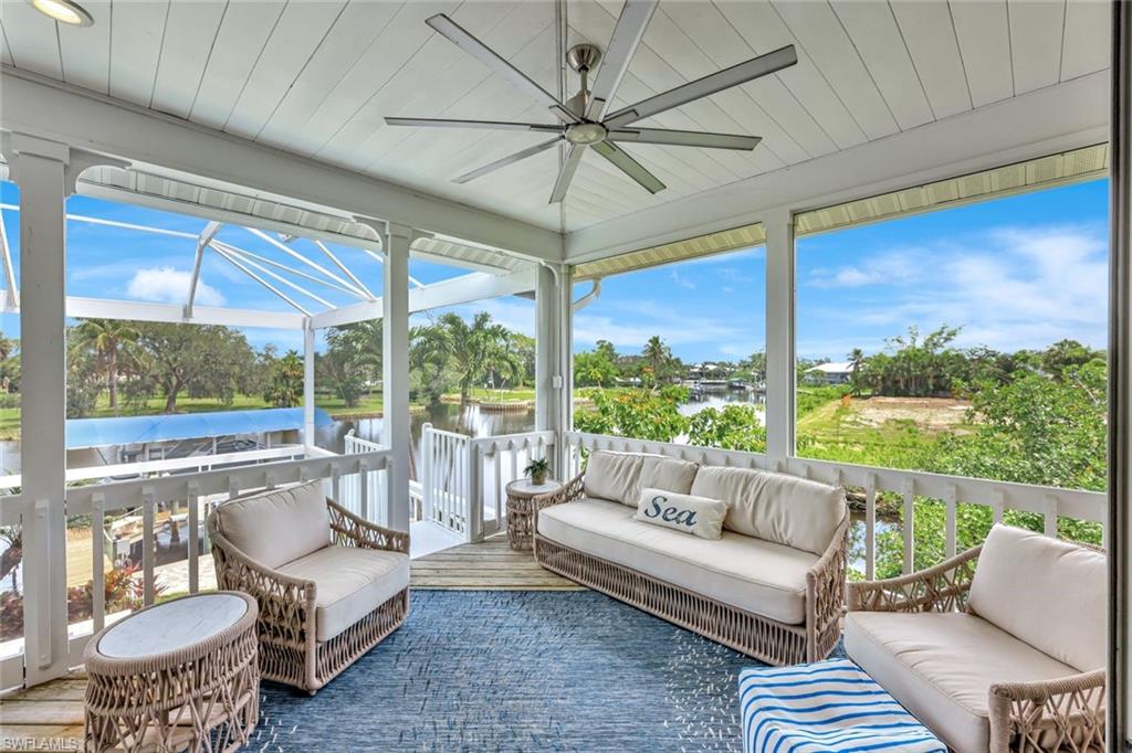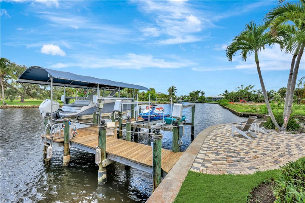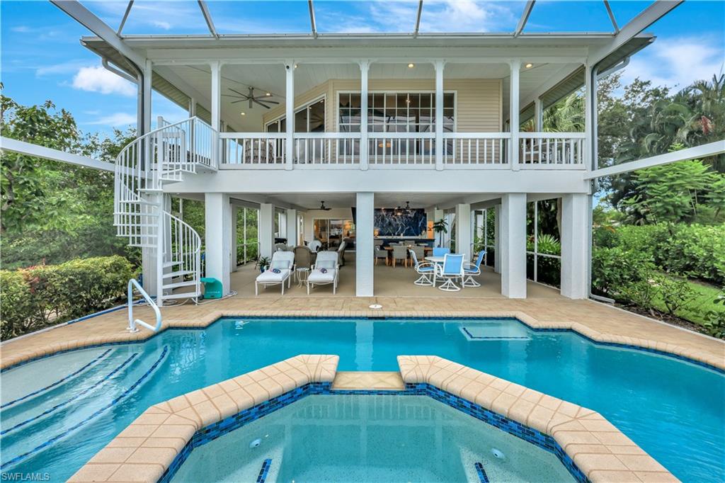 This COMPLETELY RENOVATED estate home with NO HOA FEES located BOTH RIVER AND canal side offers the ultimate in waterfront living, with over 4,400 square feet of air conditioned living space and more than 8,500 total square feet of additional living space. This home is located on a gated and beautifully landscaped OVERSIZED lot! The lot to the south of the home was recently purchased by the current owners ensuring complete privacy. You will enjoy the benefit of privacy within your own gated "community". Perfectly positioned with river frontage and side canal access, you will enjoy two docks—one on the river with dual electrical lifts and a canopy, and one on the canal with lights and power. Inside, the entire home has been fully renovated! The great room features new hardwood floors, ceiling beams, a chef’s kitchen complete with new Jenn-Air and Bosch appliances, quartz countertops, custom lighting, and an enlarged pantry. The view from the great room is unlike any other, offering so much sunlight! The great room opens onto a ton of outdoor space overlooking the pool, lanai, river and canal. The primary suite also offers river views, with large walk-in closets featuring custom built-ins, and a spa-like bath with new tile flooring, vanities, a soaking tub, a custom shower and a Toto commode. There are two additional bedrooms on the upper level AND a gorgeous powder room. There is even an elevator! Designed for indoor-outdoor enjoyment, you will appreciate the recently renovated outdoor kitchen on the lanai level featuring granite countertops, a refrigerator, dishwasher, and waterproof PVC cabinetry. The lower level also features a HUGE lanai with a resurfaced pool and hot tub, and a gorgeous outdoor living area. Additional highlights include new HVAC systems, a mini-split in the downstairs suite, new carpet in bedrooms, and fully updated bathrooms and powder room. The home is tech-ready with a Sonos sound system, LED recessed lighting, remote-controlled shades, an alarm system, and an irrigation system on a separate meter. There is also a large utility room, a new remote controlled entry gate, an expanded driveway with new pavers, landscape lighting, new gutters and guards, a new metal roof, screened porches on three sides, Bahama shutters, a dry bar on the second level, and a newly added 8x10 shed. There are too many updates to list here - this home must be seen to be fully appreciated. There are even fruit trees lining the property! AND a day at the beach is just minutes away—this home offers unmatched Southwest Florida living on the serene Imperial River. Walk or bike to the burgeoning downtown Bonita Springs, quickly becoming a destination unto its own, with many bars, restaurants and live music venues. Very close to the international airport, shopping, dining and so much more. Boat to your favorite restaurant within minutes. This is it - the Florida oasis you have been waiting for!